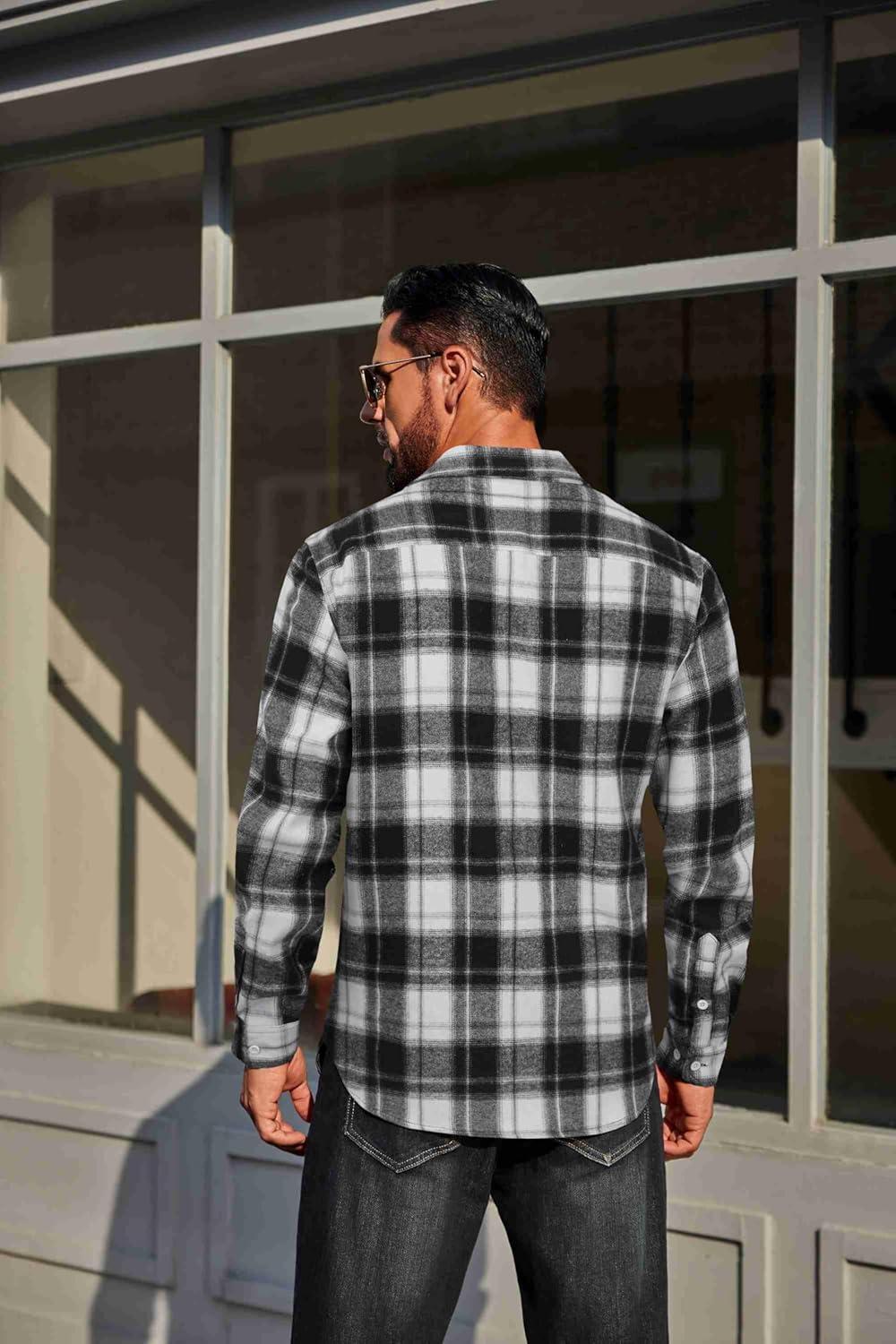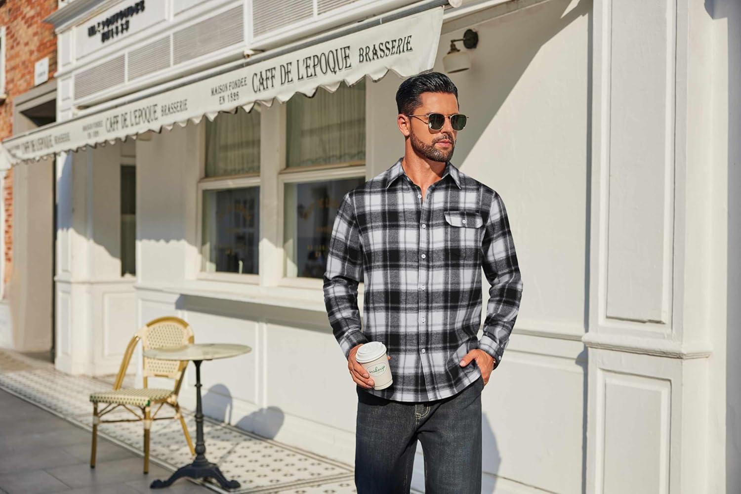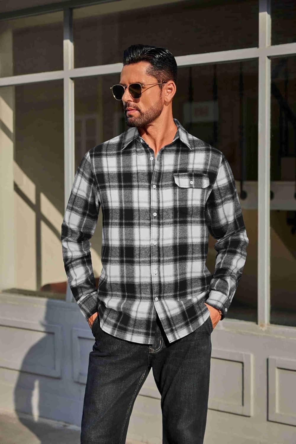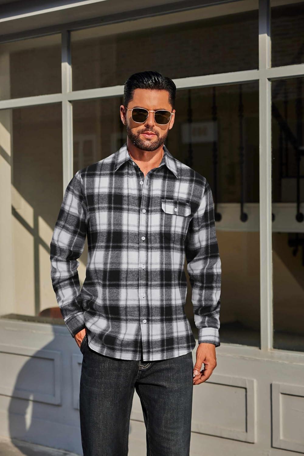 COOFANDY Mens Flannel Plaid Shirts Long Sleeve Casual Button Down Cotton Shirt with Pocket(Black White Plaid)