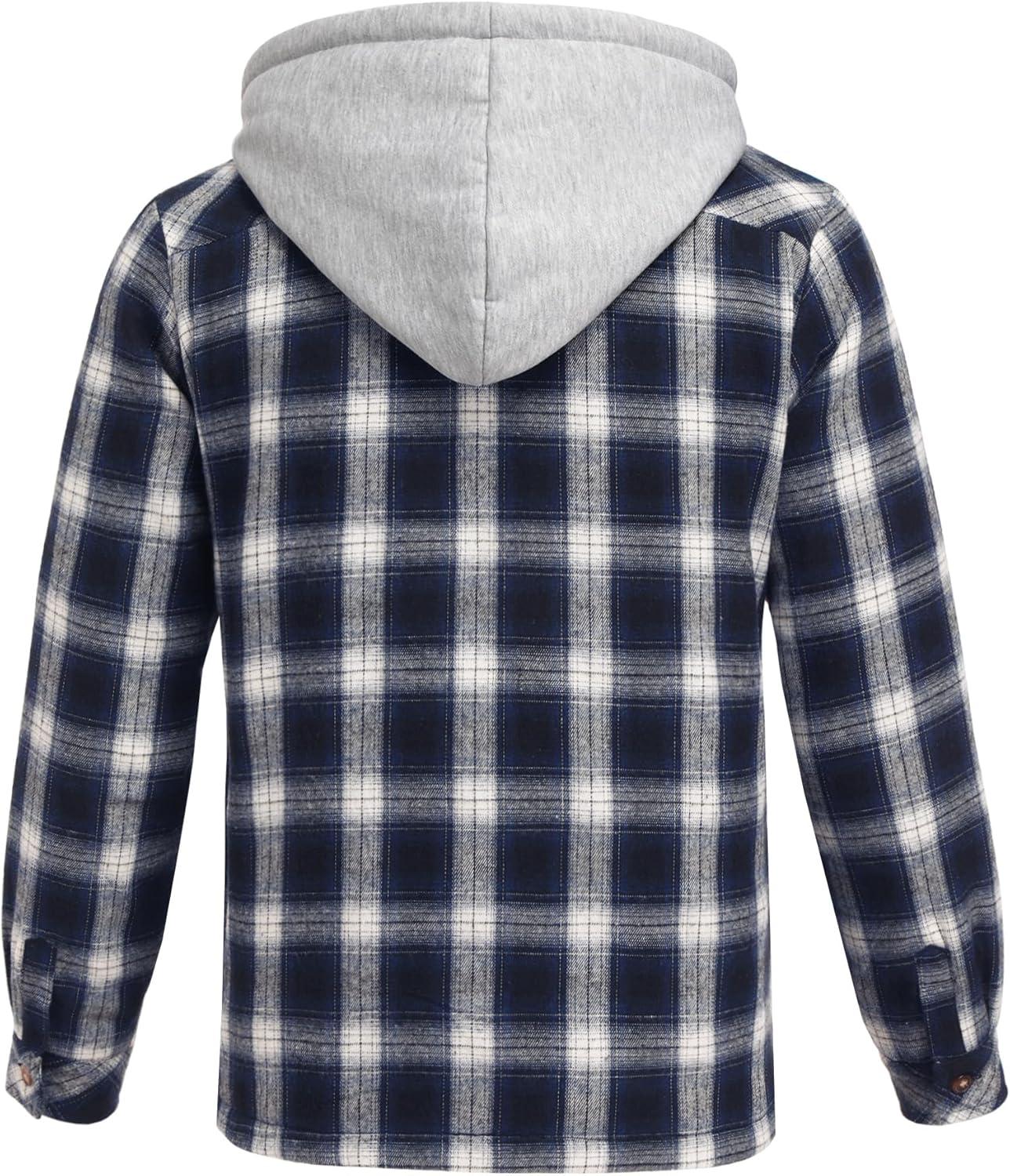 COOFANDY Men’s Flannel Shirt Jacket Warm Quilted Lined Hooded Long Sleeve Plaid Shirt Jackets(Black & White& Blue Plaid)