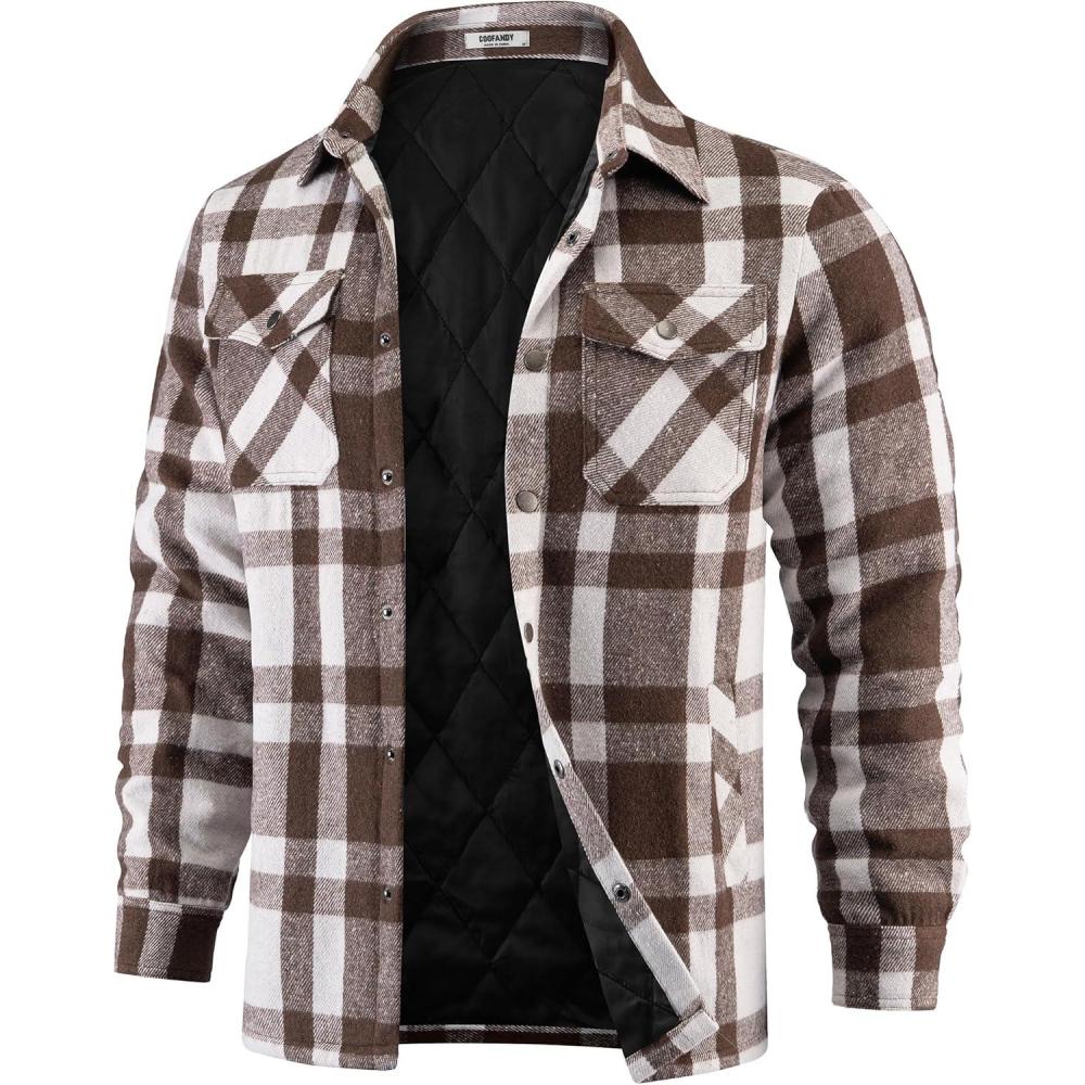 COOFANDY Men’s Flannel Shirt Jackets Quilted Lined Plaid Jacket Long Sleeve Button Down Thick Winter Outwear Shackets(Coffee)