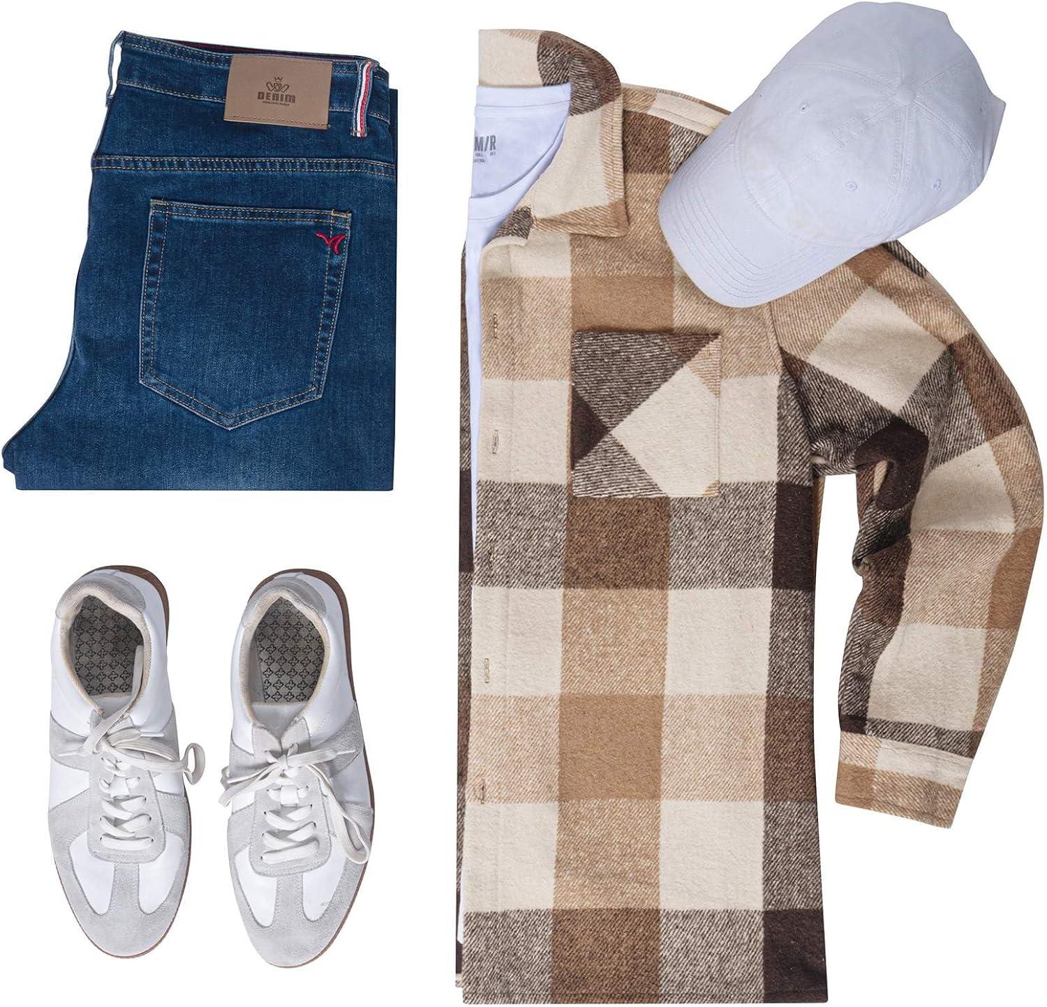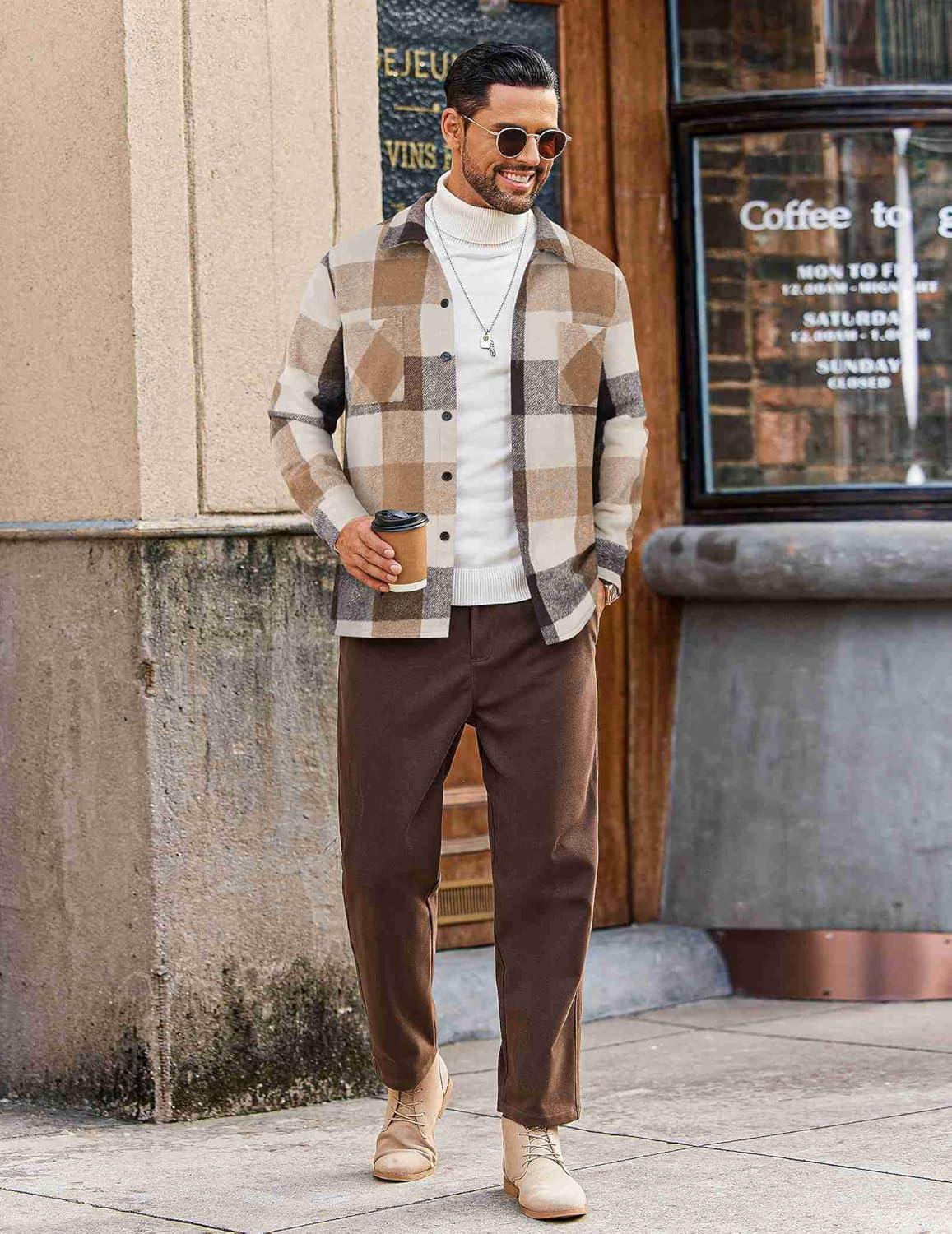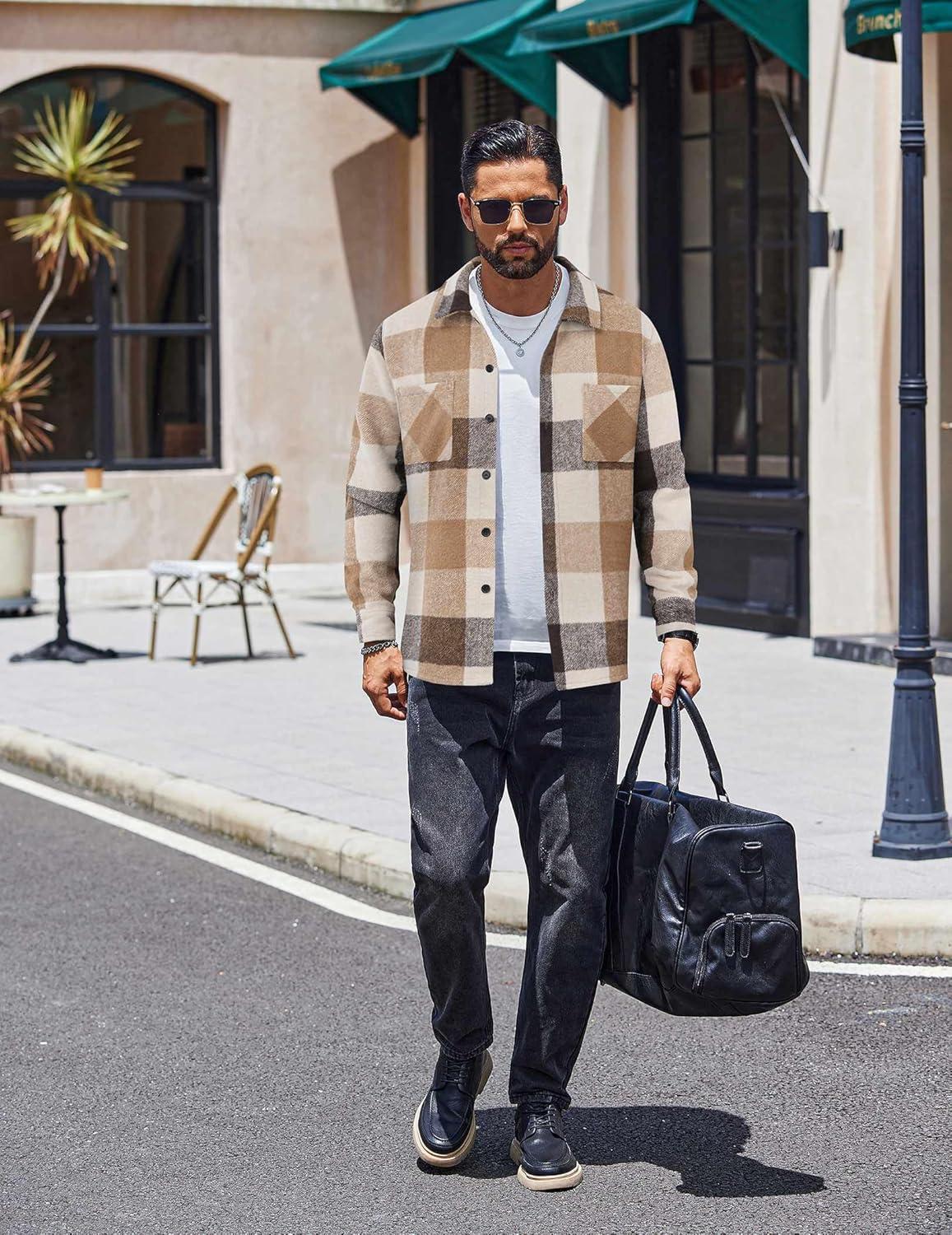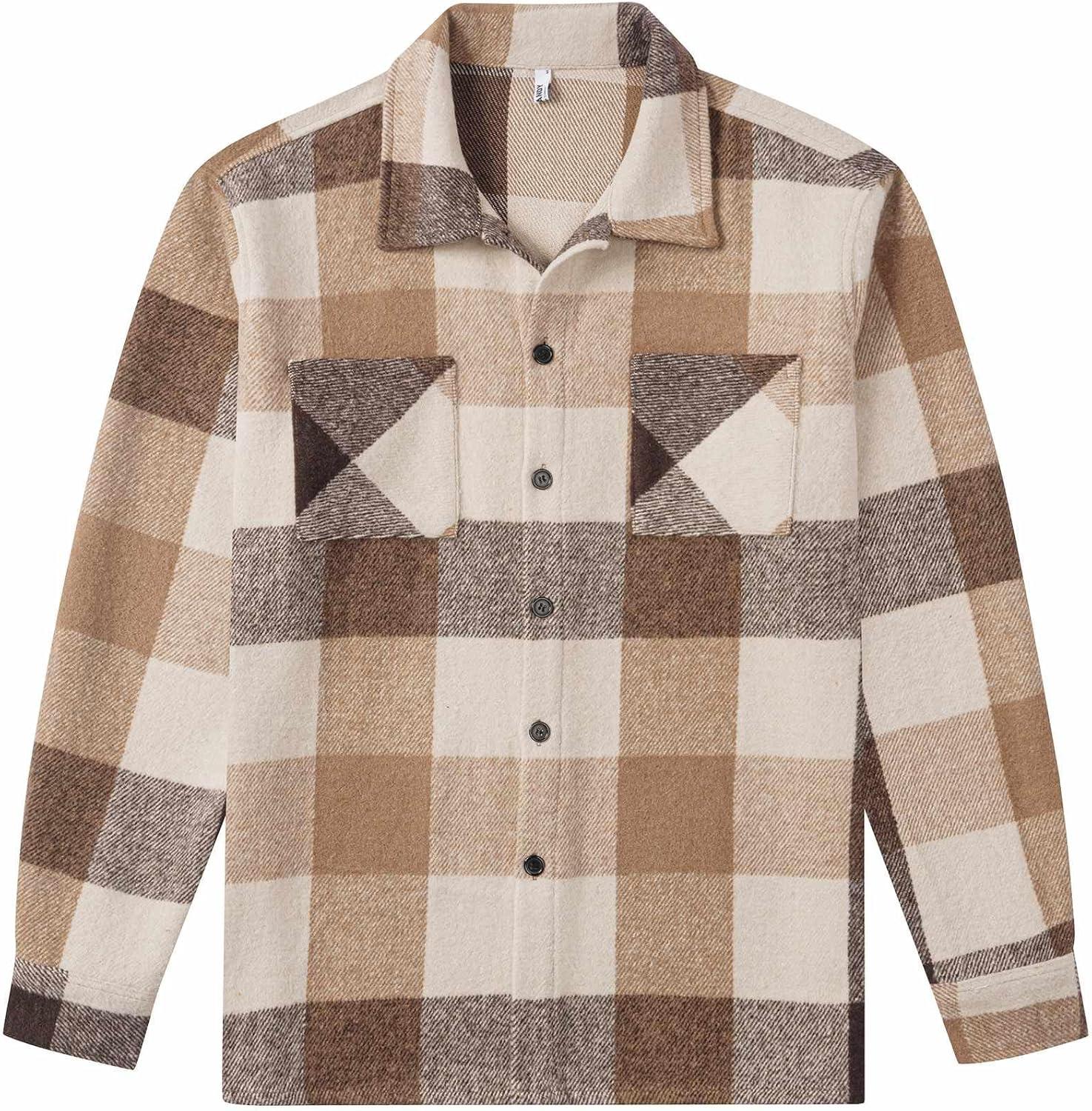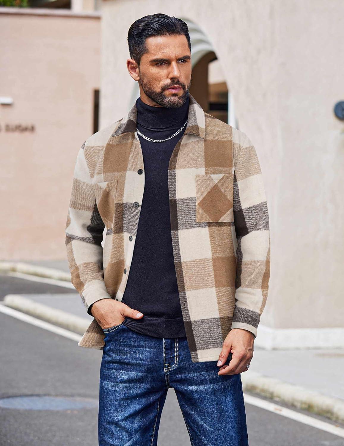 COOFANDY Men’s Flannel Shirts Casual Button Down Plaid Shirt Jacket Long Sleeve Fleece Shacket with Pockets(Buffalo Khaki)