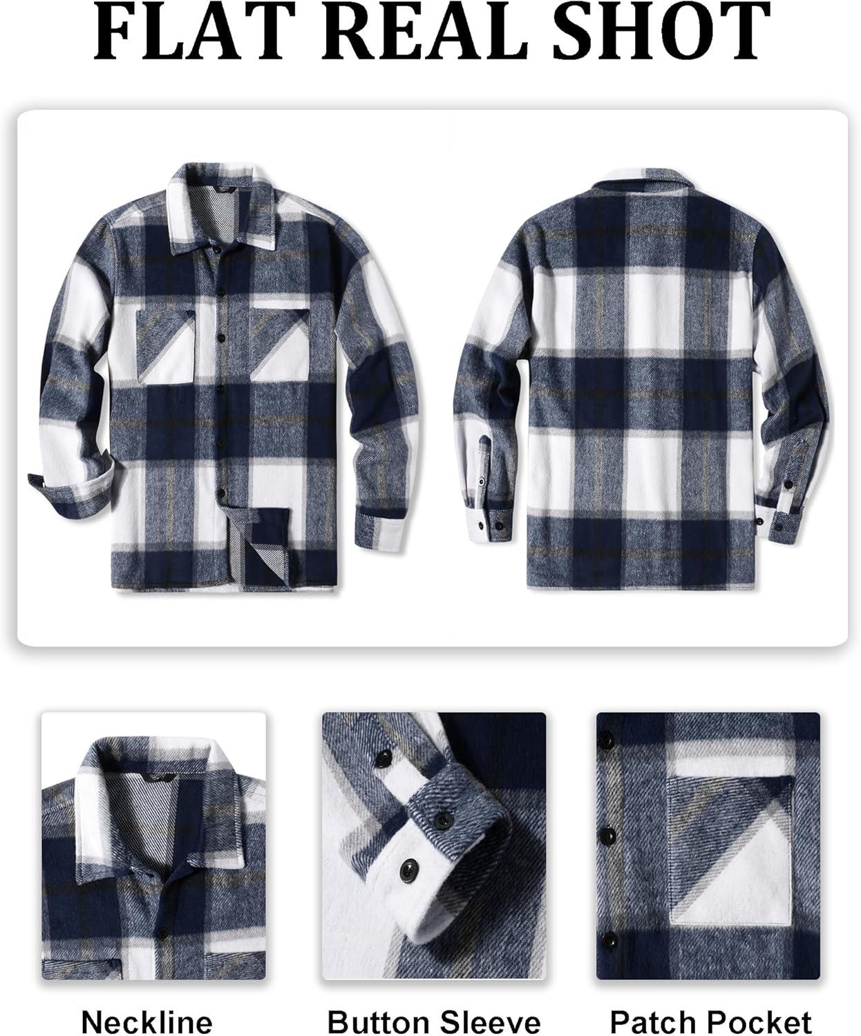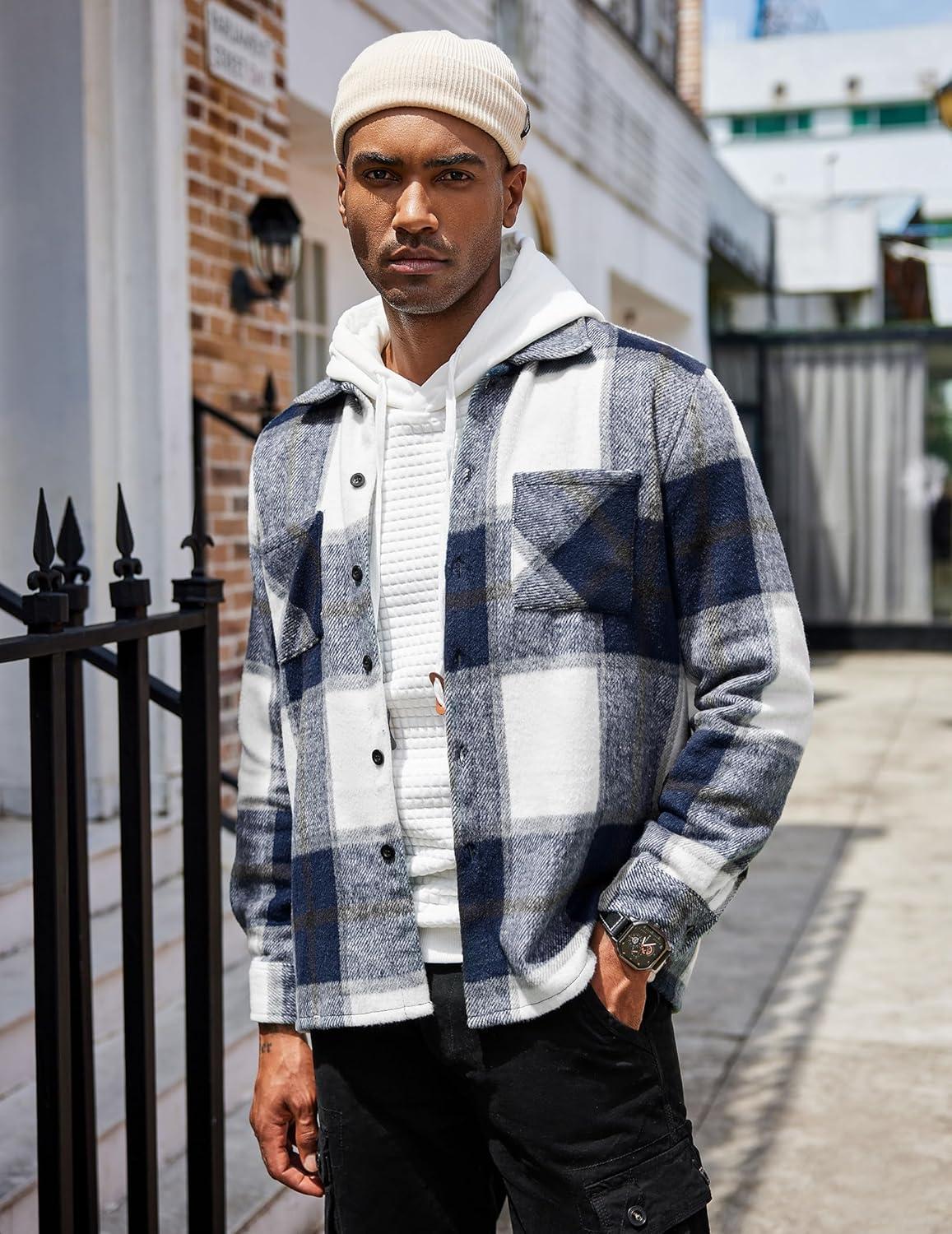 COOFANDY Men’s Flannel Shirts Casual Button Down Plaid Shirt Jacket Long Sleeve Fleece Shacket with Pockets(Navy Blue)