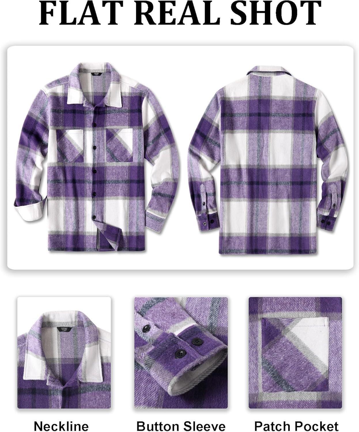 COOFANDY Men’s Flannel Shirts Casual Button Down Plaid Shirt Jacket Long Sleeve Fleece Shacket with Pockets(Purple)