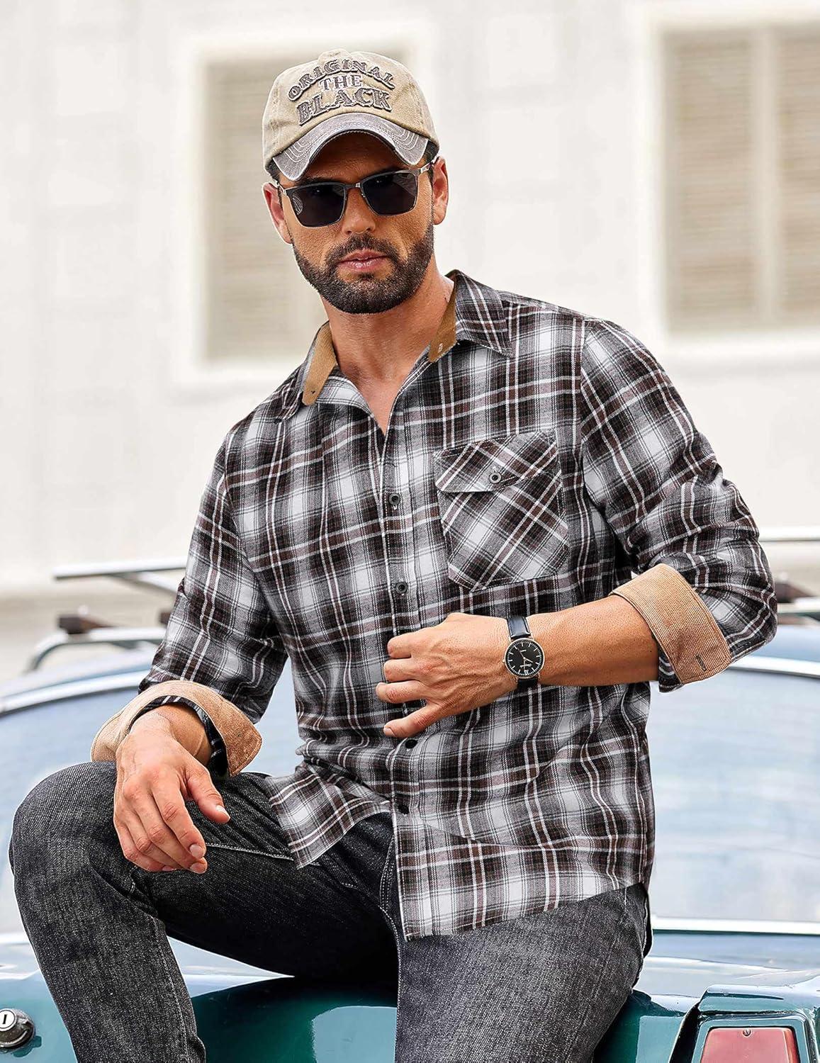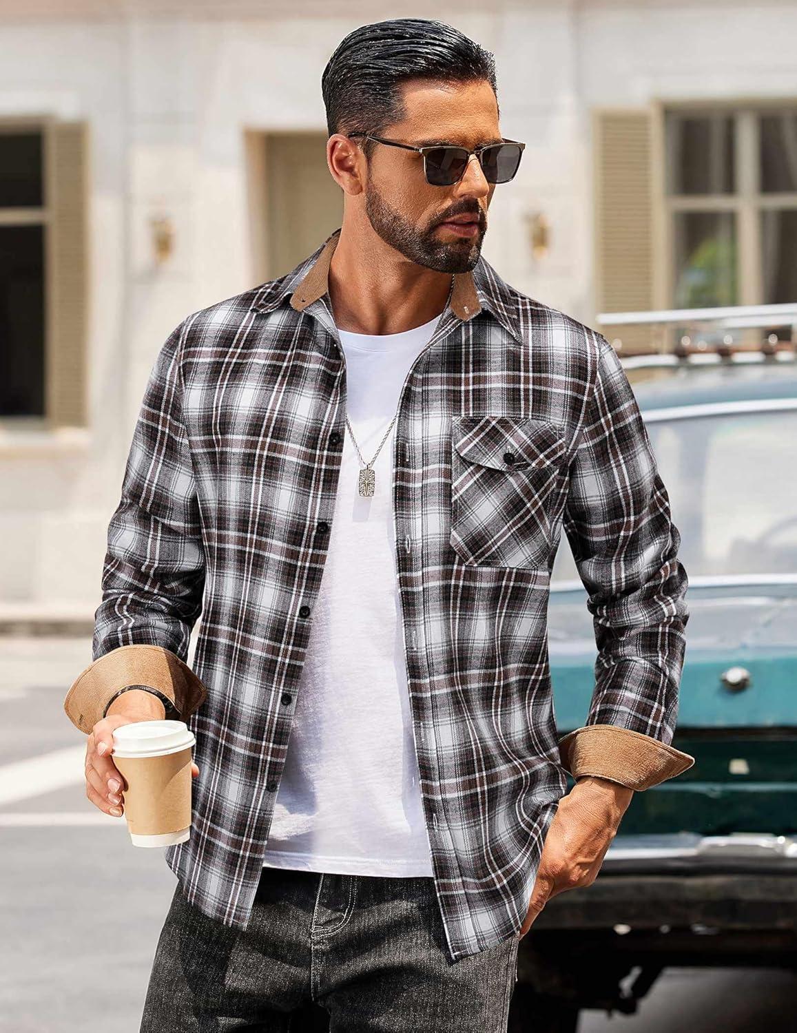 COOFANDY Mens Flannel Shirts Long Sleeve Button Down Shirt Casual Plaid Shirts with Pocket(Brown Black White Plaid)