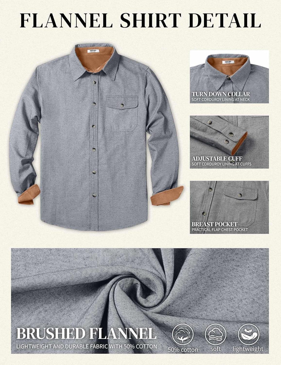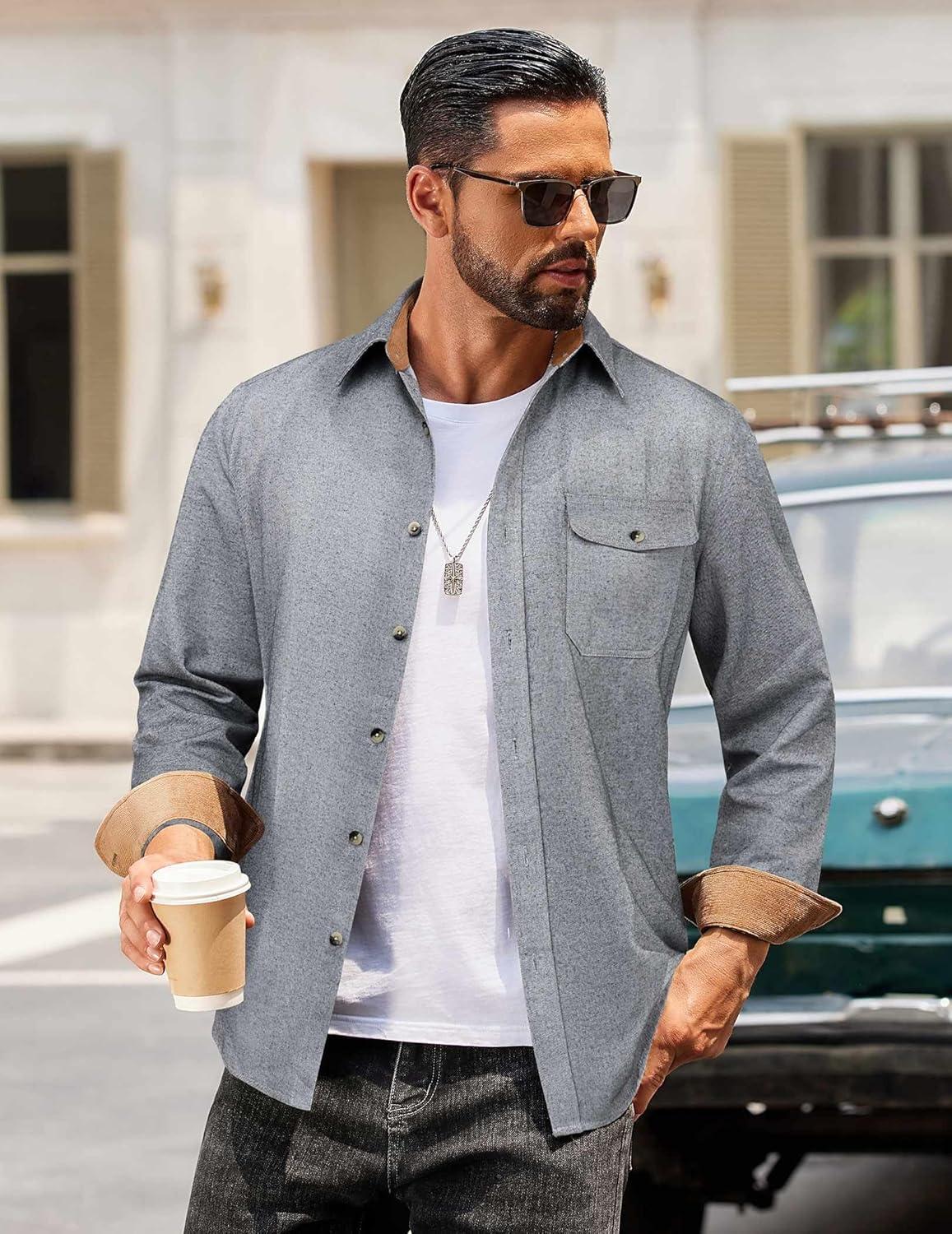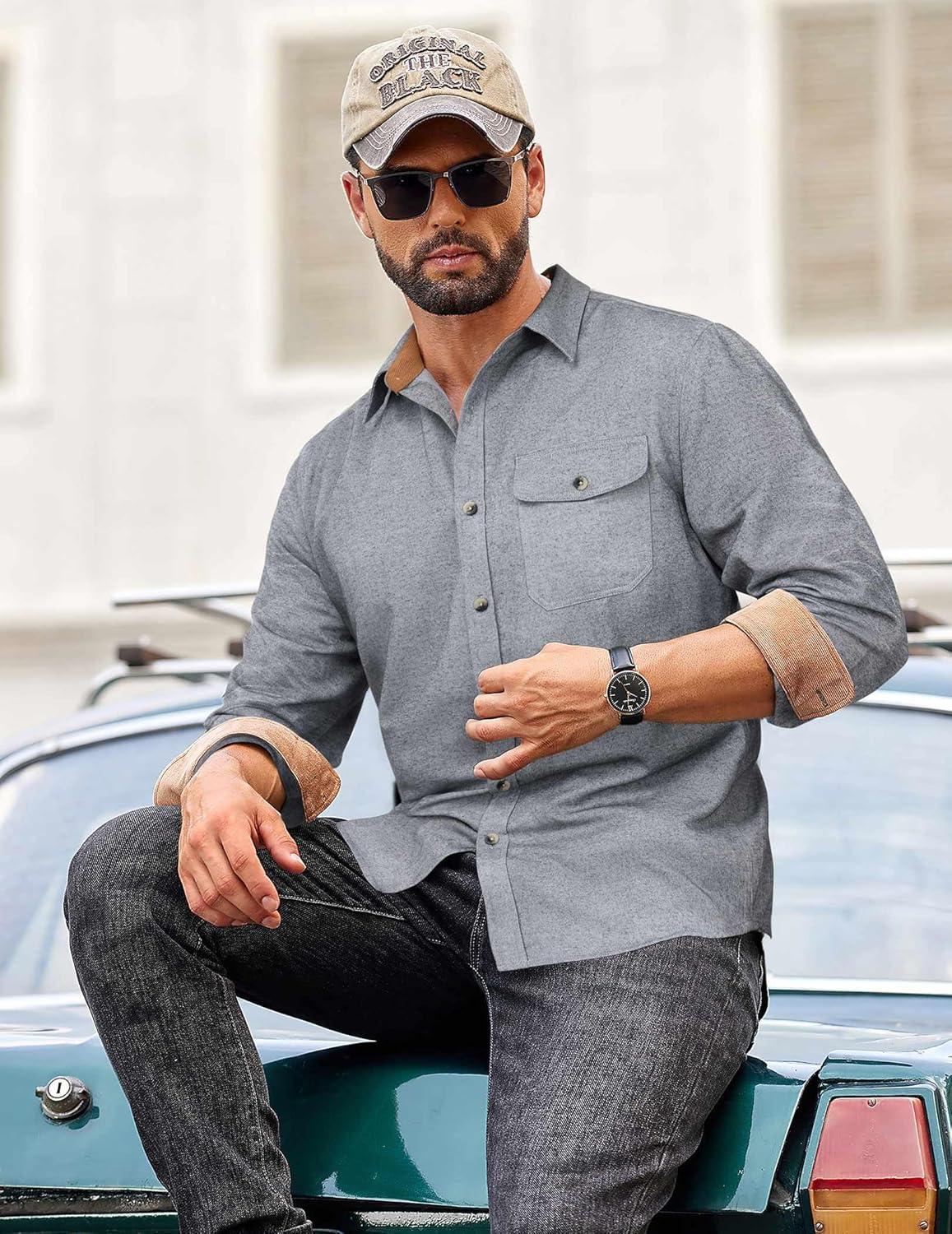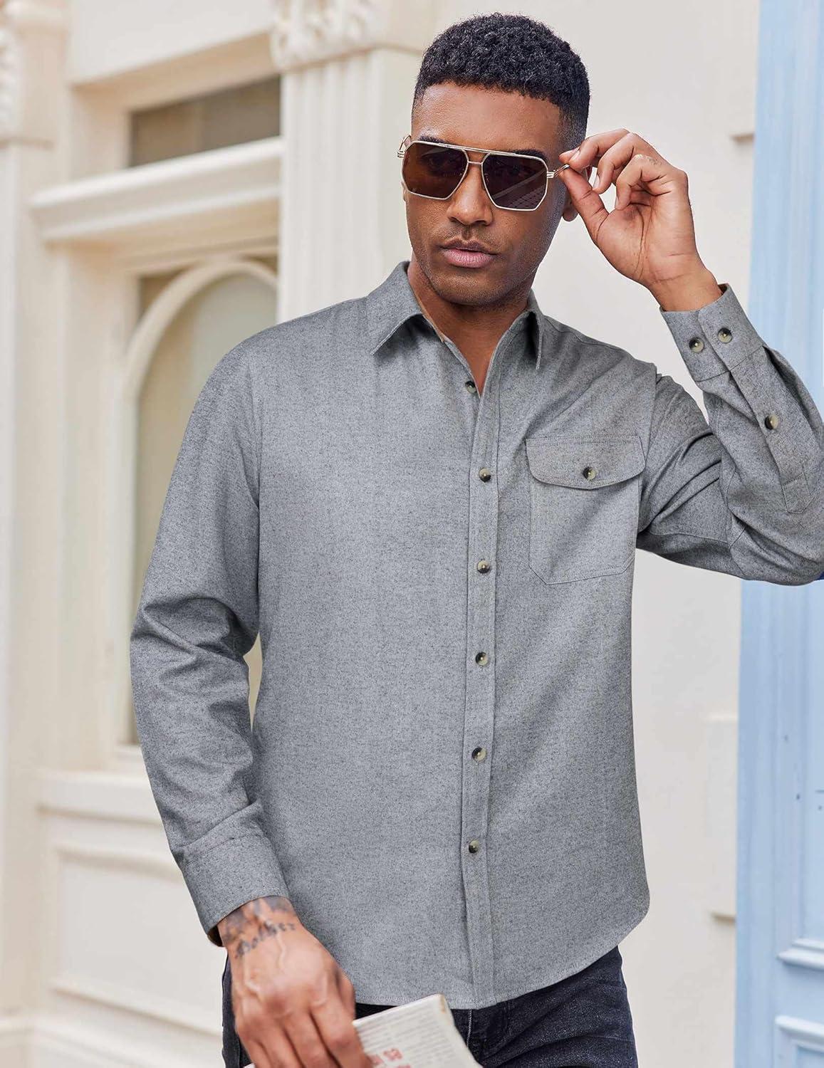 COOFANDY Mens Flannel Shirts Long Sleeve Button Down Shirt Casual Plaid Shirts with Pocket(Grey Heather)