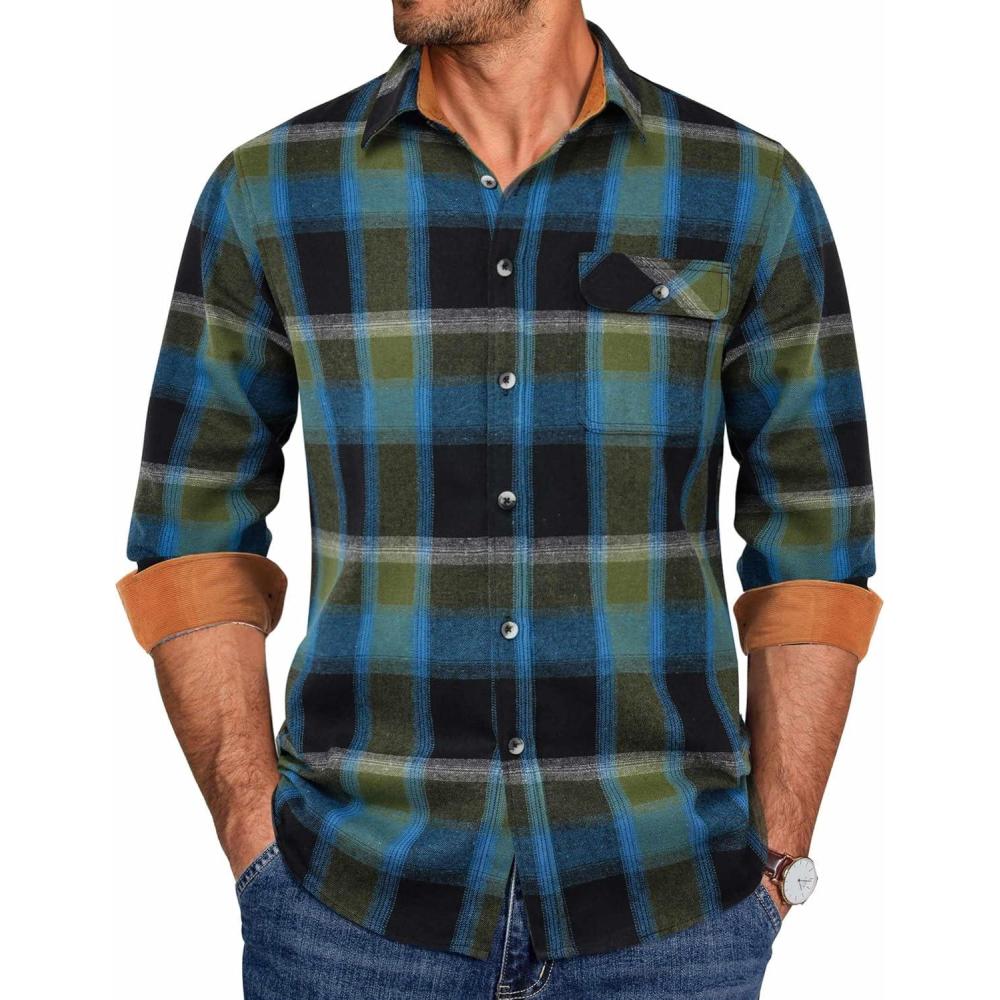 COOFANDY Mens Flannel Shirts Long Sleeve Button Down Shirt Casual Shirts Work Shirts for Men(Royal Blue Black)