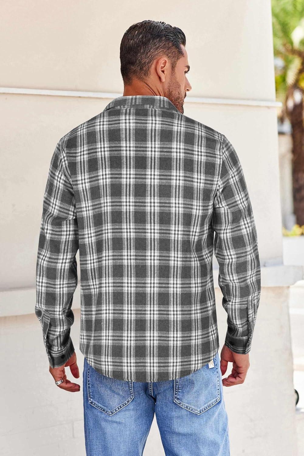 COOFANDY Mens Flannel Shirts Long Sleeve Button Down Shirt with Pocket Casual Shirts Work Shirts for Men(Dark Grey and White)