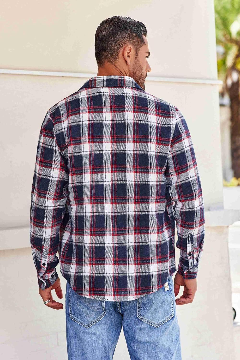 COOFANDY Mens Flannel Shirts Long Sleeve Button Down Shirt with Pocket Casual Shirts Work Shirts for Men(Navy Red White Plaid)