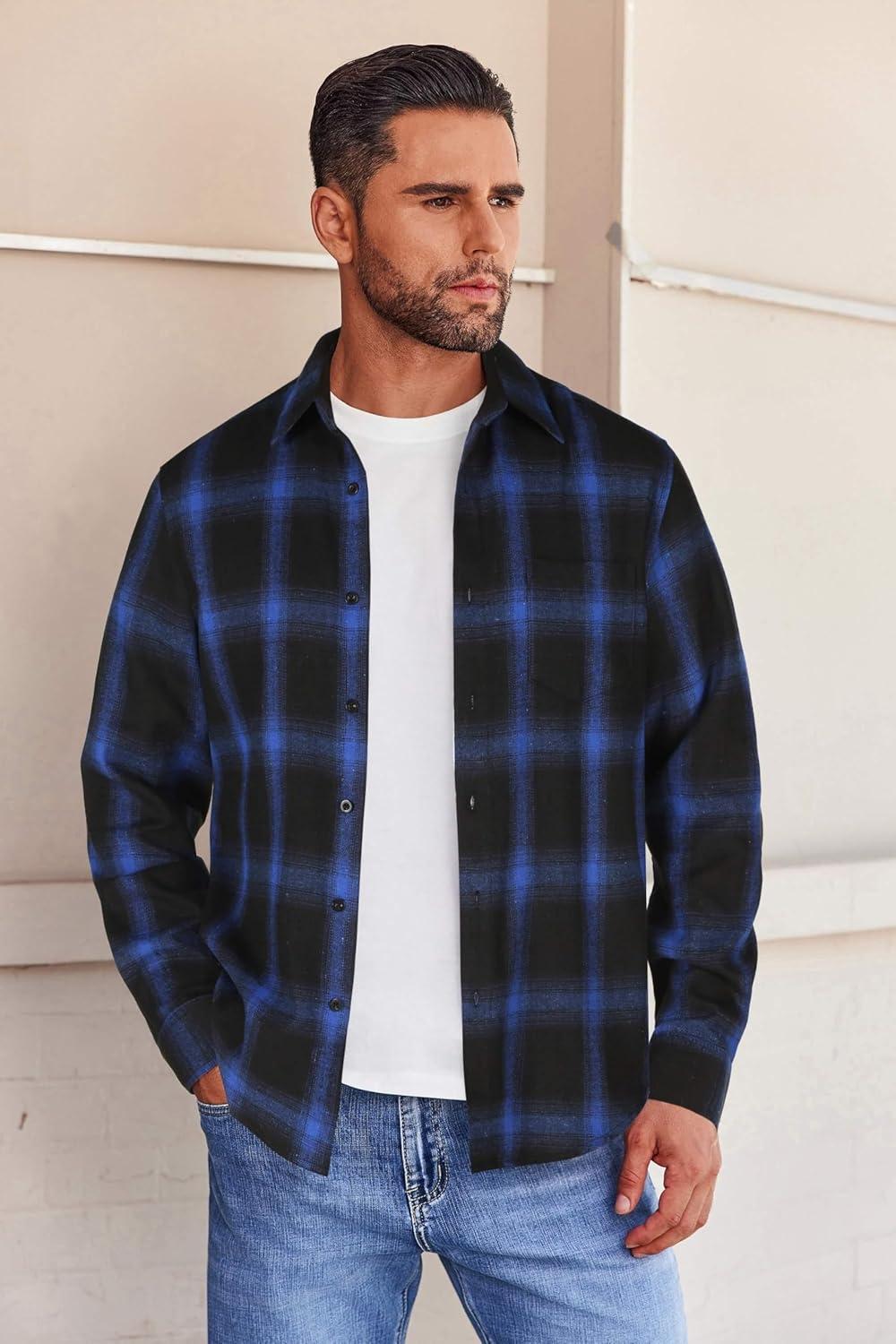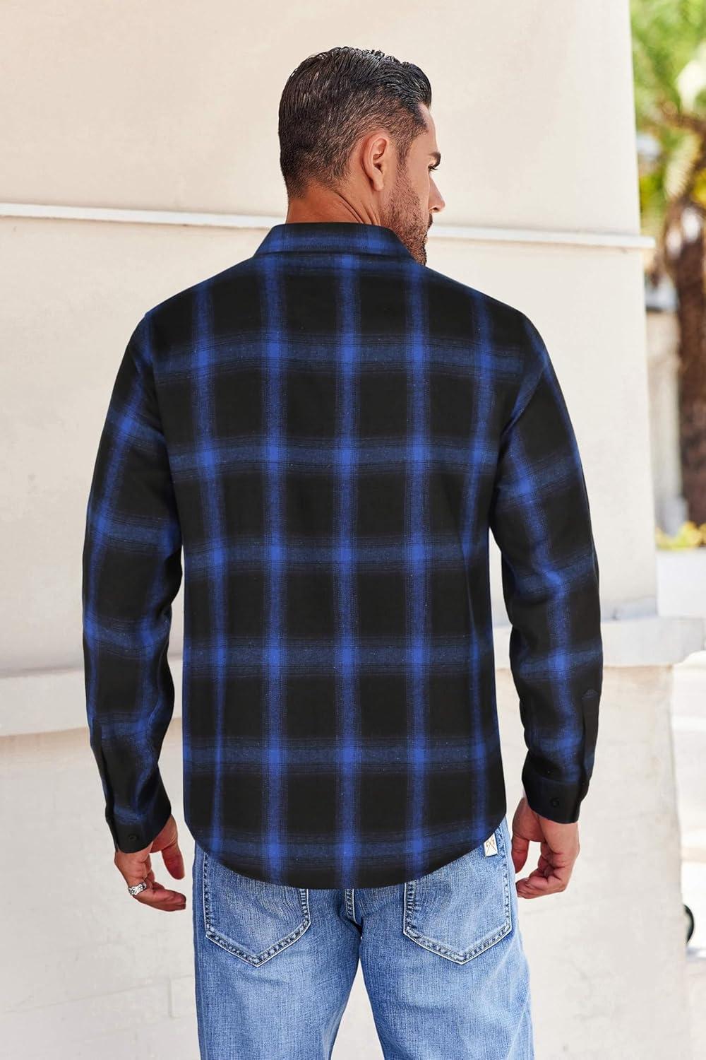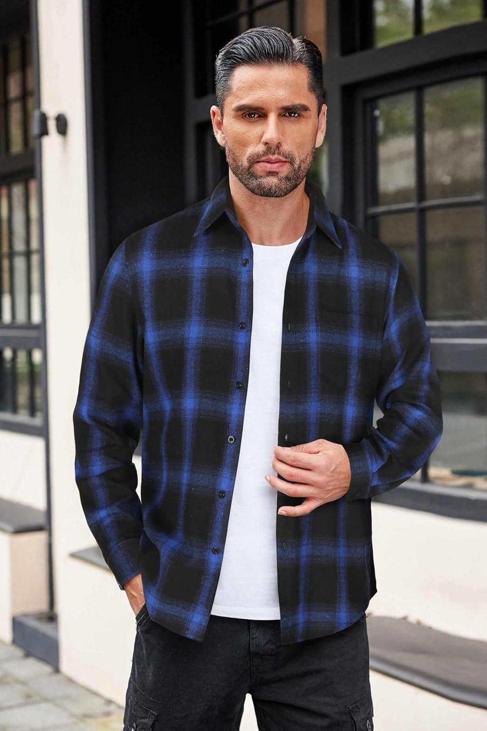 COOFANDY Mens Flannel Shirts Long Sleeve Button Down Shirt with Pocket Casual Shirts Work Shirts for Men(Royal Blue/Black)
