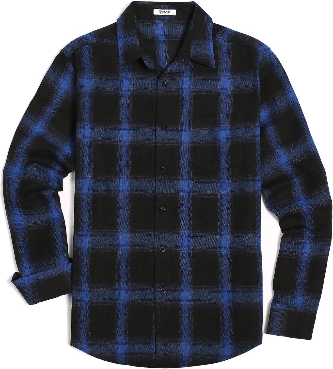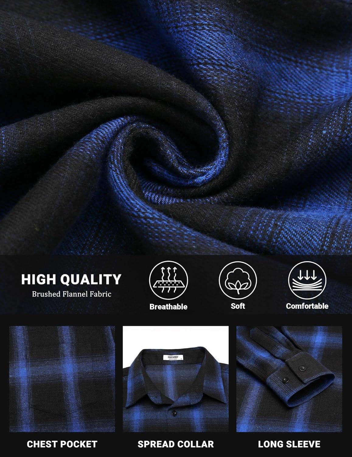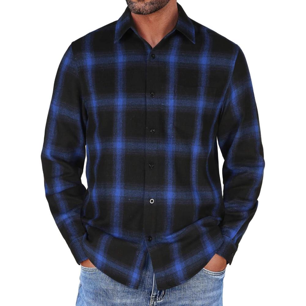 COOFANDY Mens Flannel Shirts Long Sleeve Button Down Shirt with Pocket Casual Shirts Work Shirts for Men(Royal Blue/Black)