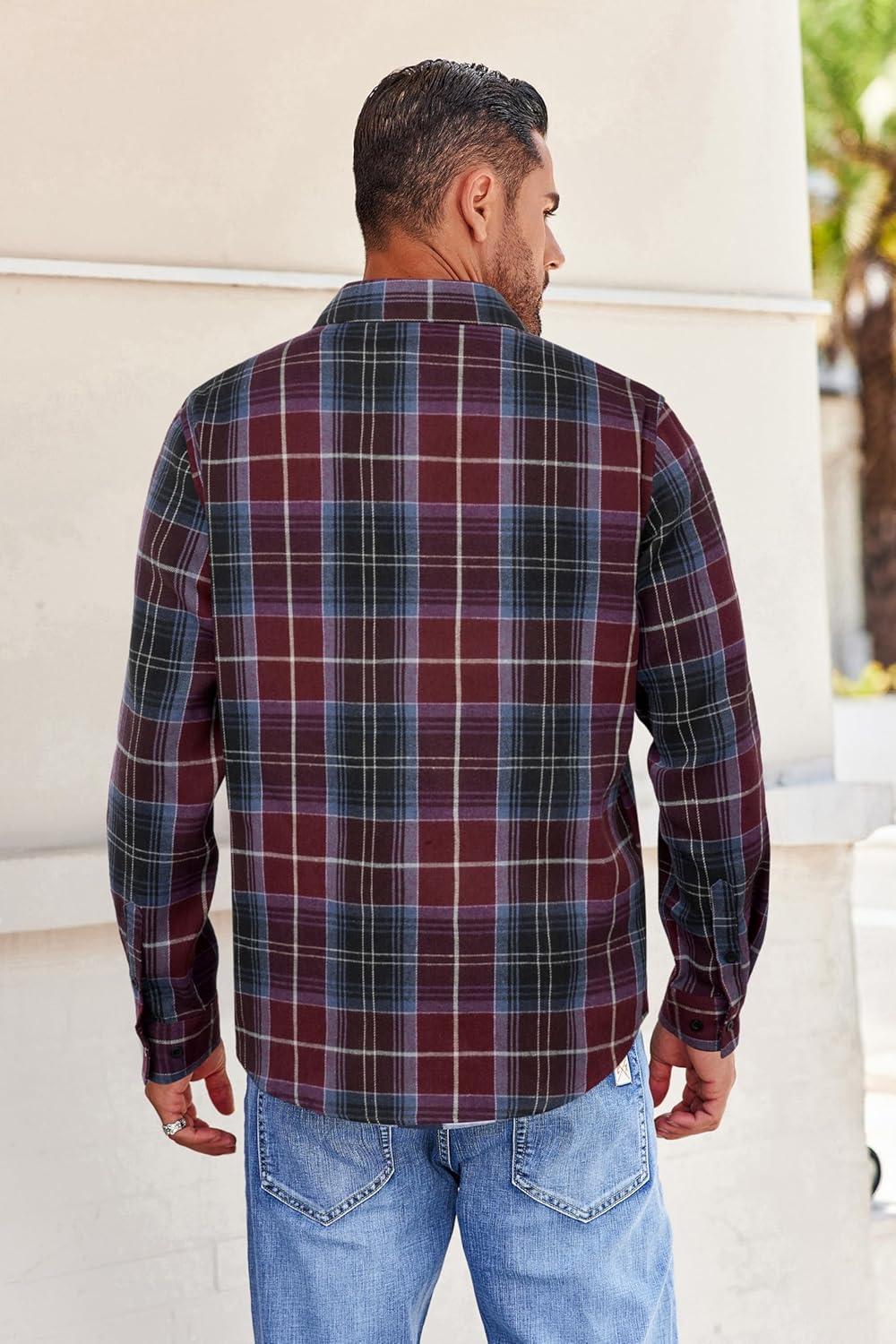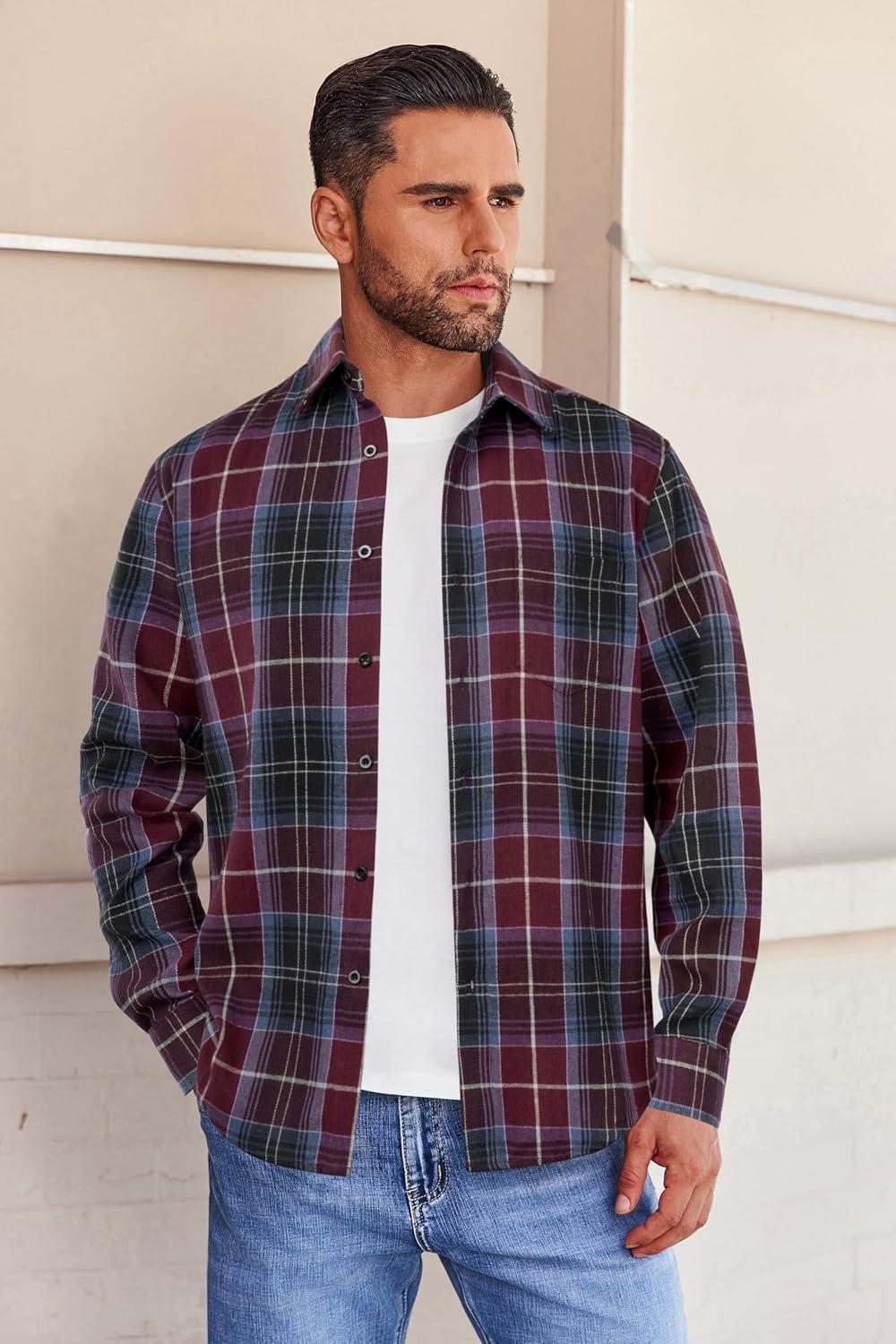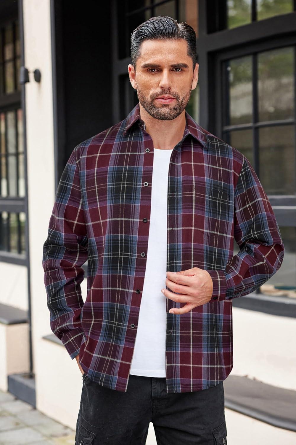 COOFANDY Mens Flannel Shirts Long Sleeve Button Down Shirt with Pocket Casual Shirts Work Shirts for Men(Wine Red Black Plaid)