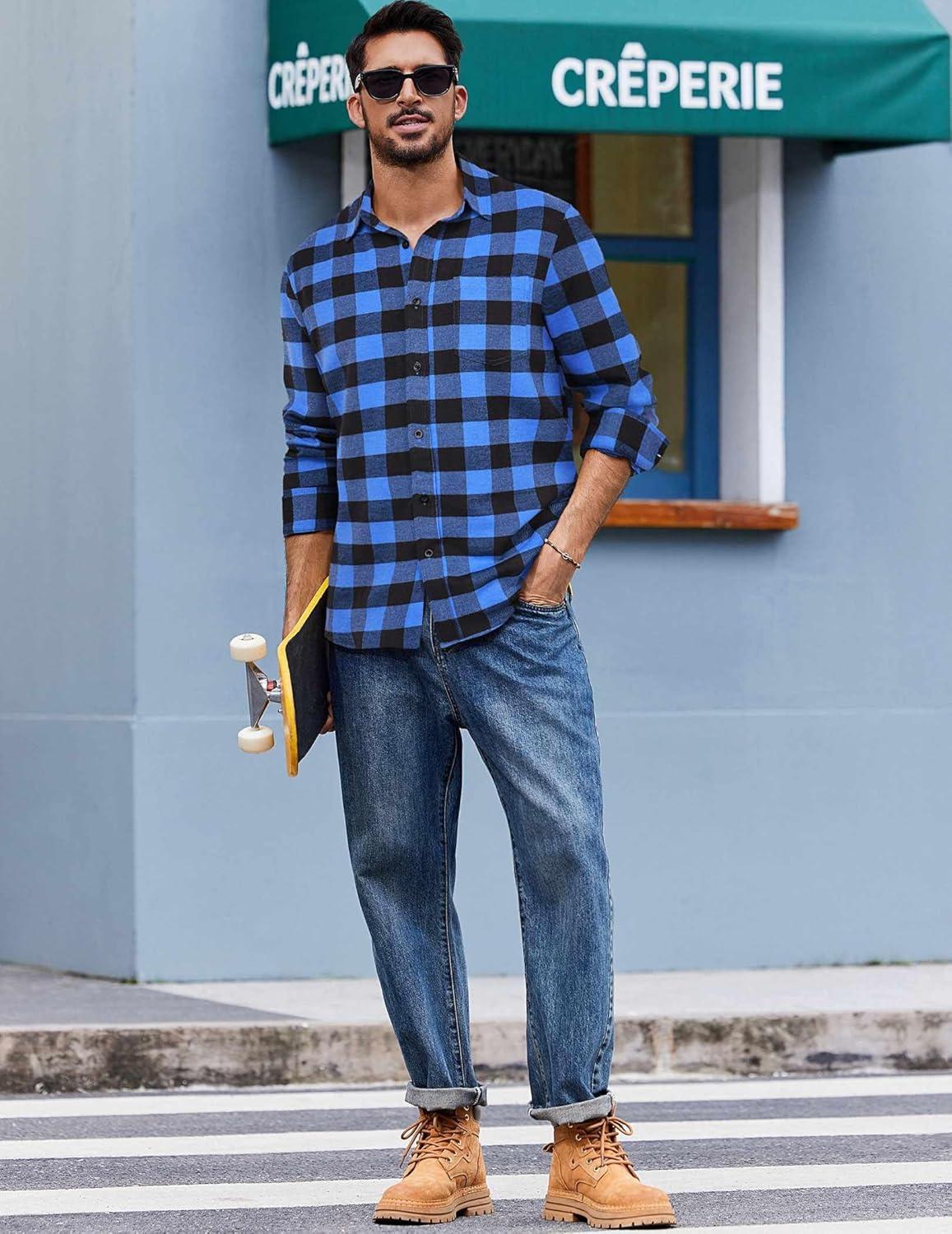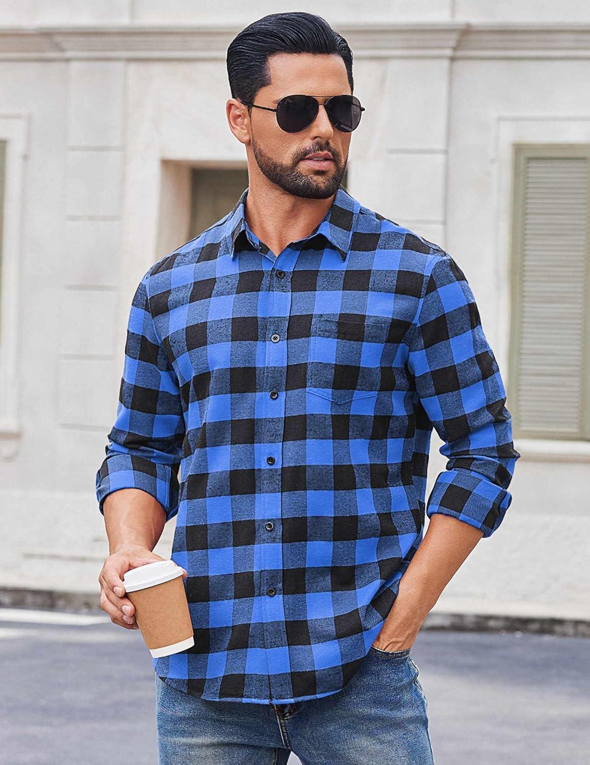 COOFANDY Mens Flannel Shirts Long Sleeve Casual Plaid Shirt for Men Button Up Shirt Jackets with Pocket(Buffalo Black Blue)