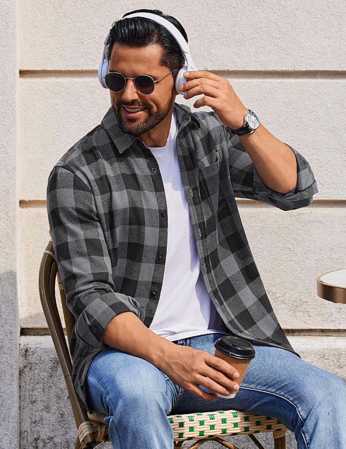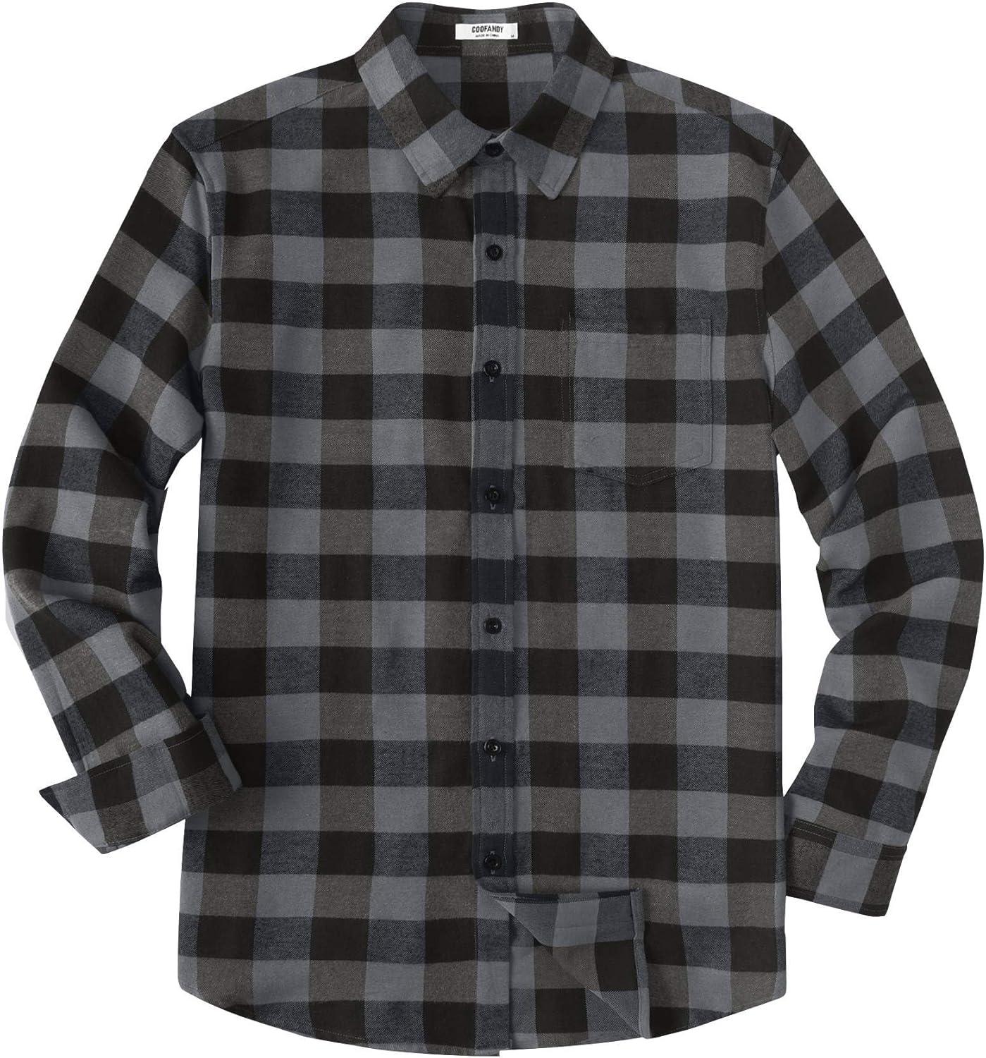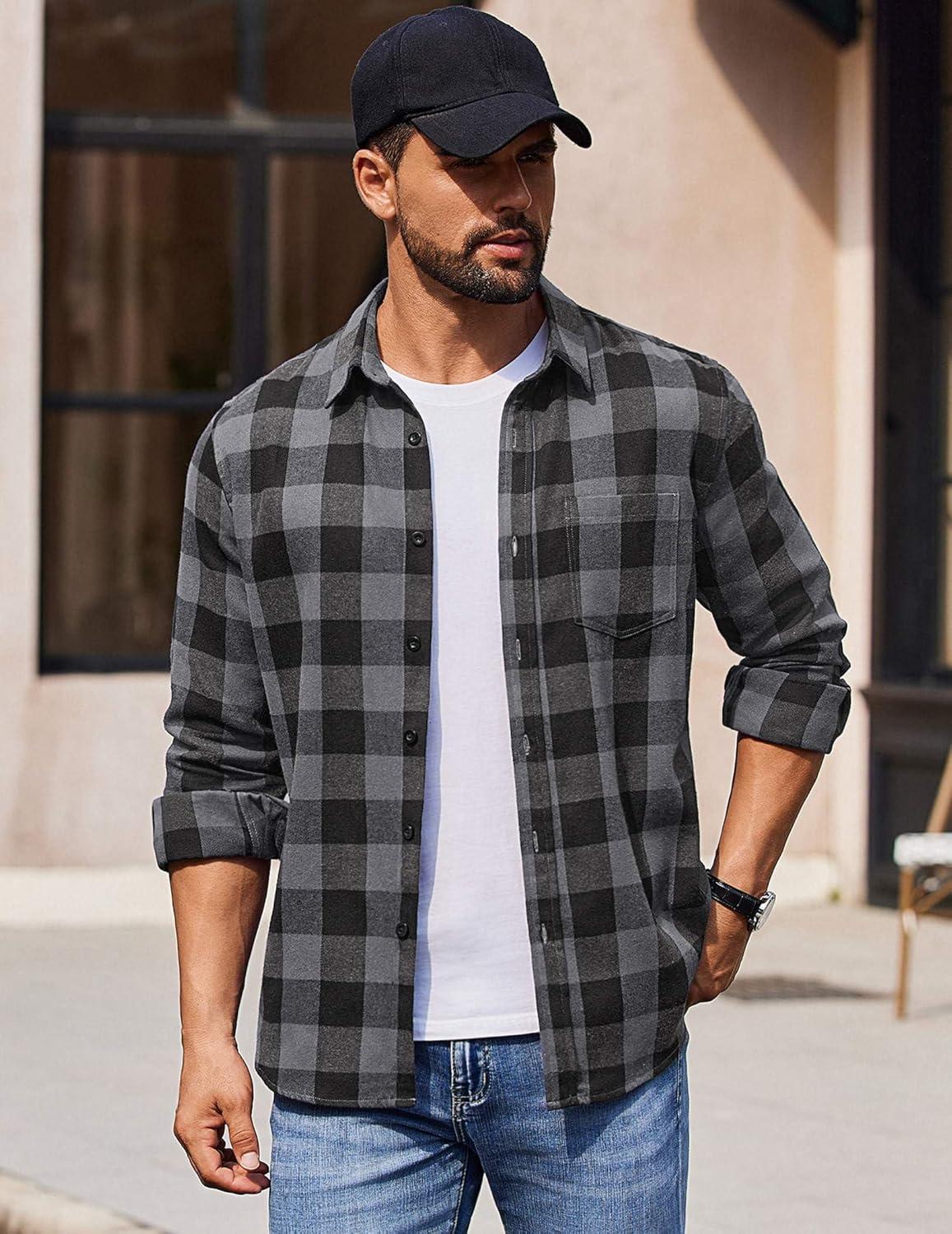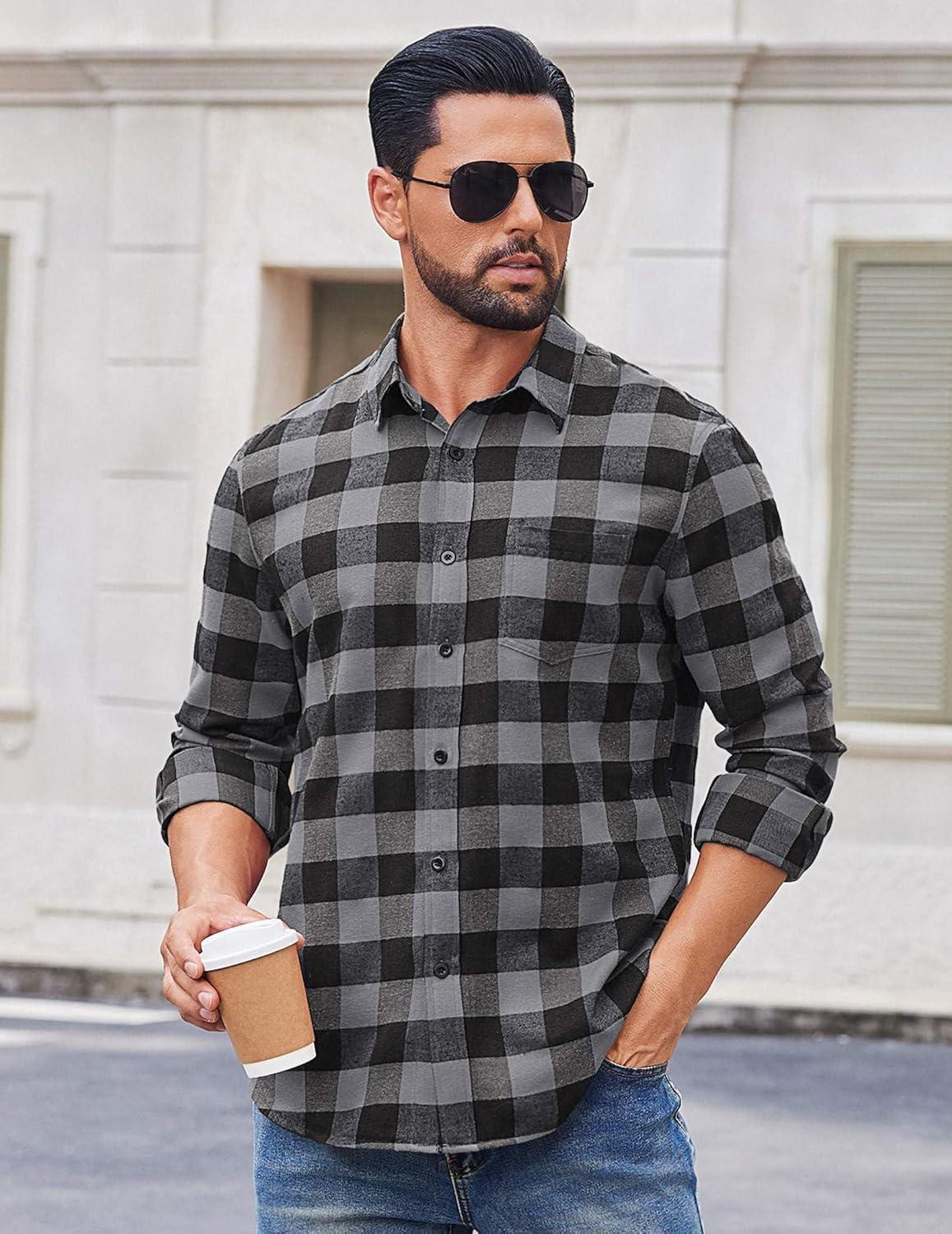 COOFANDY Mens Flannel Shirts Long Sleeve Casual Plaid Shirt for Men Button Up Shirt Jackets with Pocket(Buffalo Black Gray)