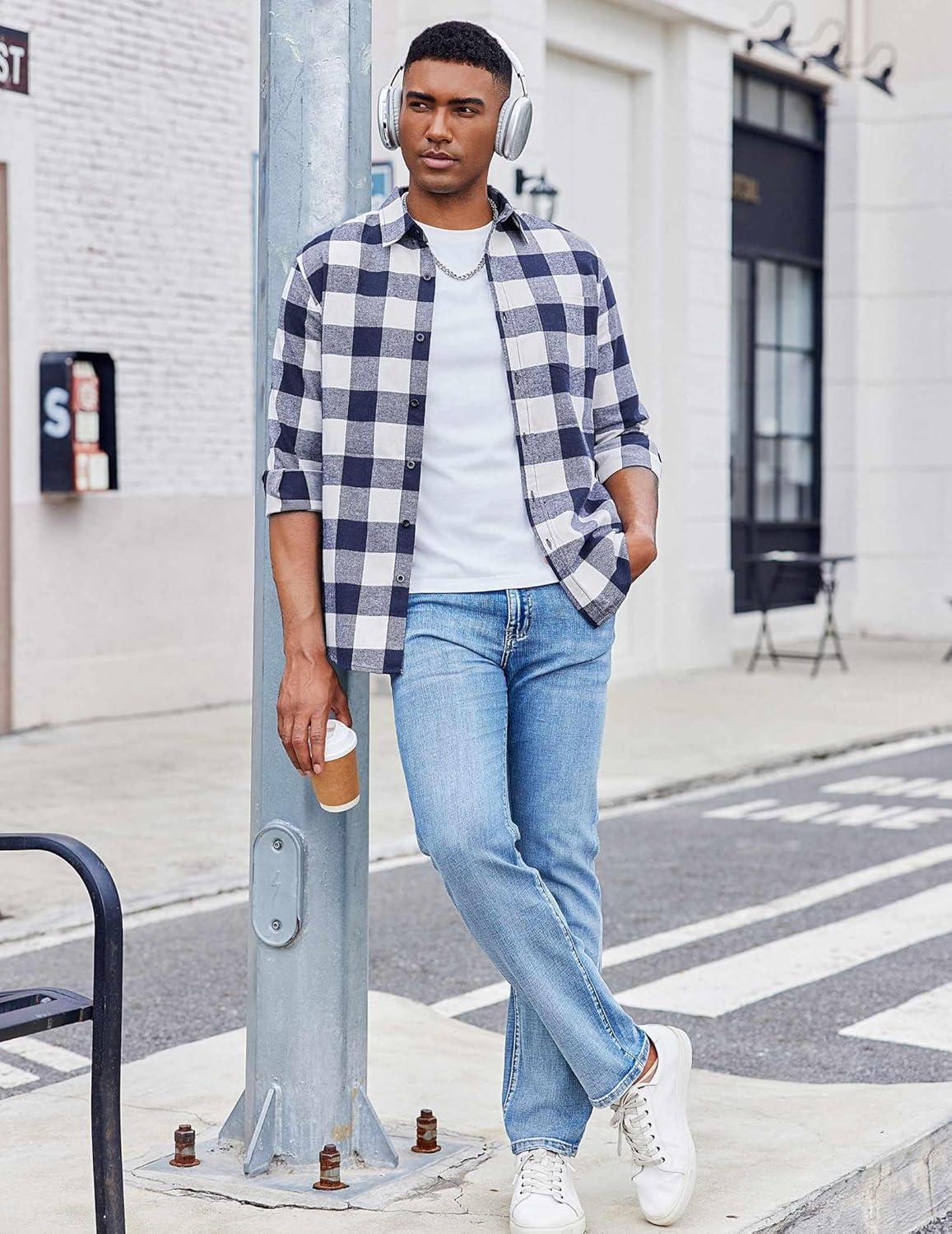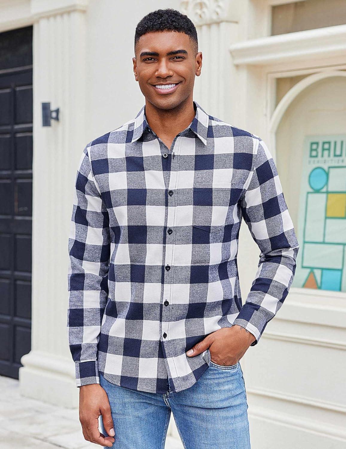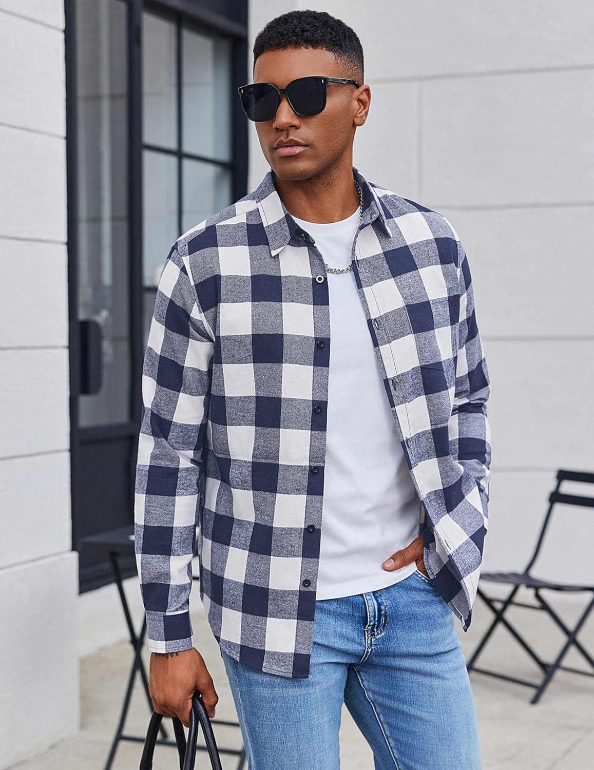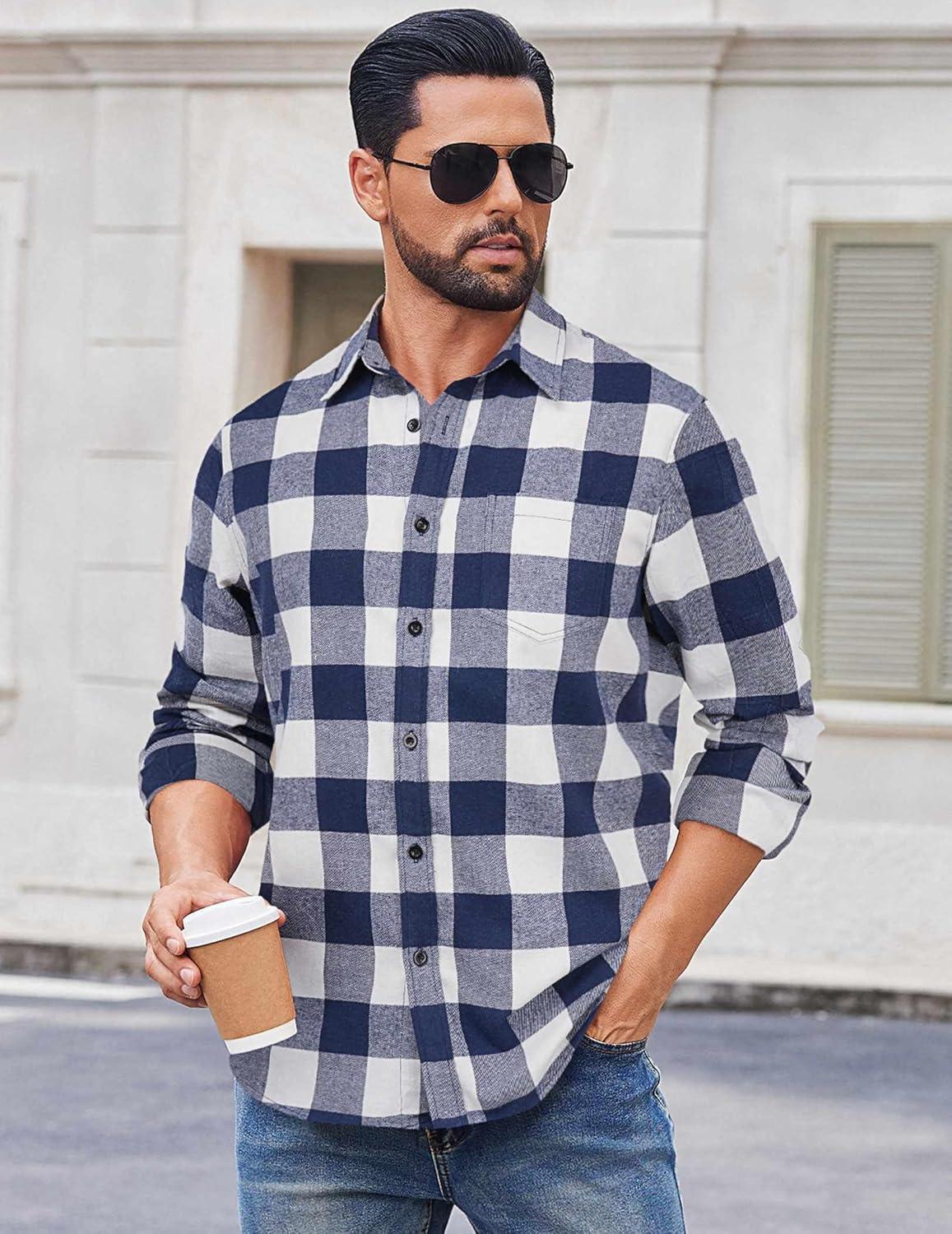 COOFANDY Mens Flannel Shirts Long Sleeve Casual Plaid Shirt for Men Button Up Shirt Jackets with Pocket(Buffalo Blue White)