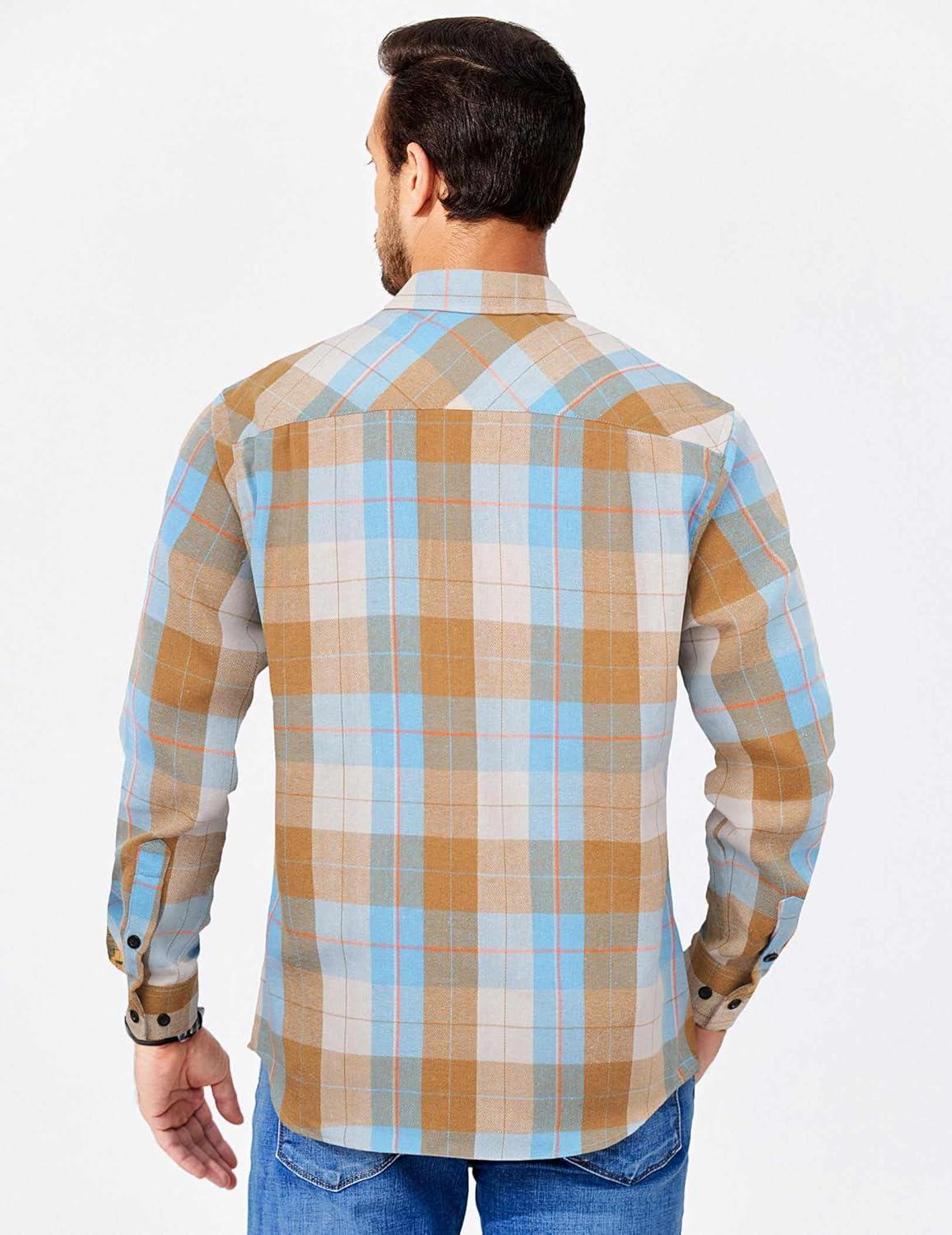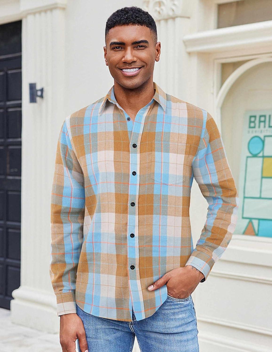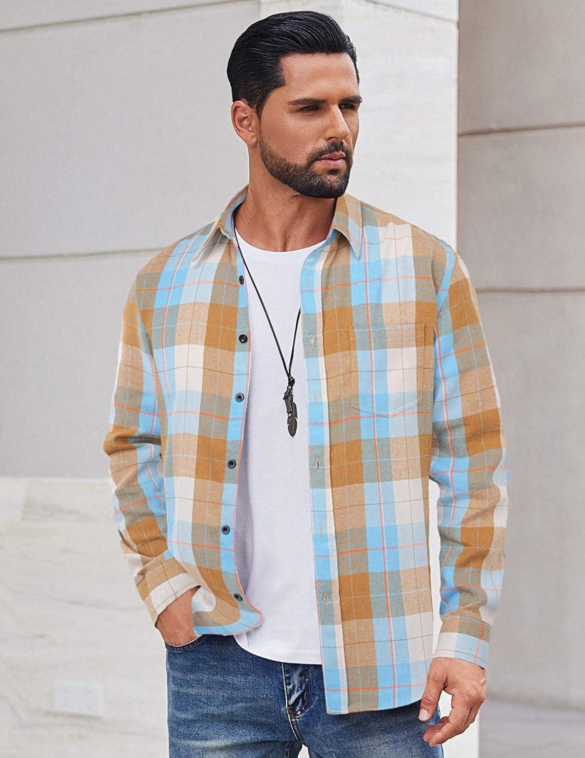 COOFANDY Mens Flannel Shirts Long Sleeve Casual Plaid Shirt for Men Button Up Shirt Jackets with Pocket(Plaid – Khaki Blue)