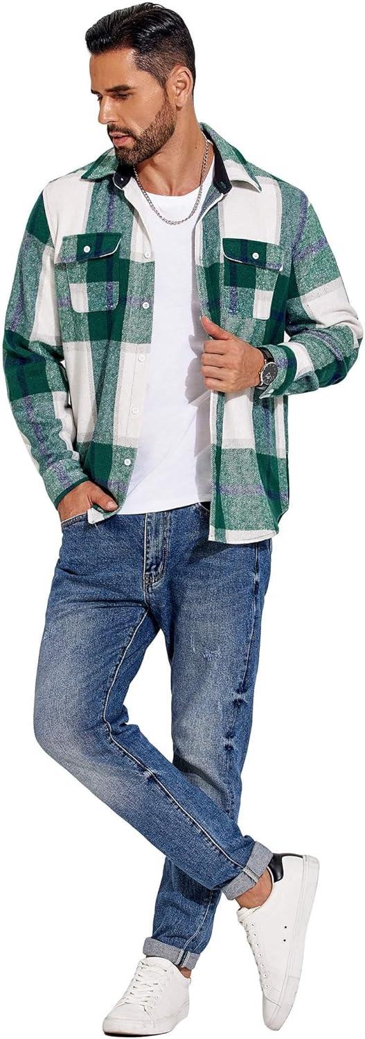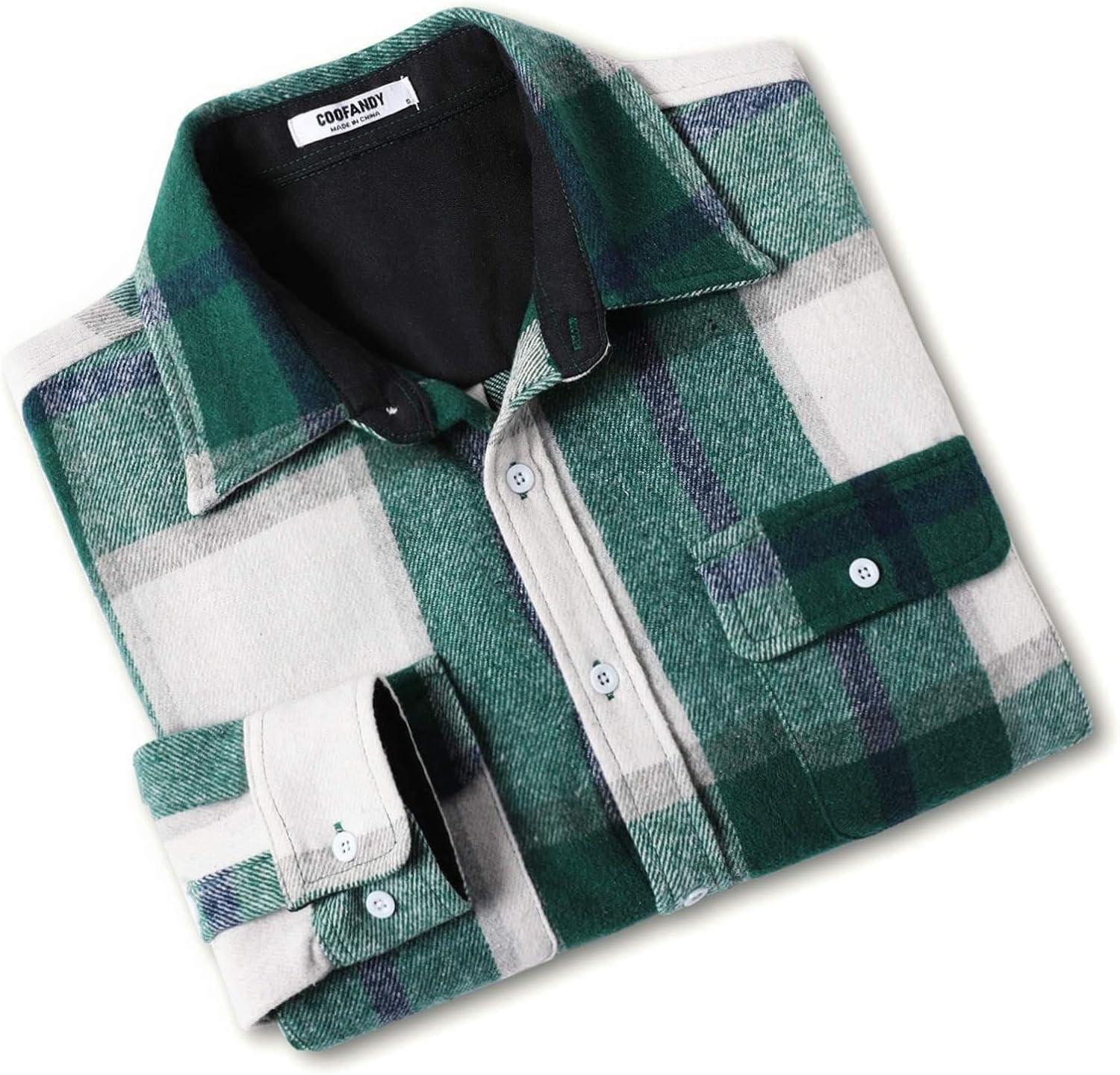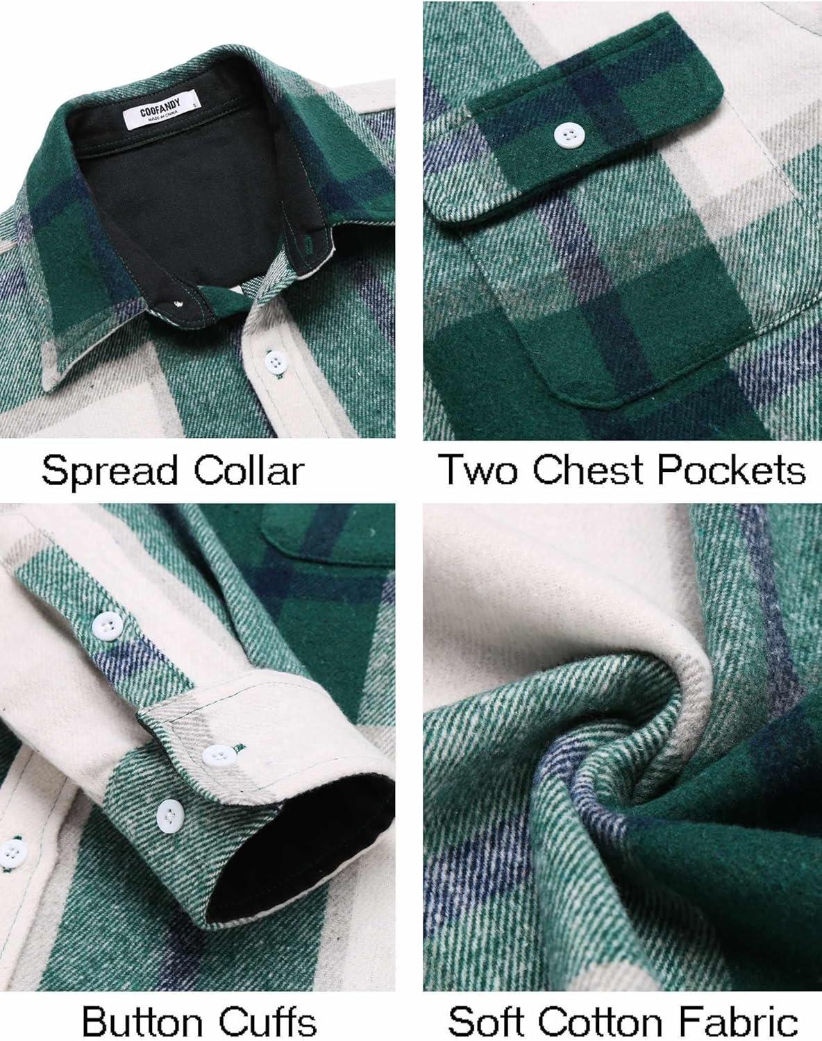 COOFANDY Men’s Flannel Shirts Long Sleeve Cotton Plaid Shirt Jacket Casual Button Down Shirt with Pockets(Green)