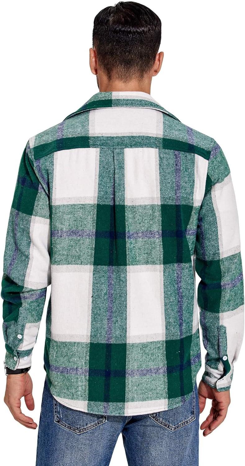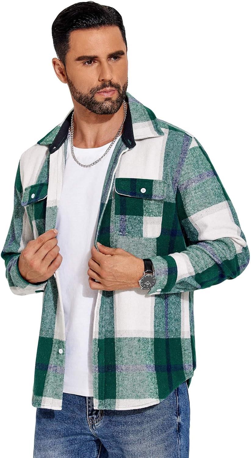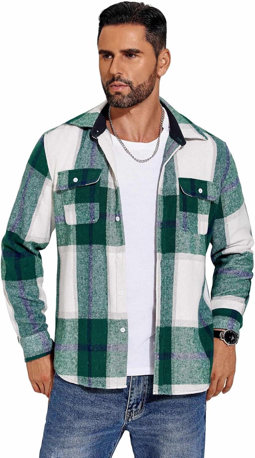 COOFANDY Men’s Flannel Shirts Long Sleeve Cotton Plaid Shirt Jacket Casual Button Down Shirt with Pockets(Green)