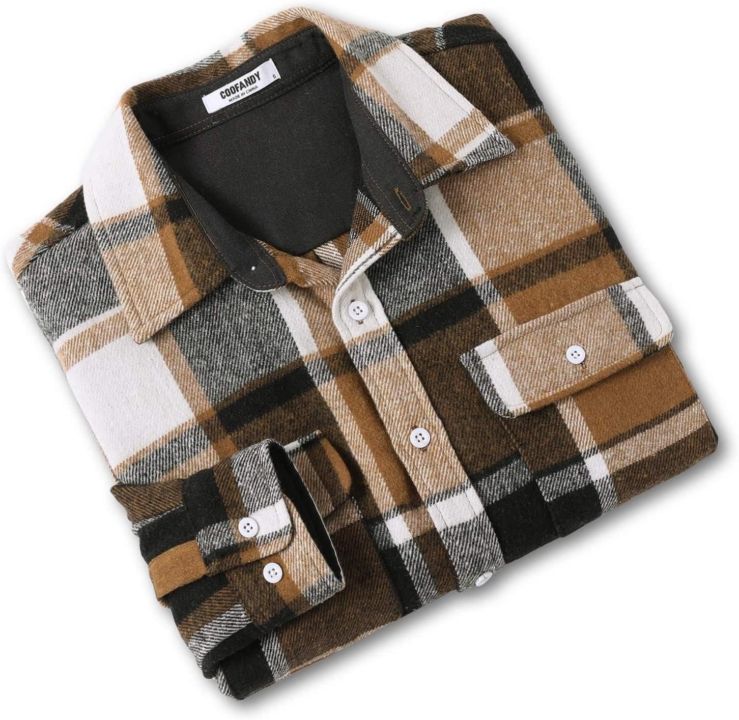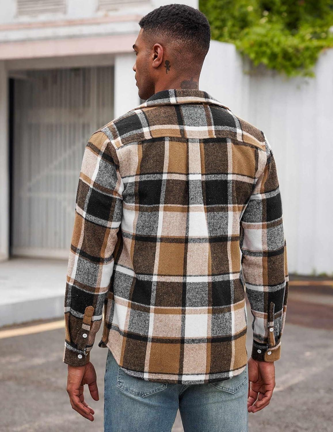 COOFANDY Men’s Flannel Shirts Long Sleeve Cotton Plaid Shirt Jacket Casual Button Down Shirt with Pockets(Khaki)