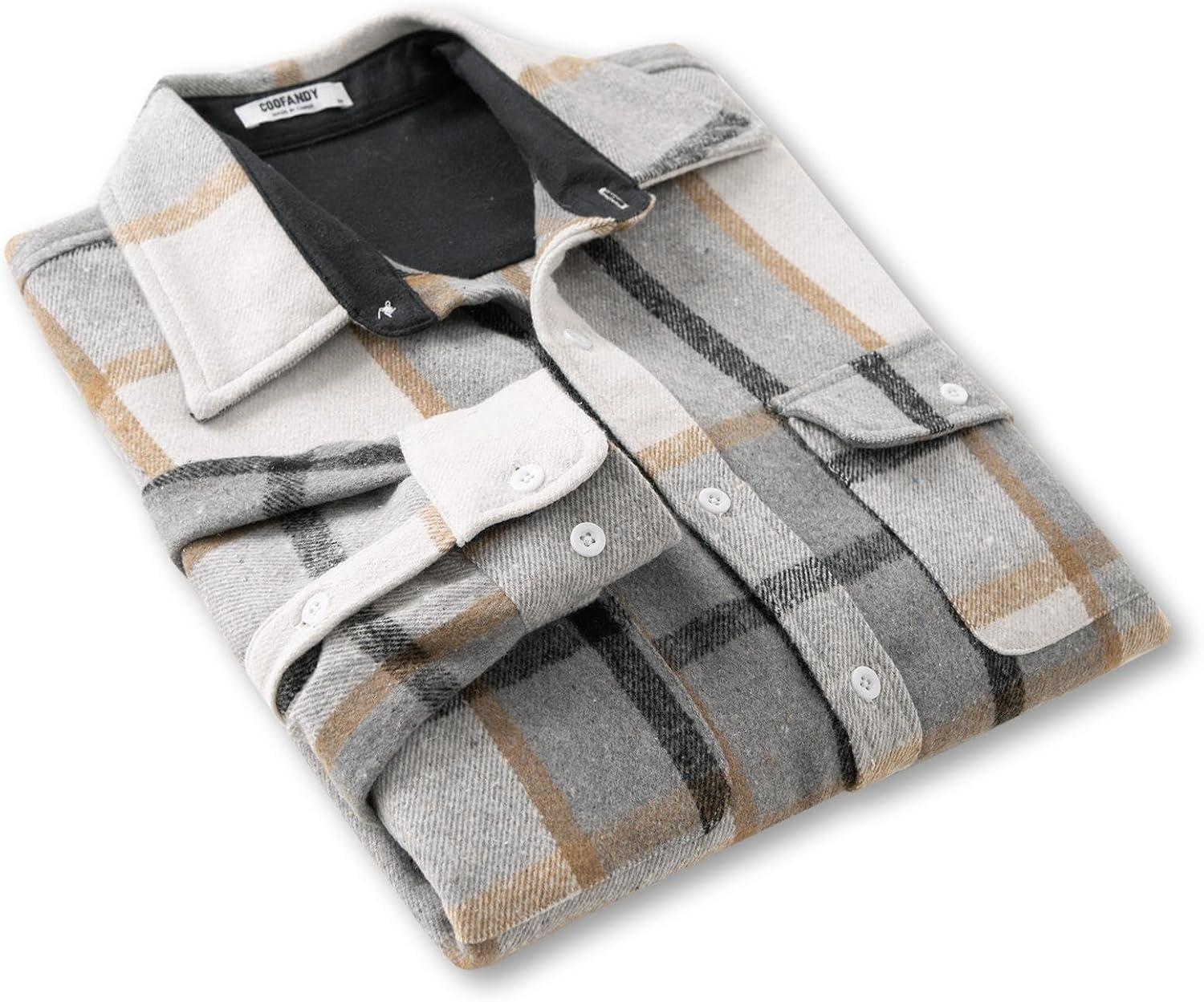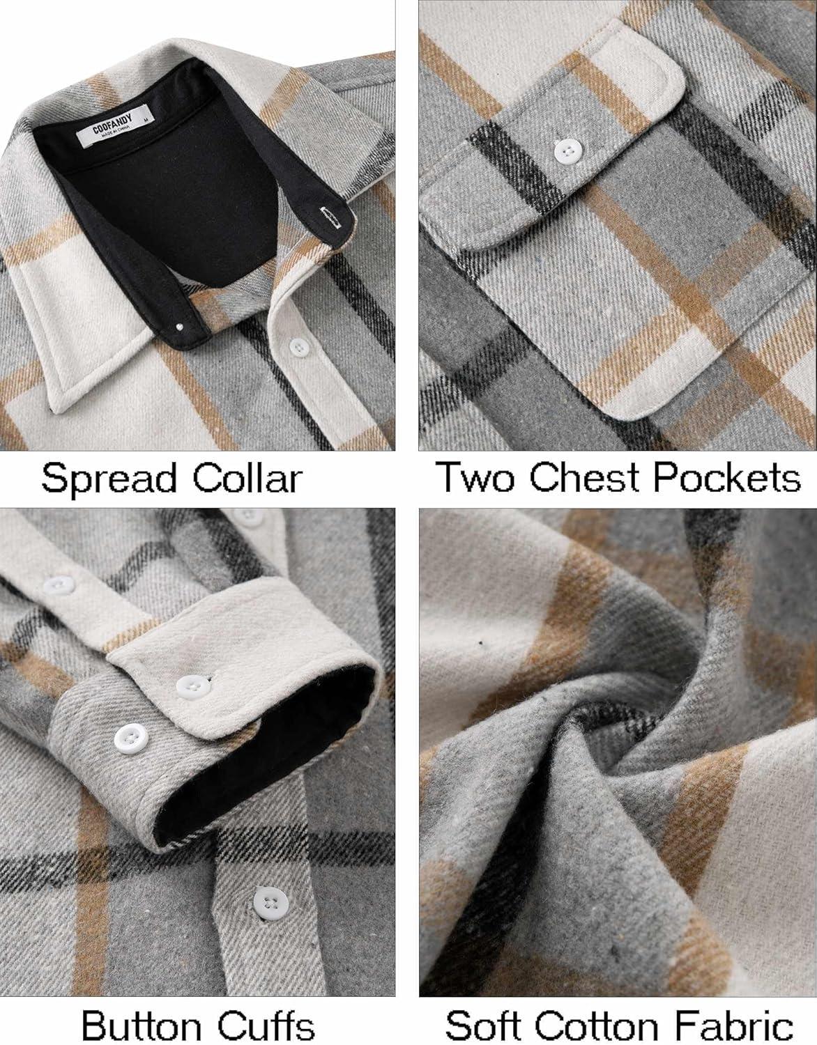 COOFANDY Men’s Flannel Shirts Long Sleeve Cotton Plaid Shirt Jacket Casual Button Down Shirt with Pockets(Light Grey)