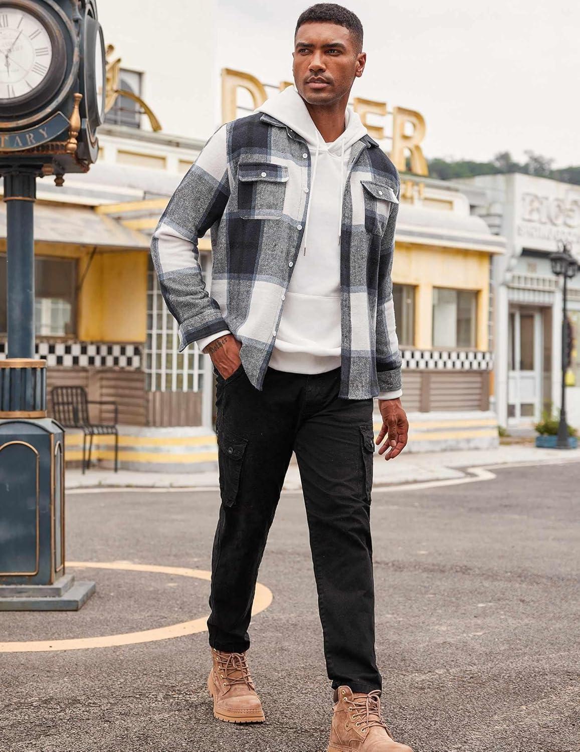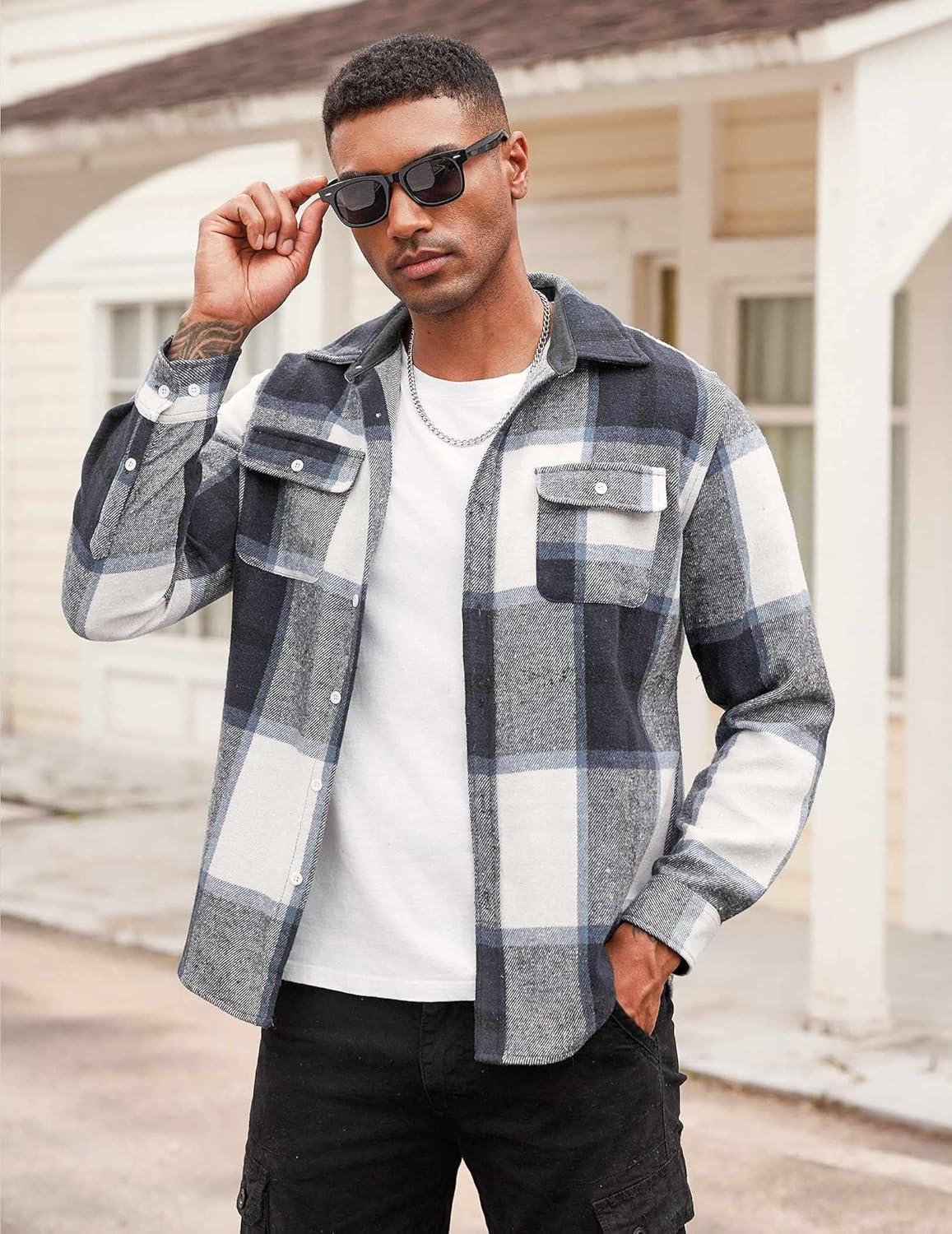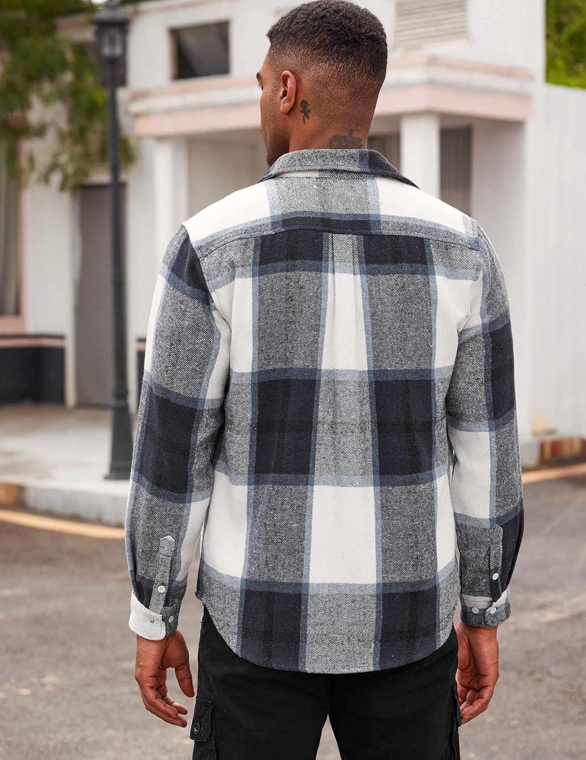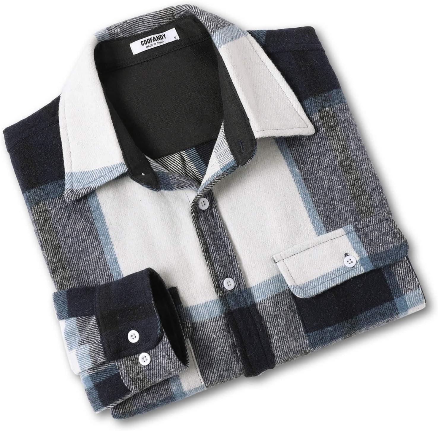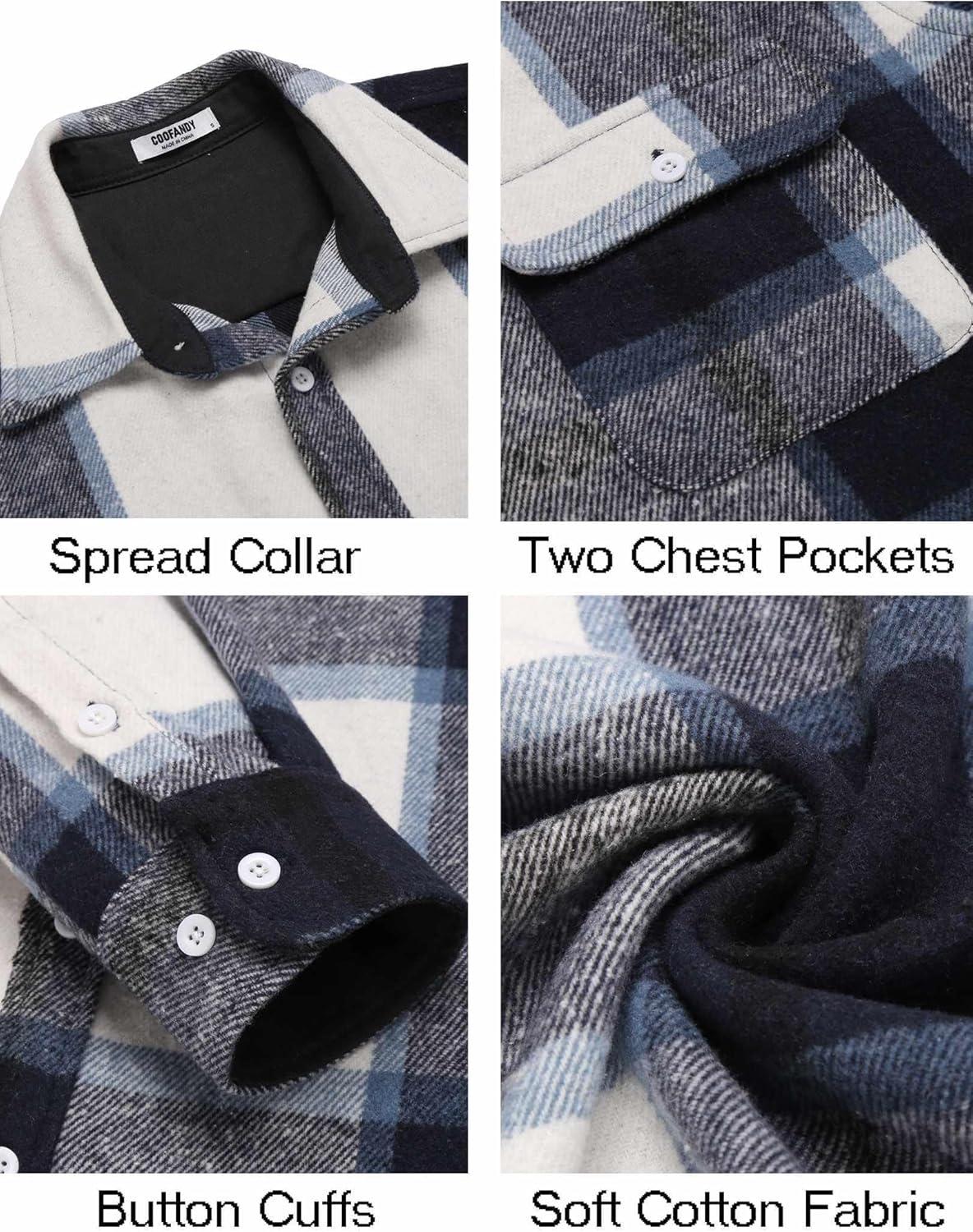 COOFANDY Men’s Flannel Shirts Long Sleeve Cotton Plaid Shirt Jacket Casual Button Down Shirt with Pockets(Navy Blue)