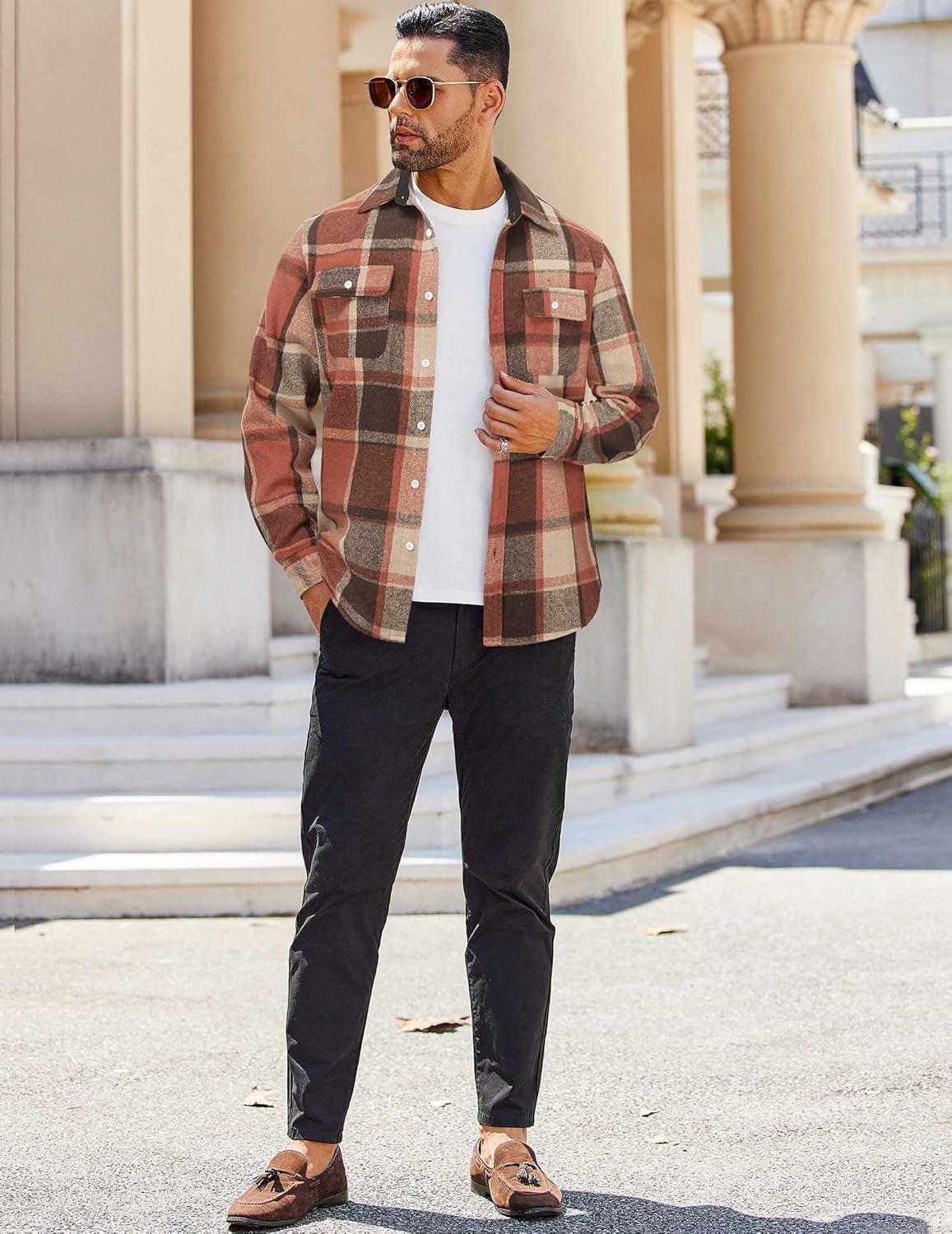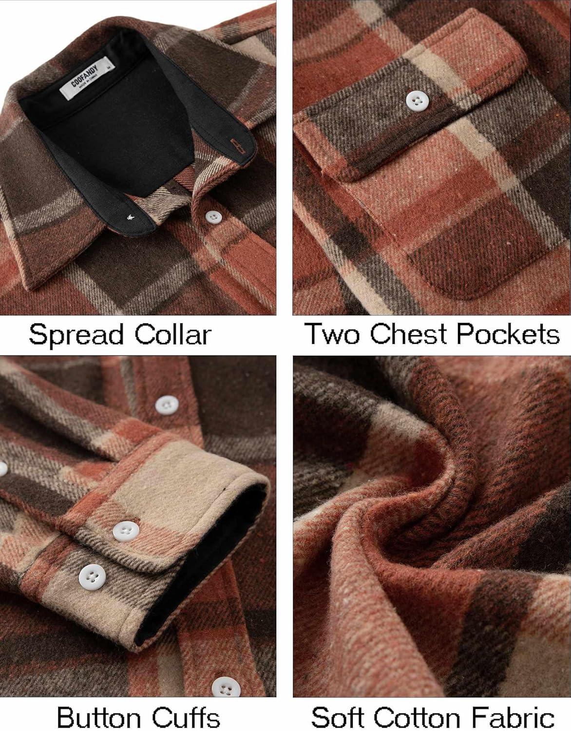 COOFANDY Men’s Flannel Shirts Long Sleeve Cotton Plaid Shirt Jacket Casual Button Down Shirt with Pockets(Orange Red)