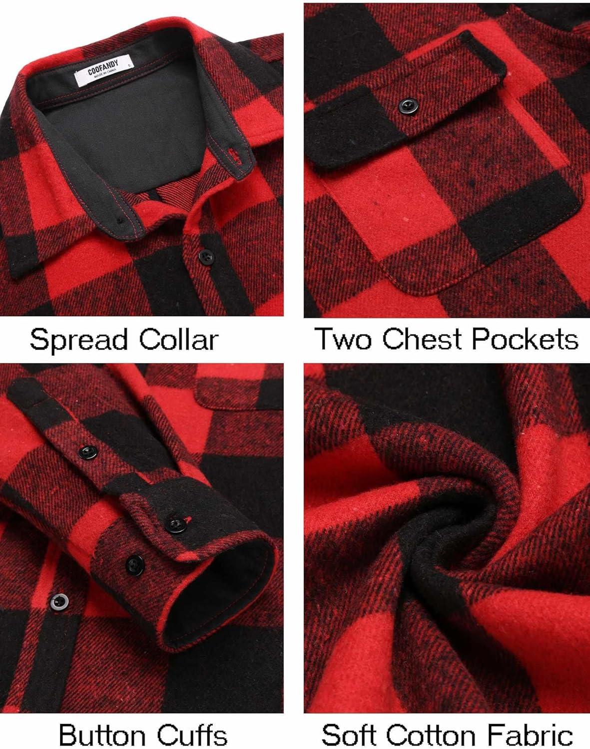 COOFANDY Men’s Flannel Shirts Long Sleeve Cotton Plaid Shirt Jacket Casual Button Down Shirt with Pockets(Wine Red)