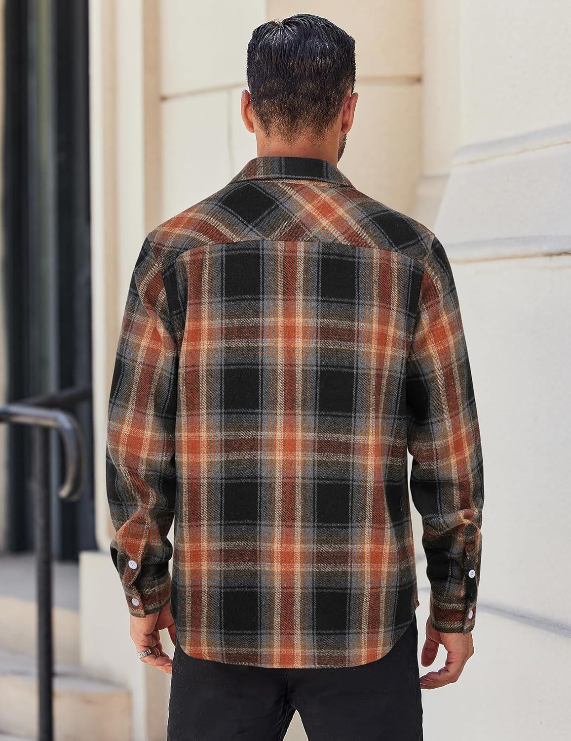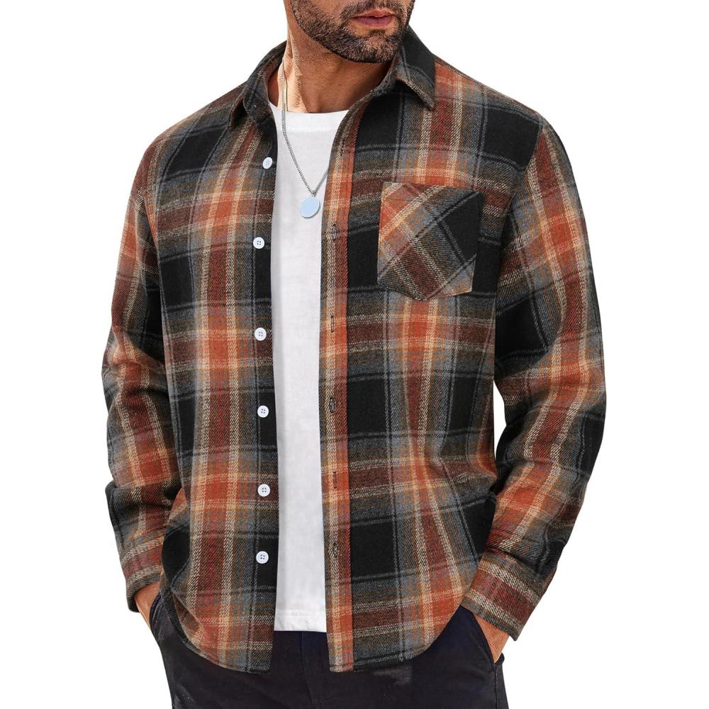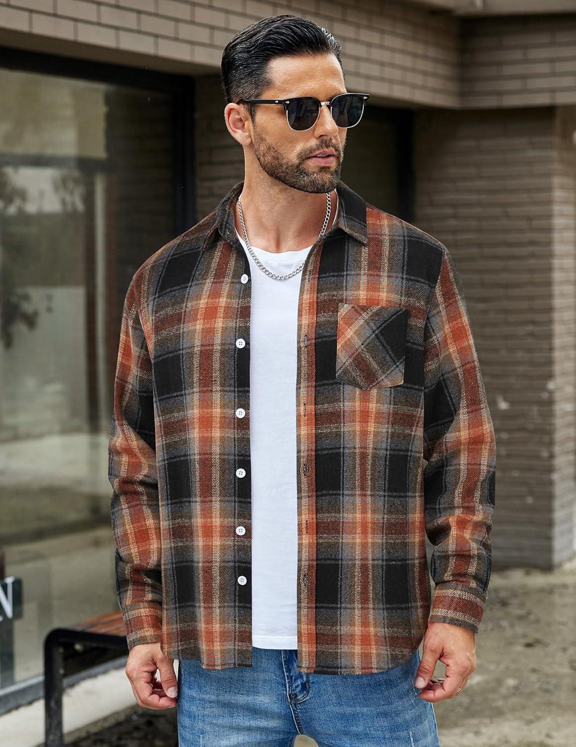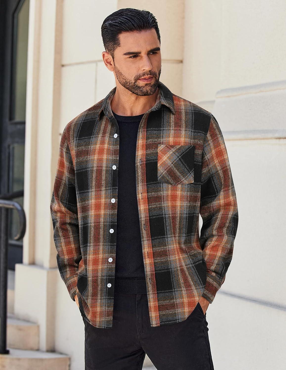 COOFANDY Mens Flannel Shirts Long Sleeve Lightweight Plaid Shirt Casual Button Down Shirts Jacket(Black Orange)