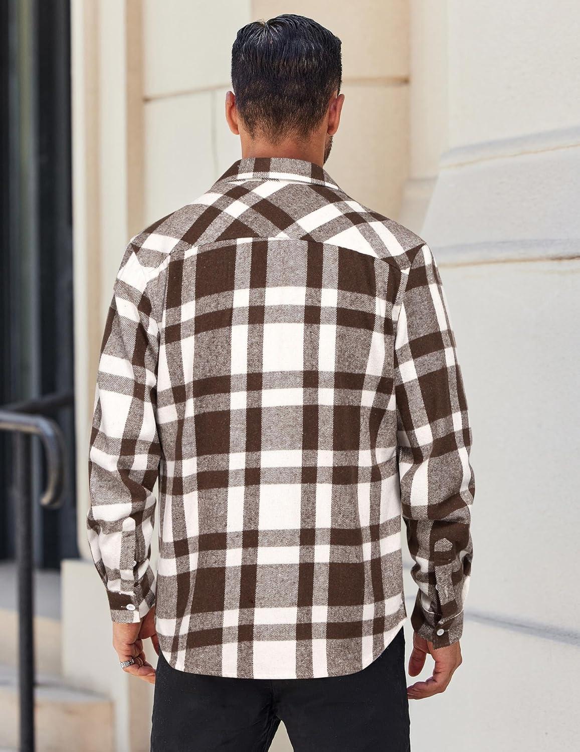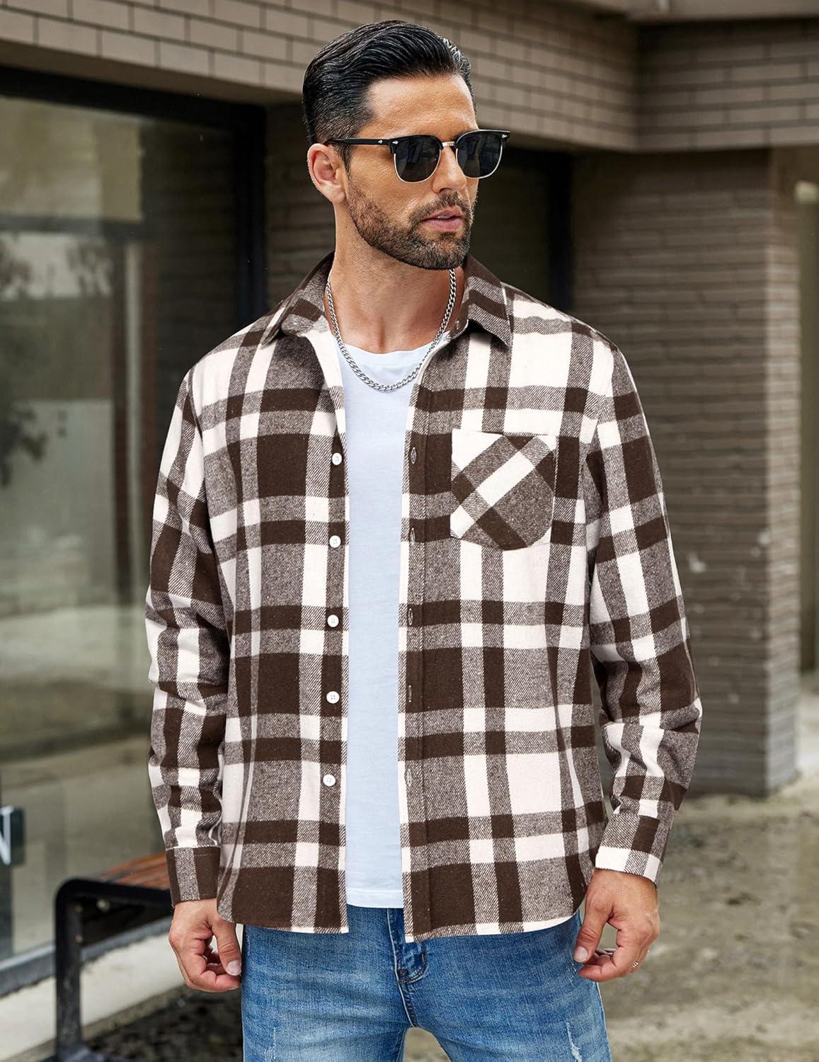 COOFANDY Mens Flannel Shirts Long Sleeve Lightweight Plaid Shirt Casual Button Down Shirts Jacket(Brown)