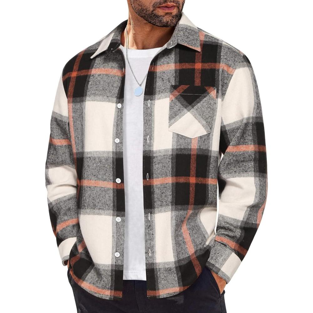 COOFANDY Mens Flannel Shirts Long Sleeve Lightweight Plaid Shirt Casual Button Down Shirts Jacket(Grey)
