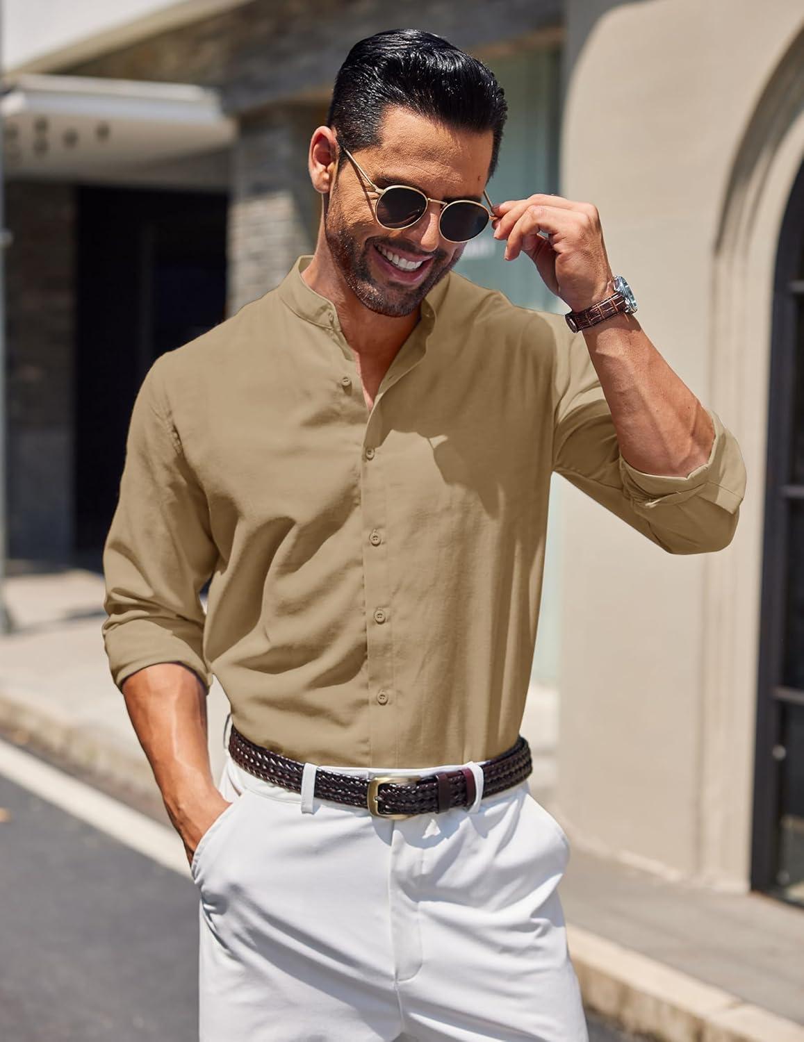 COOFANDY Mens Flannel Shirts Long Sleeve Lightweight Plaid Shirt Casual Button Down Shirts Jacket(Light Brown)