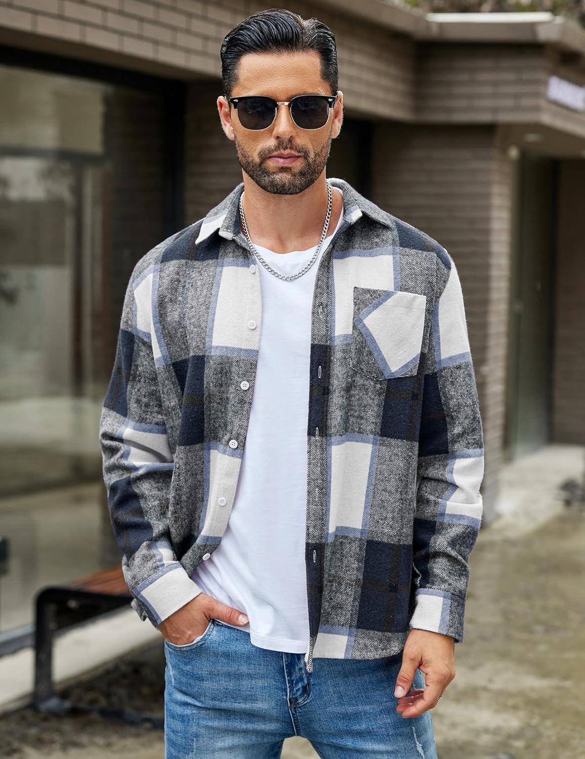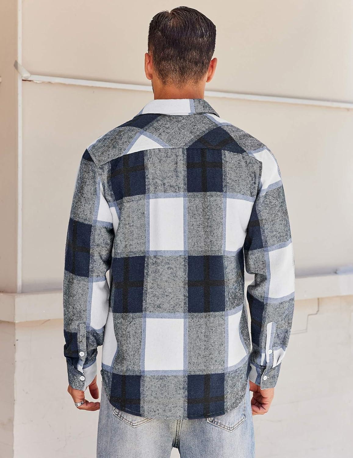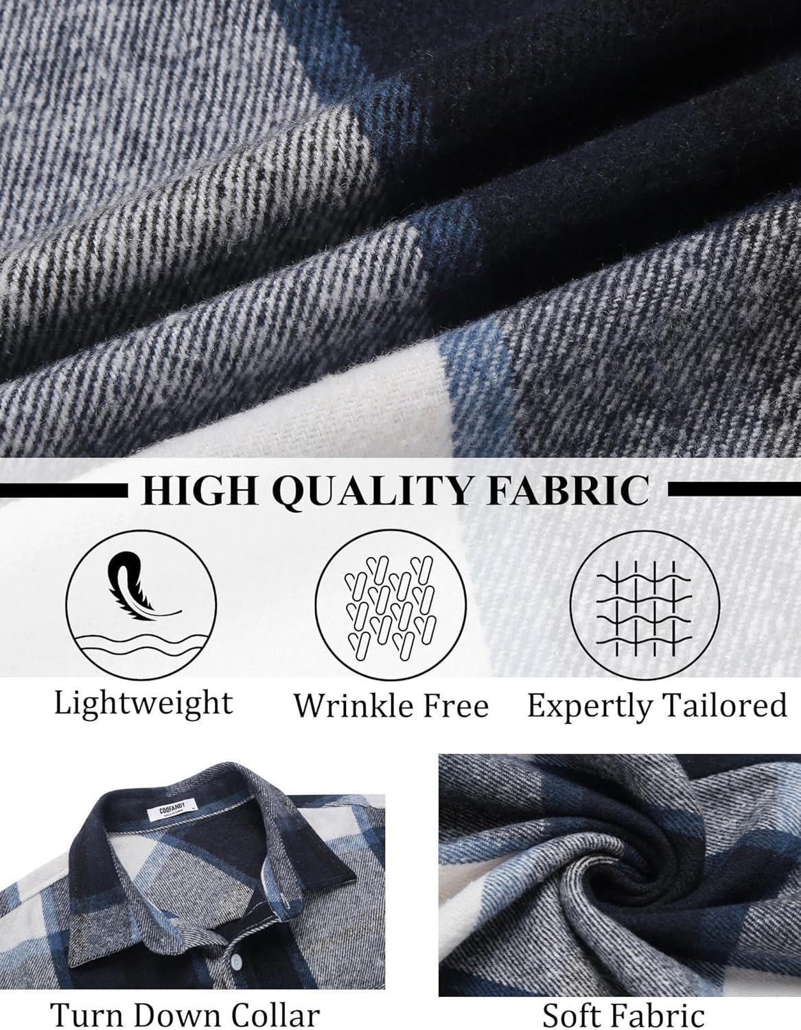 COOFANDY Mens Flannel Shirts Long Sleeve Lightweight Plaid Shirt Casual Button Down Shirts Jacket(Navy Blue)