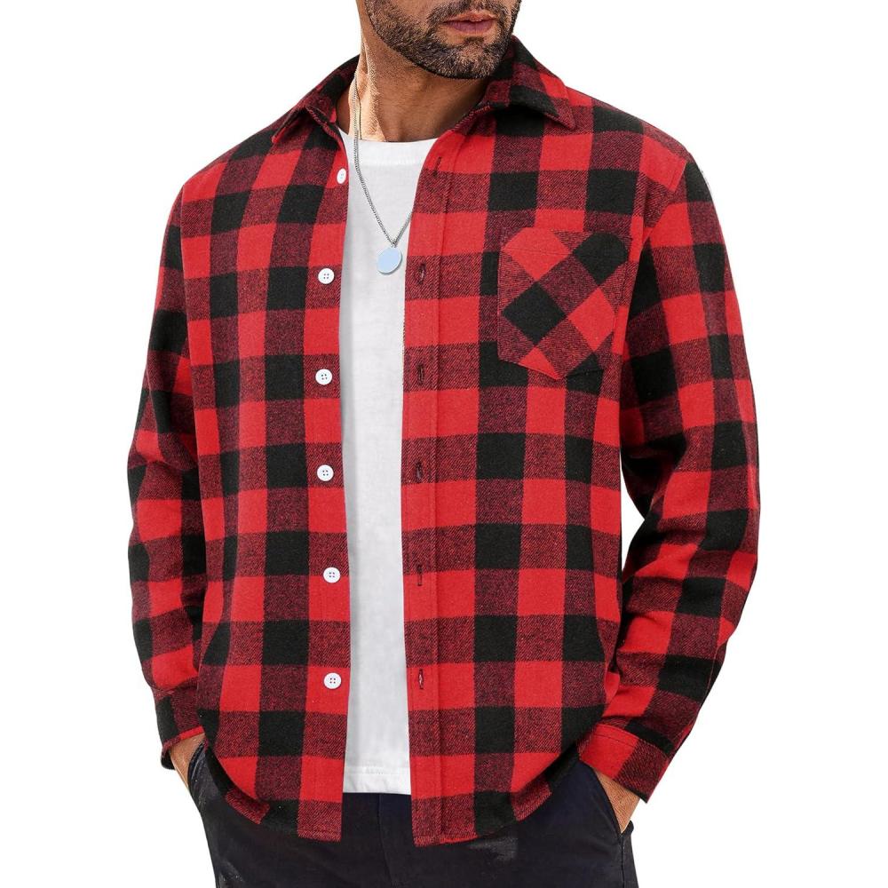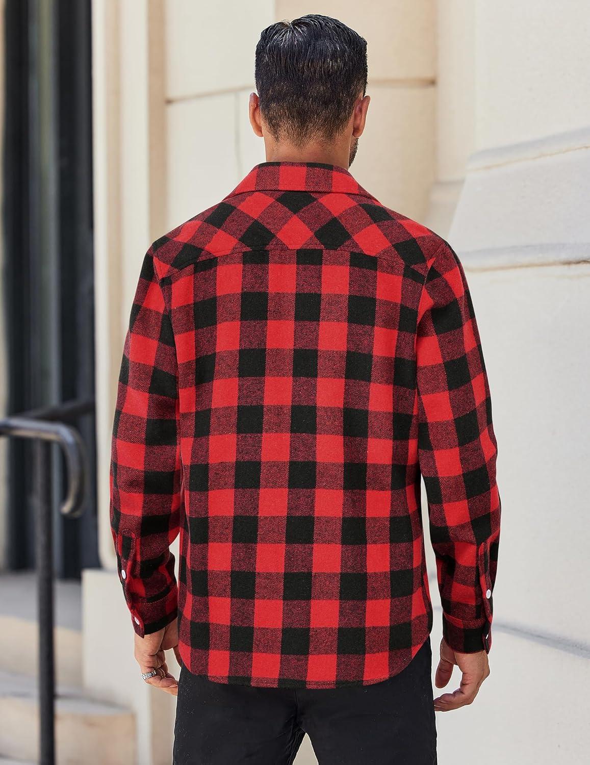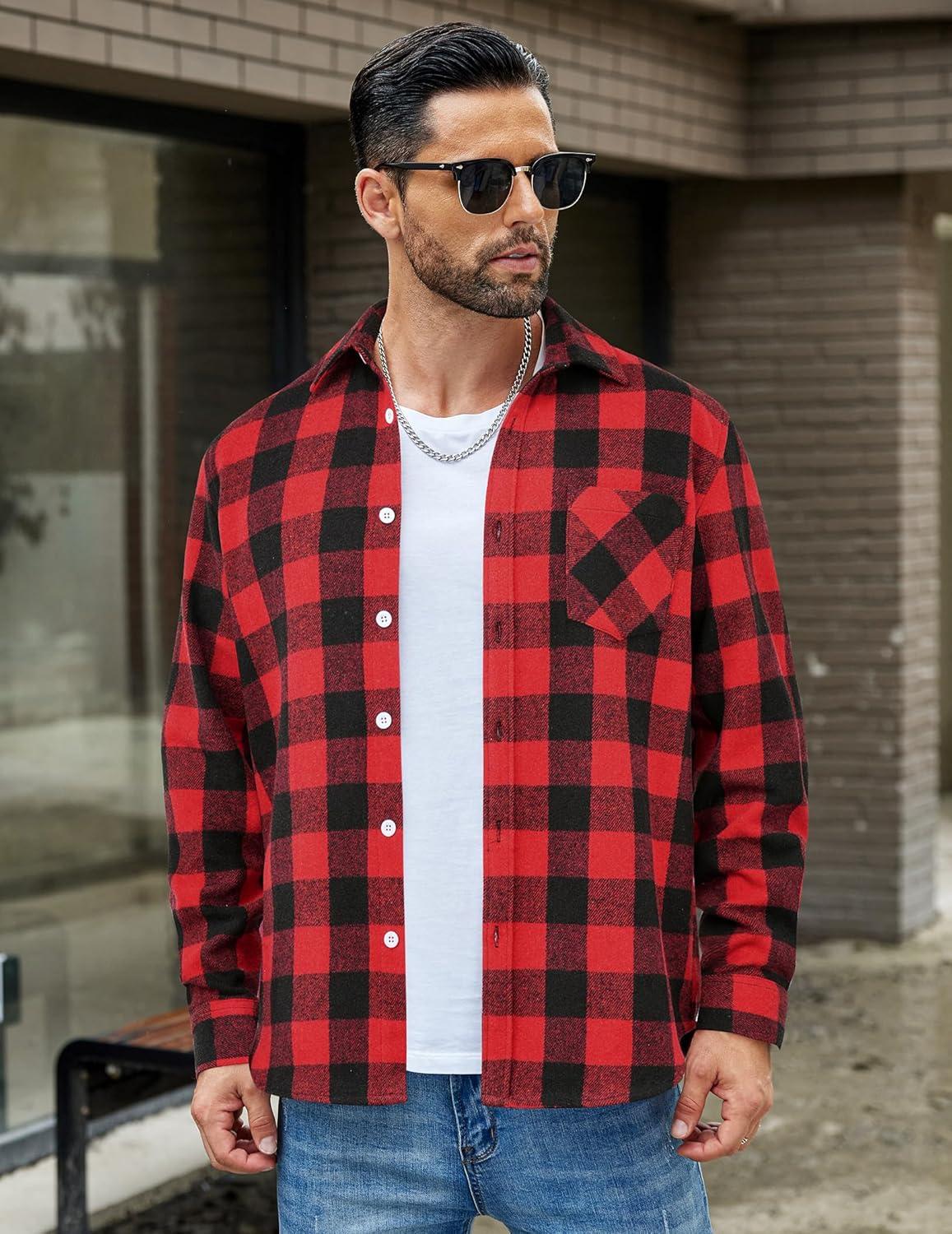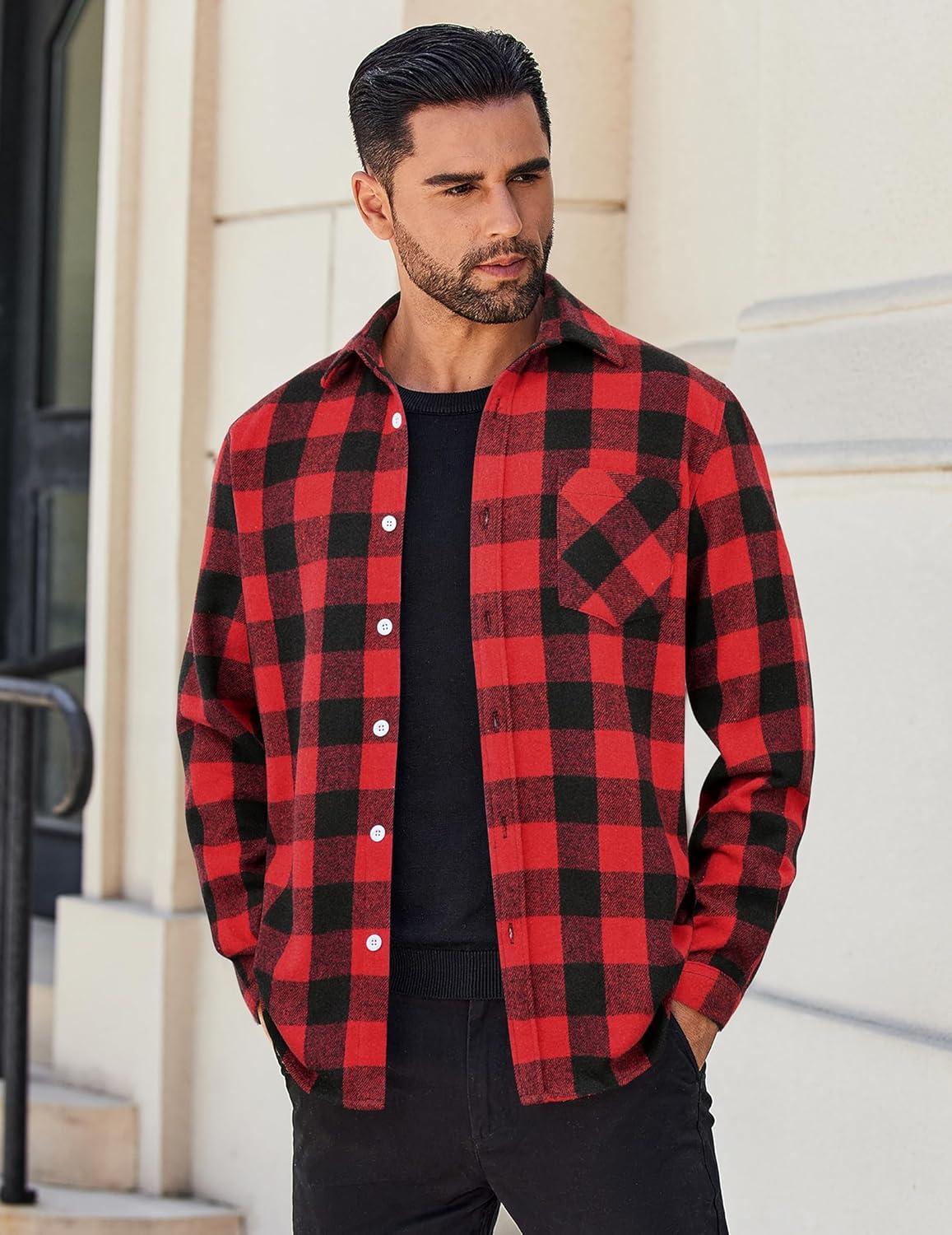 COOFANDY Mens Flannel Shirts Long Sleeve Lightweight Plaid Shirt Casual Button Down Shirts Jacket(Red Black)