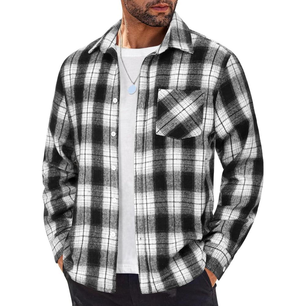 COOFANDY Mens Flannel Shirts Long Sleeve Lightweight Plaid Shirt Casual Button Down Shirts Jacket(White Black)