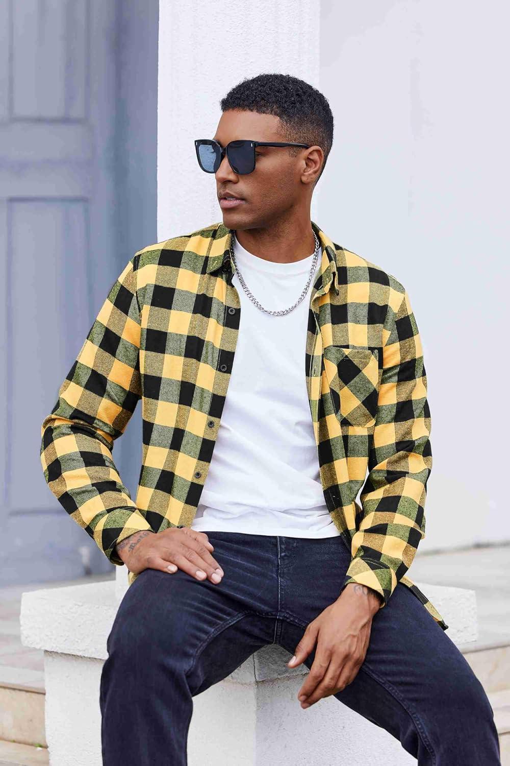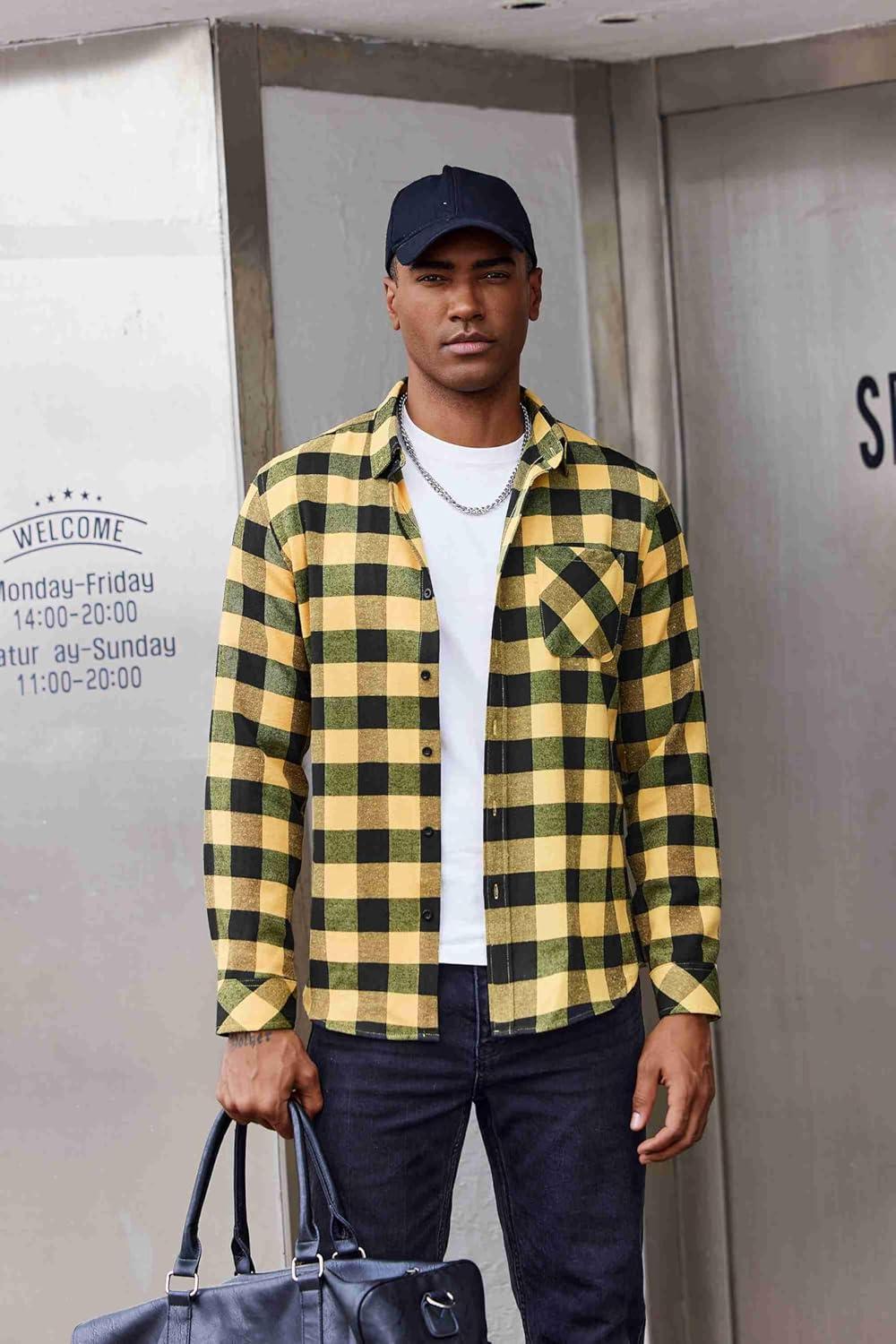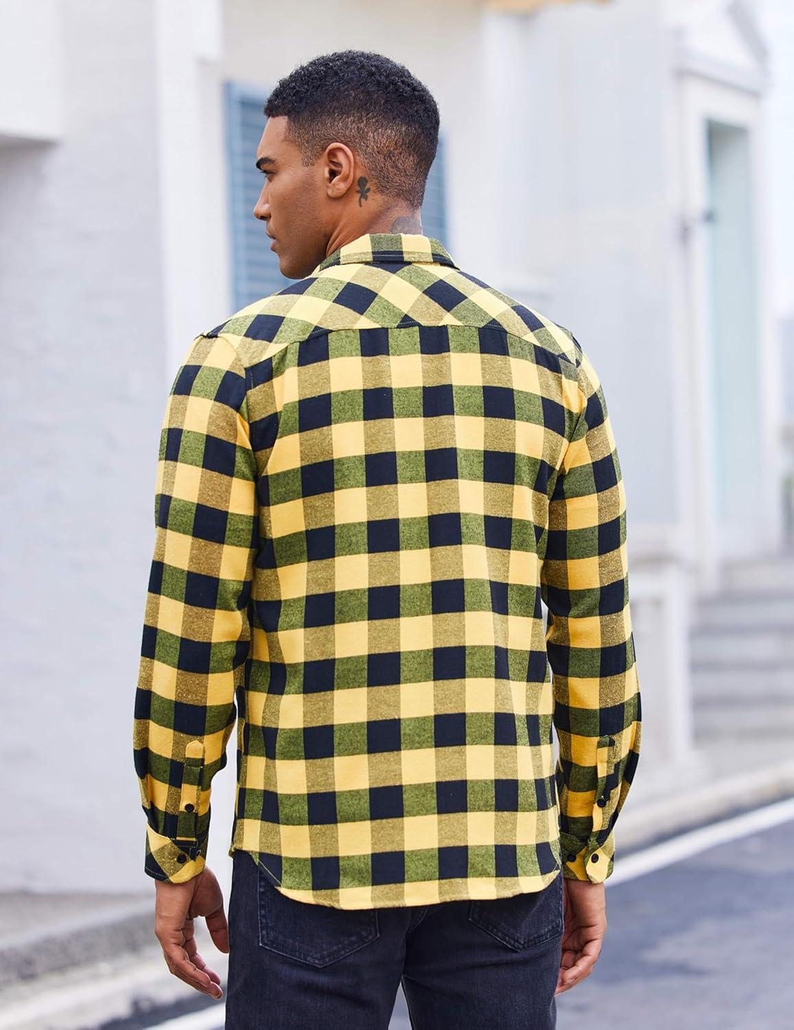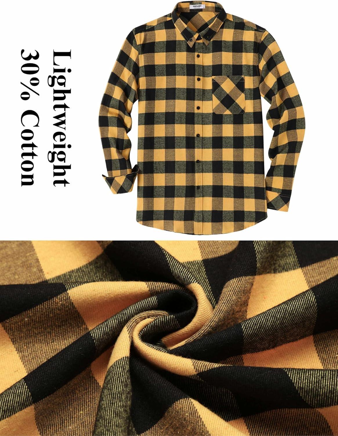 COOFANDY Mens Flannel Shirts Long Sleeve Plaid Button Down Shirt Casual Cotton Shirt with Pocket(Buffalo Yellow)