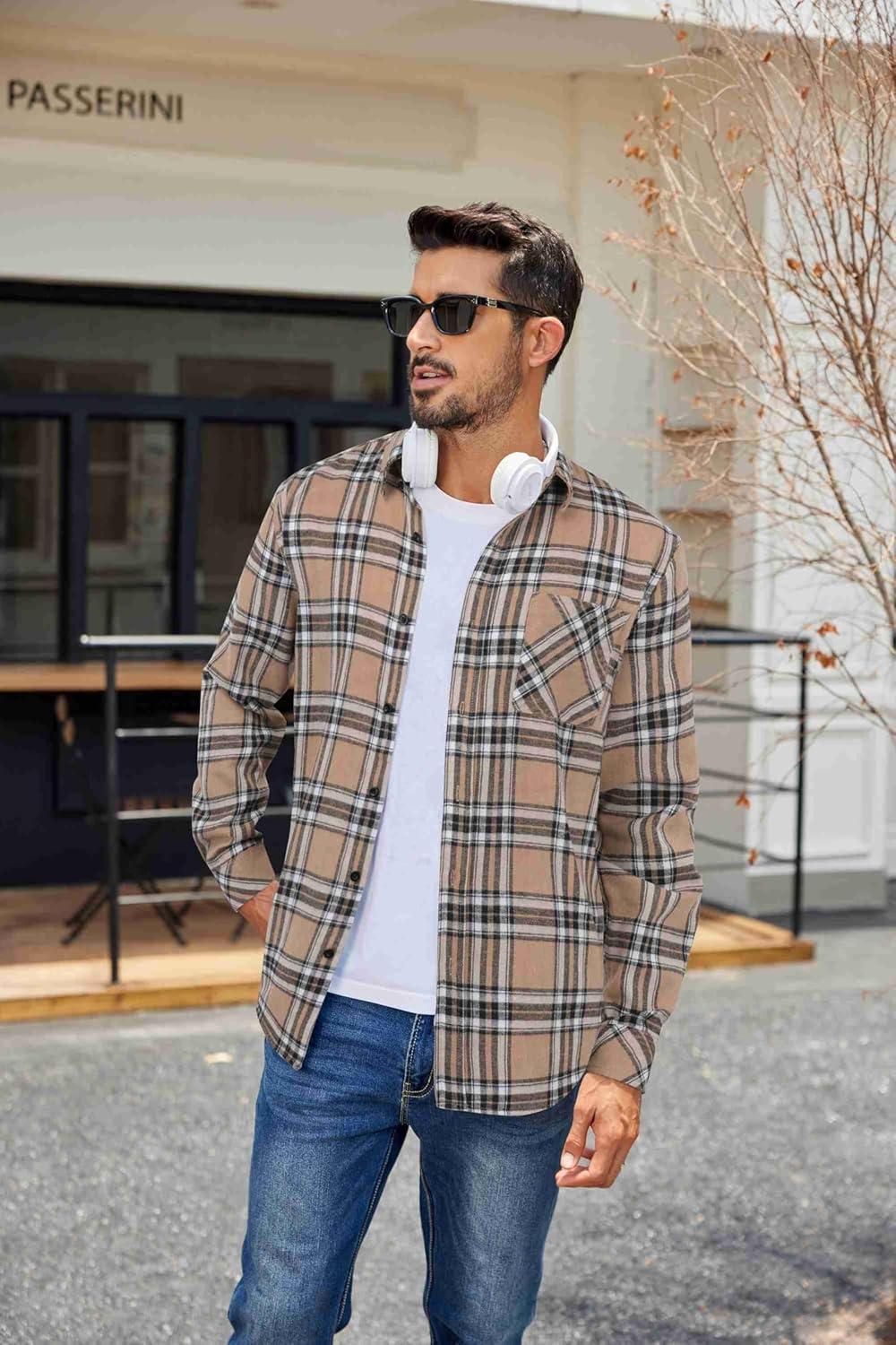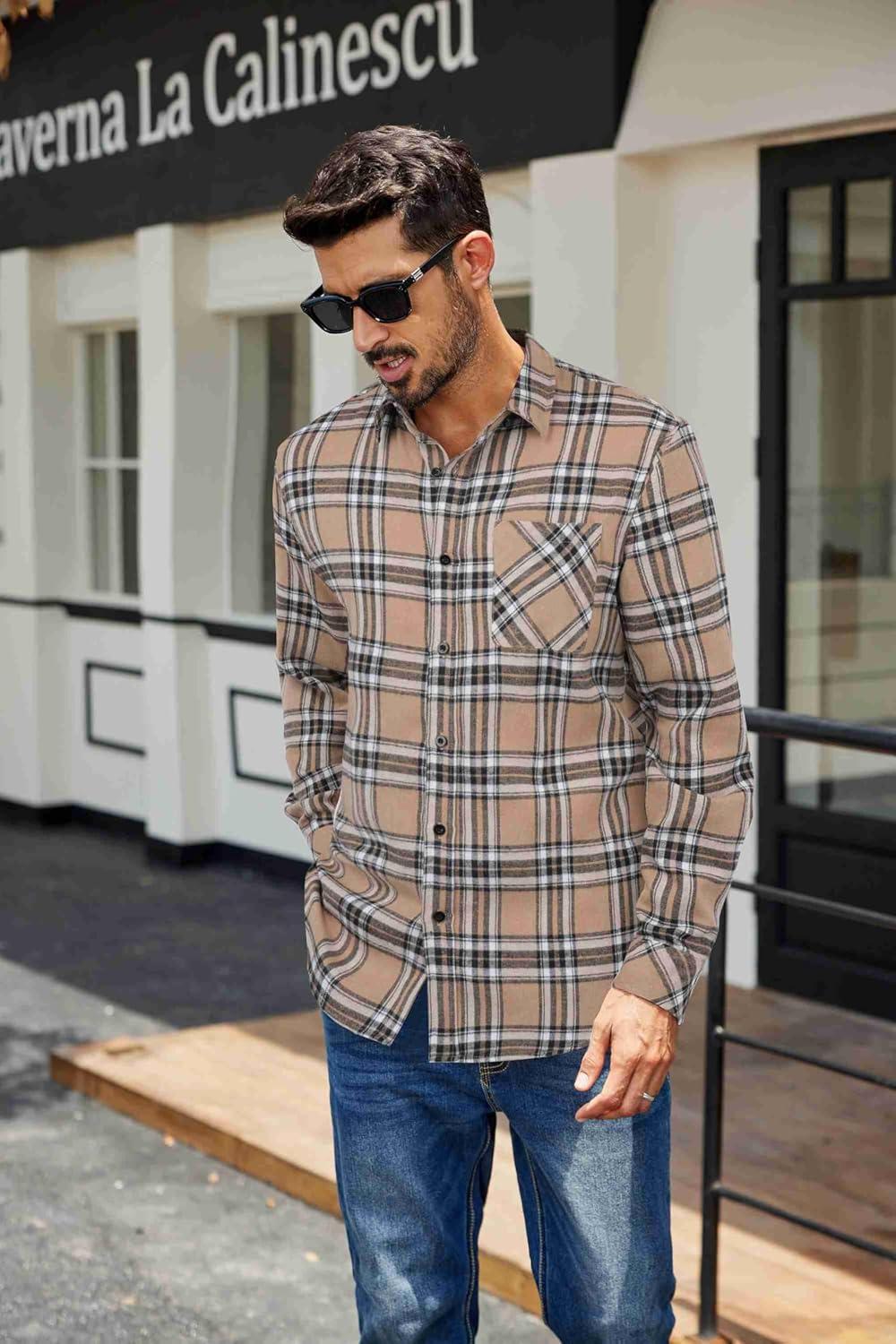 COOFANDY Mens Flannel Shirts Long Sleeve Plaid Button Down Shirt Casual Cotton Shirt with Pocket(Plaid Brown Black)