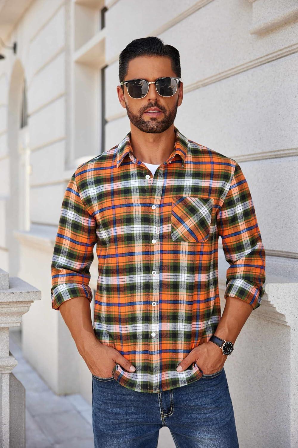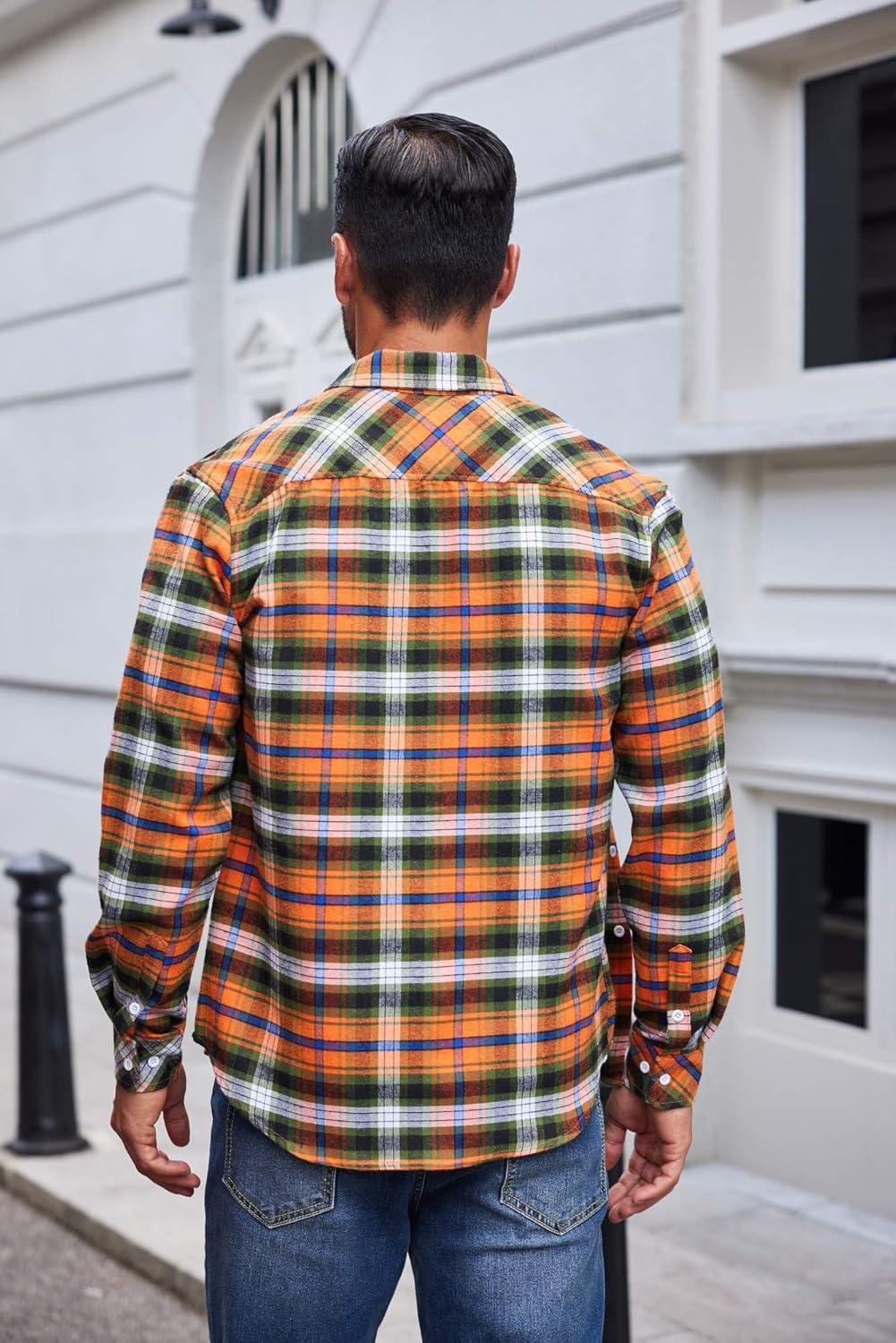 COOFANDY Mens Flannel Shirts Long Sleeve Plaid Button Down Shirt Casual Cotton Shirt with Pocket(Plaid Orange-green)