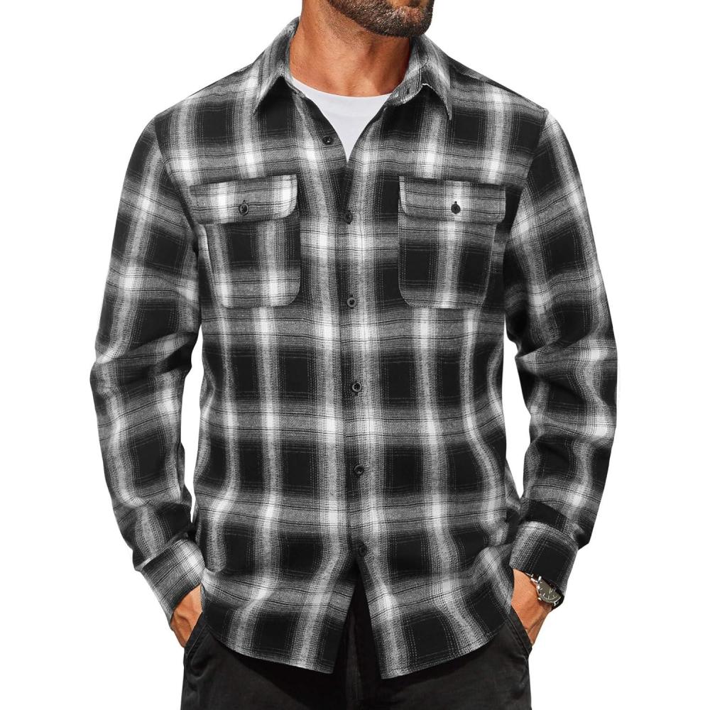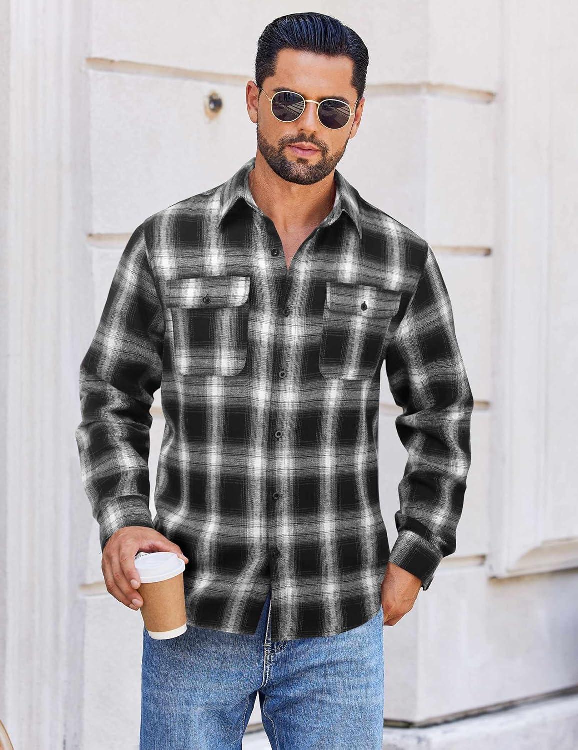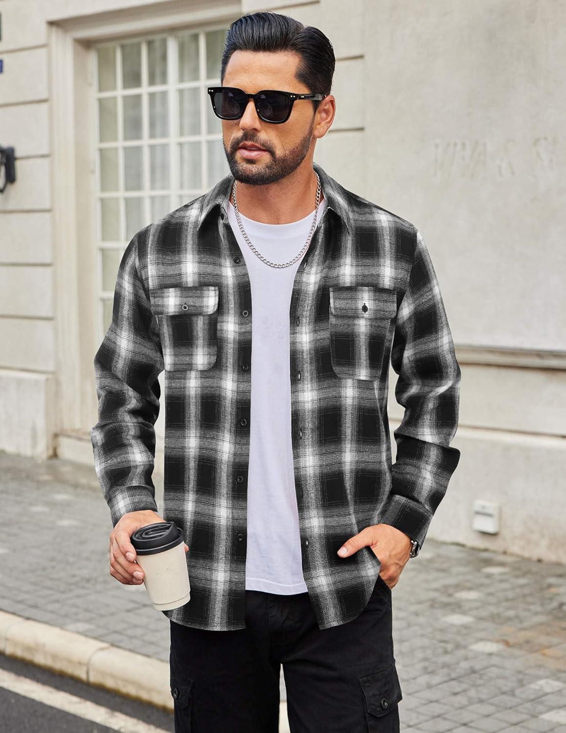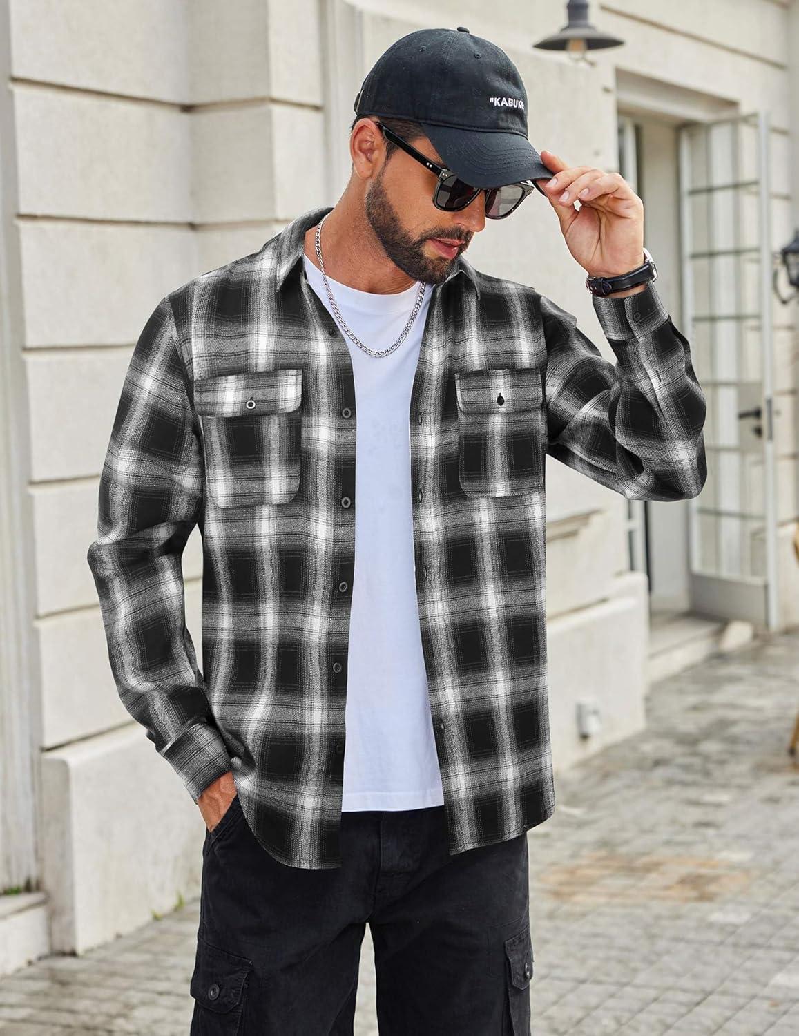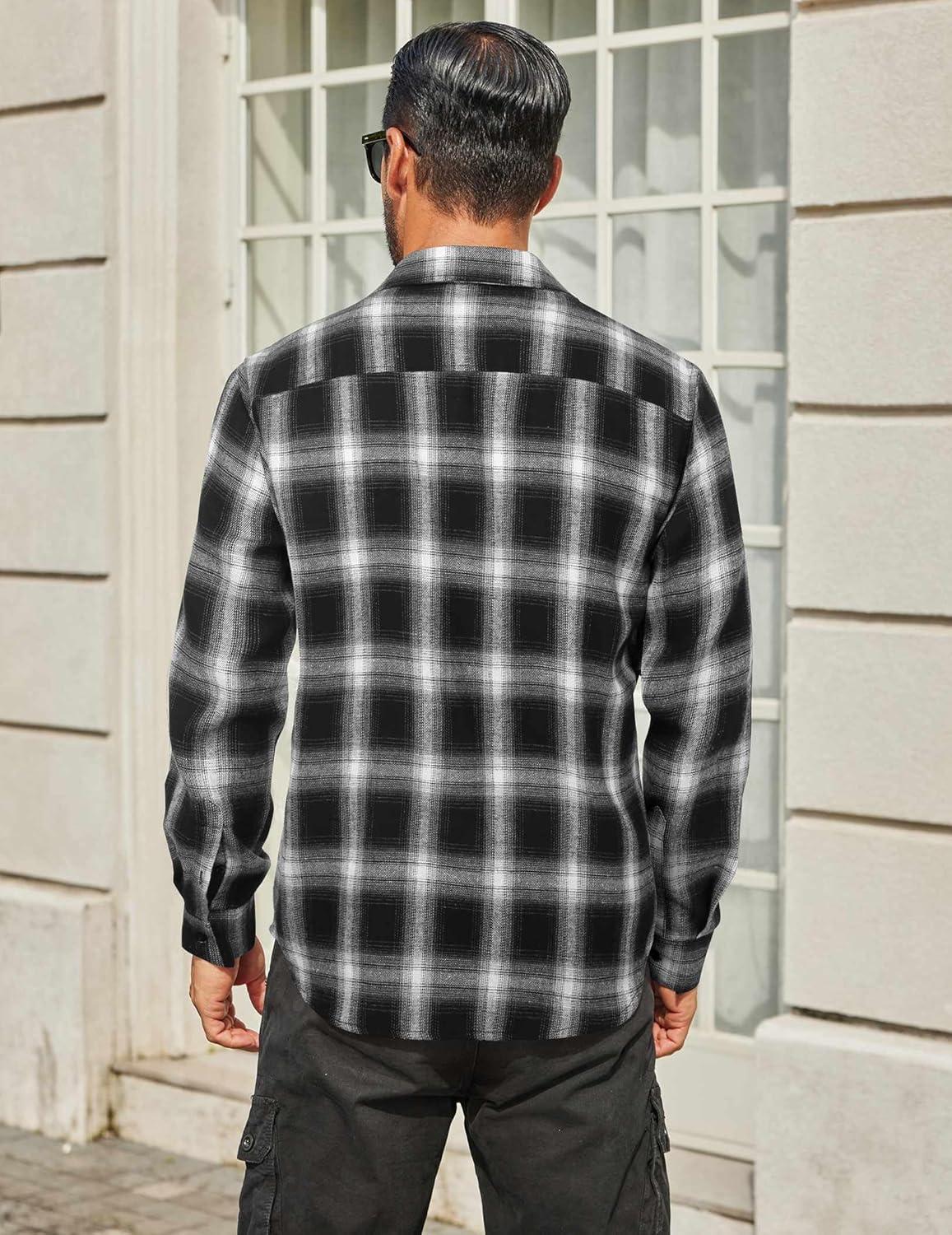 COOFANDY Mens Flannel Shirts Long Sleeve Plaid Button Down Shirt Cotton Casual Work Shirts with Pockets(Black White)