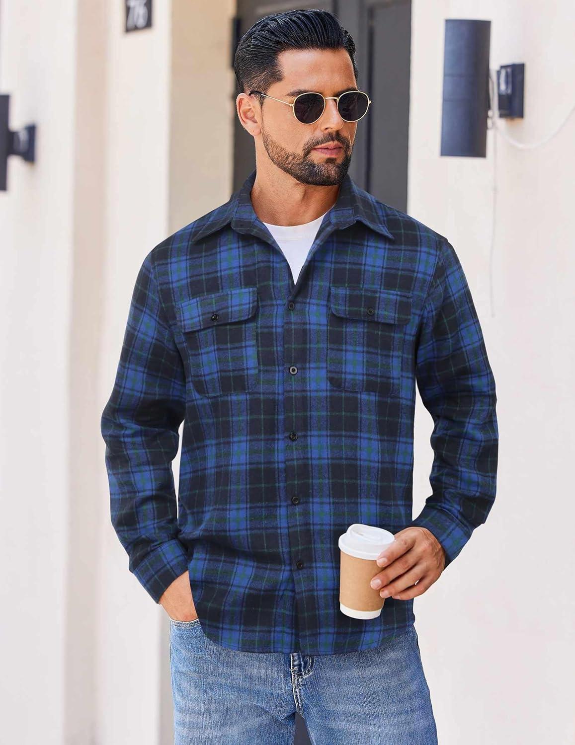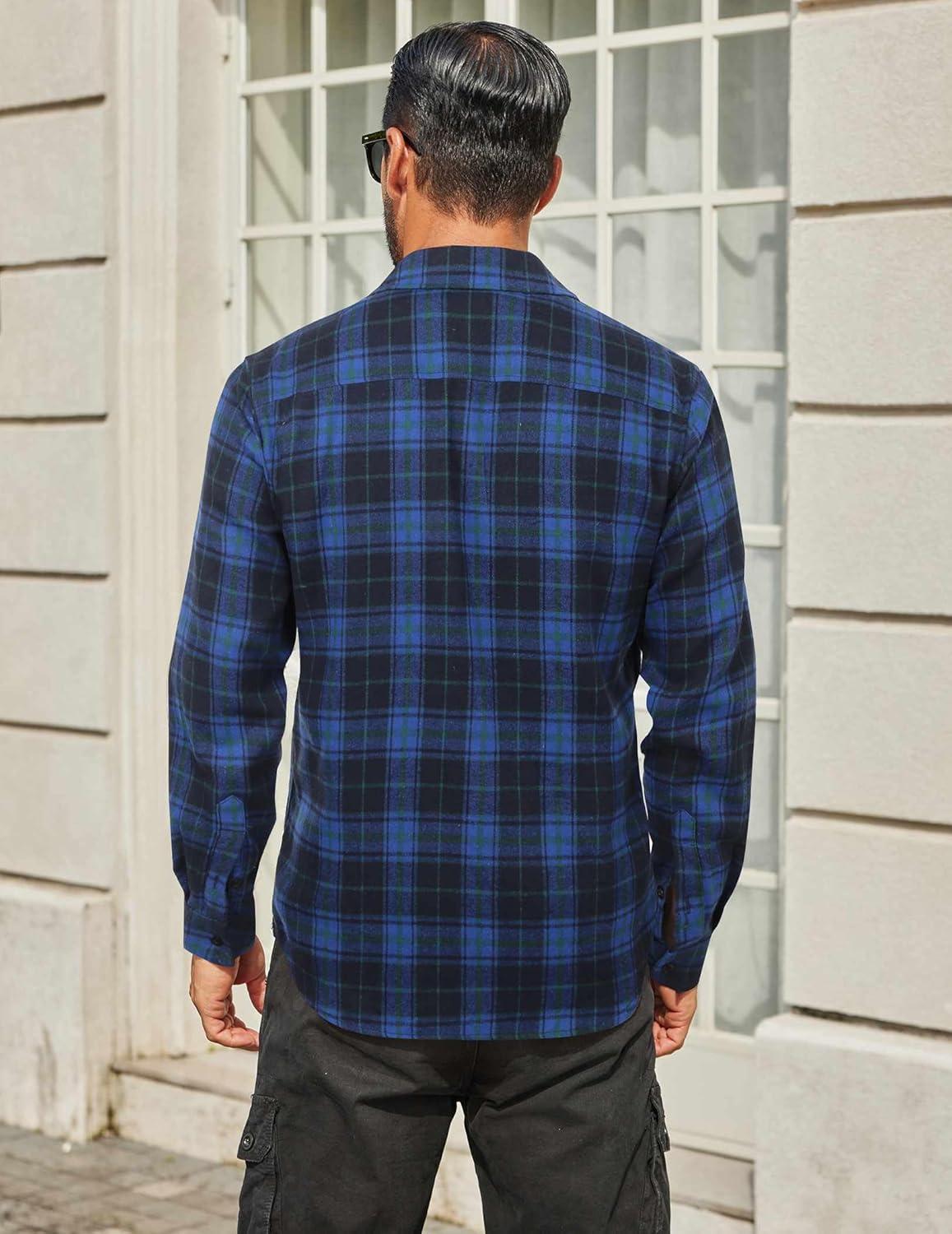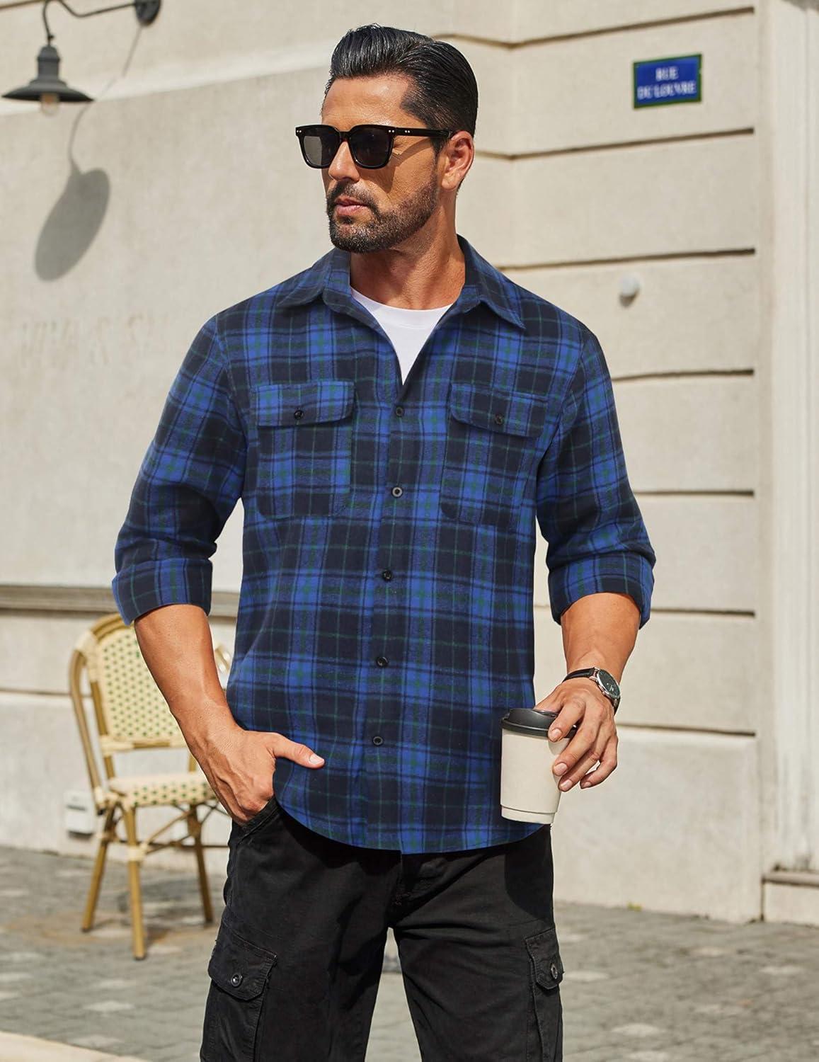 COOFANDY Mens Flannel Shirts Long Sleeve Plaid Button Down Shirt Cotton Casual Work Shirts with Pockets(Blue Black)