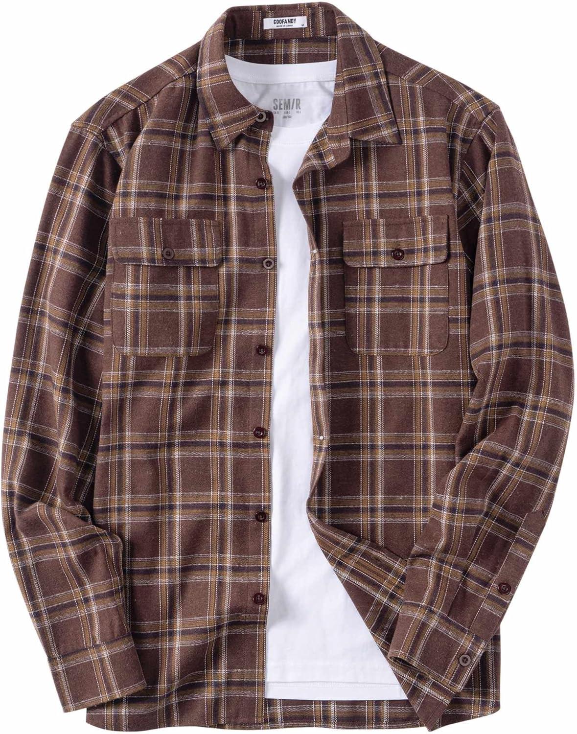 COOFANDY Mens Flannel Shirts Long Sleeve Plaid Button Down Shirt Cotton Casual Work Shirts with Pockets(Coffee)
