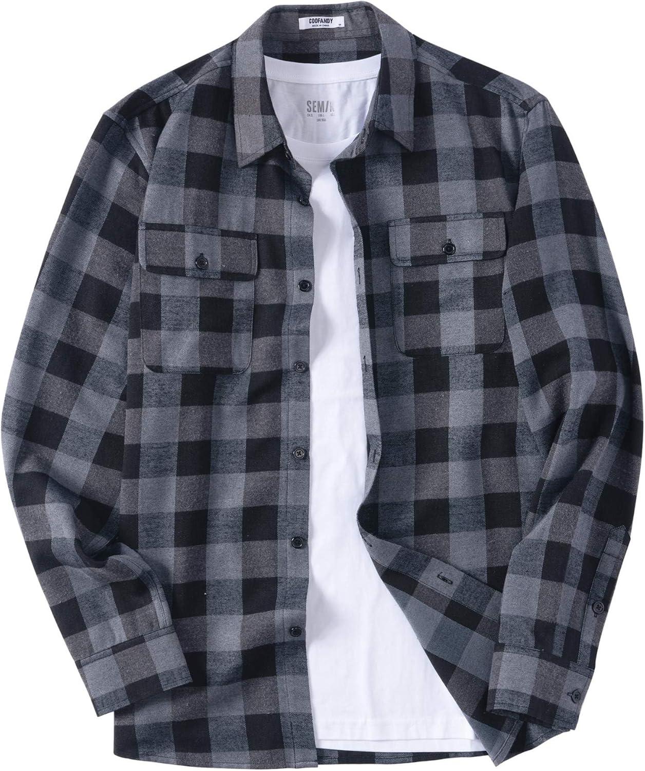 COOFANDY Mens Flannel Shirts Long Sleeve Plaid Button Down Shirt Cotton Casual Work Shirts with Pockets(Grey Black)