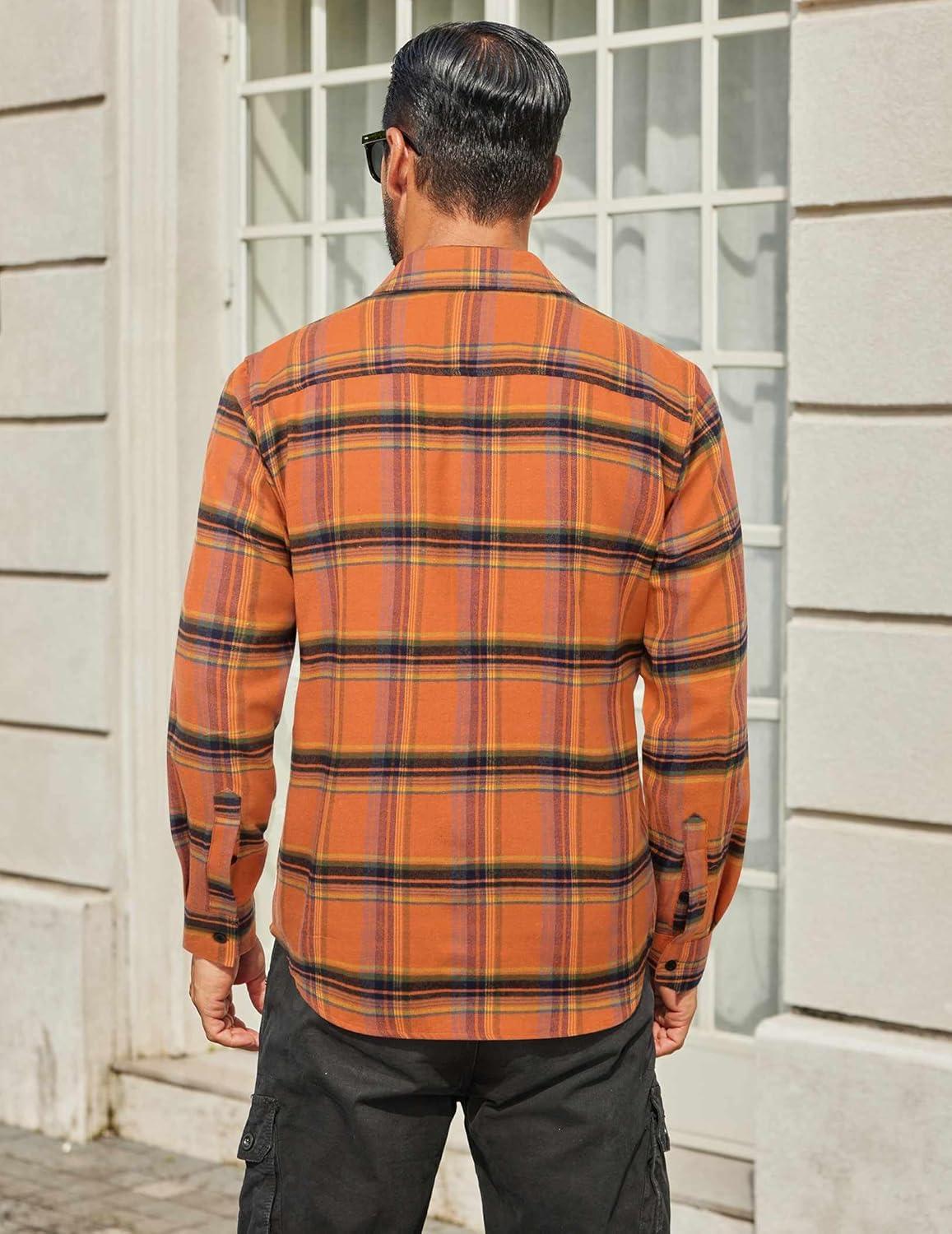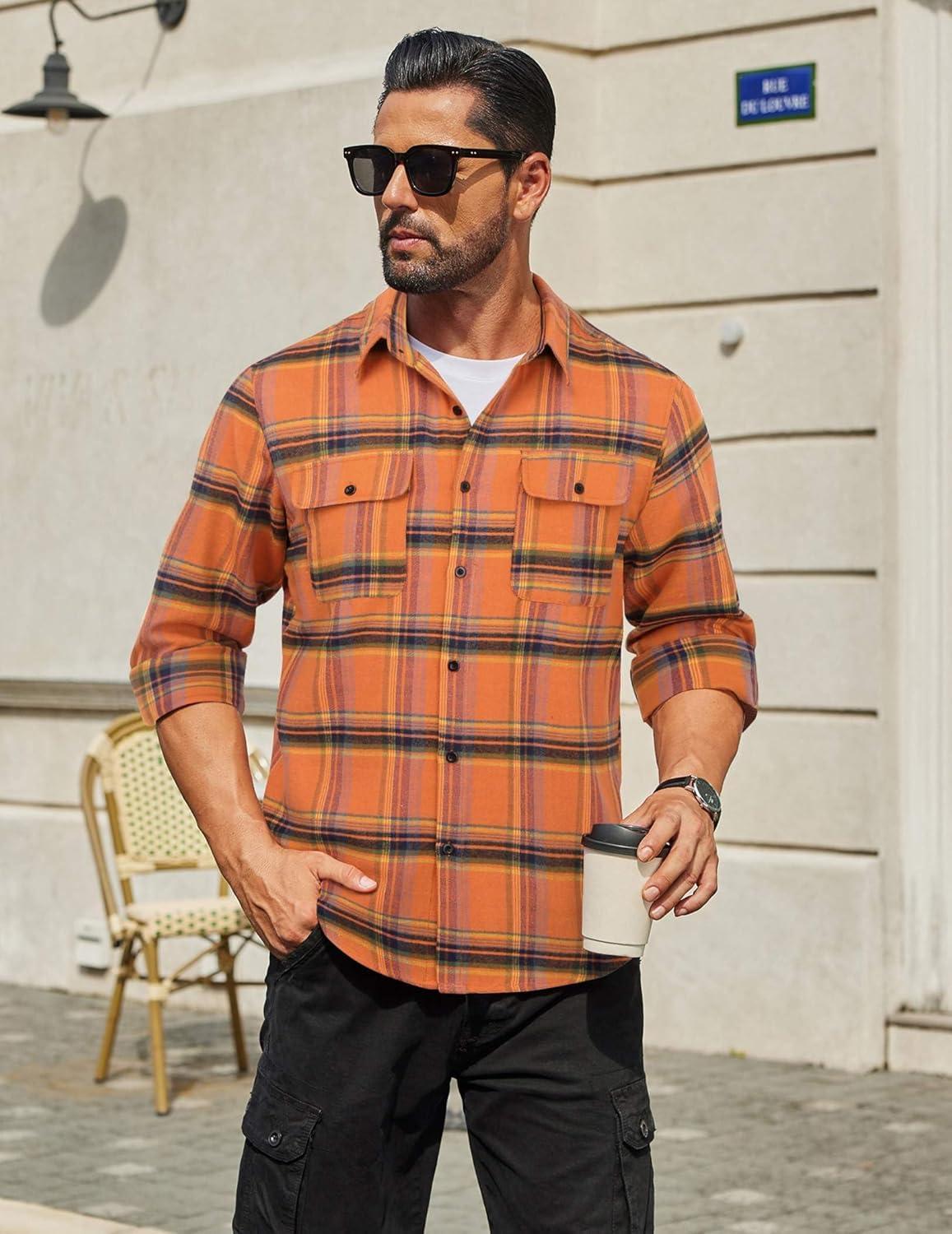 COOFANDY Mens Flannel Shirts Long Sleeve Plaid Button Down Shirt Cotton Casual Work Shirts with Pockets(Orange)