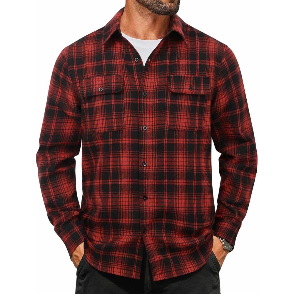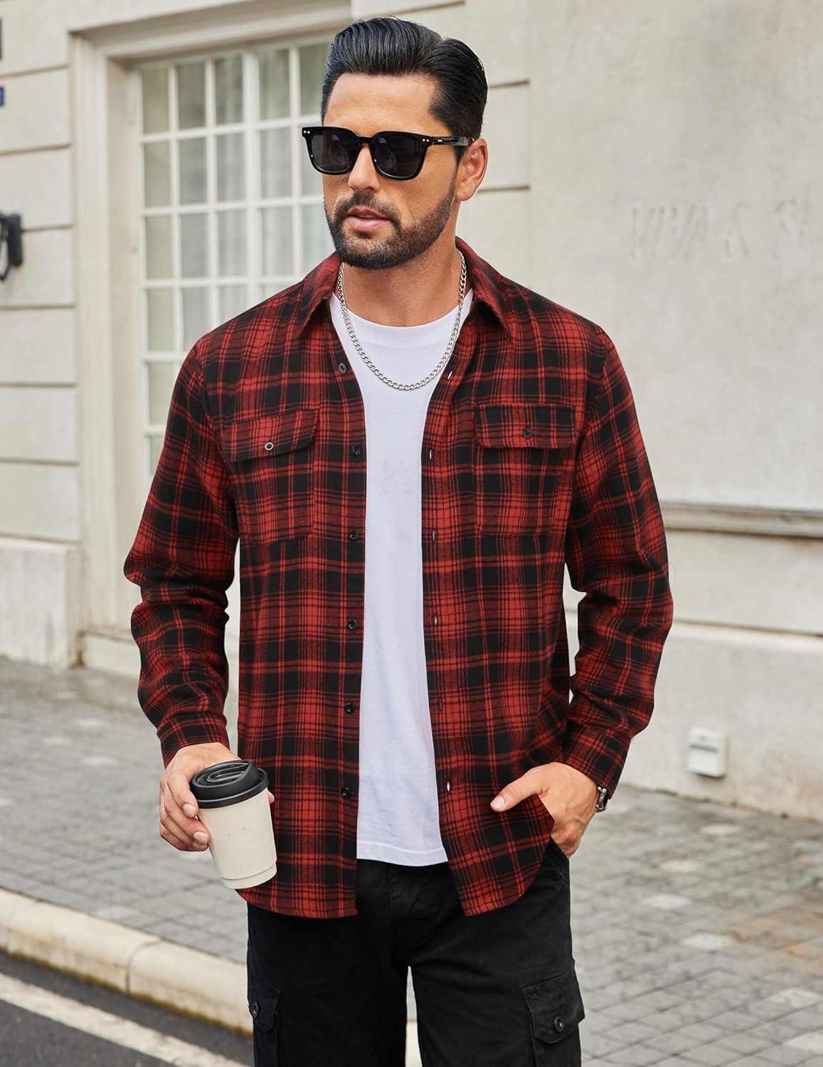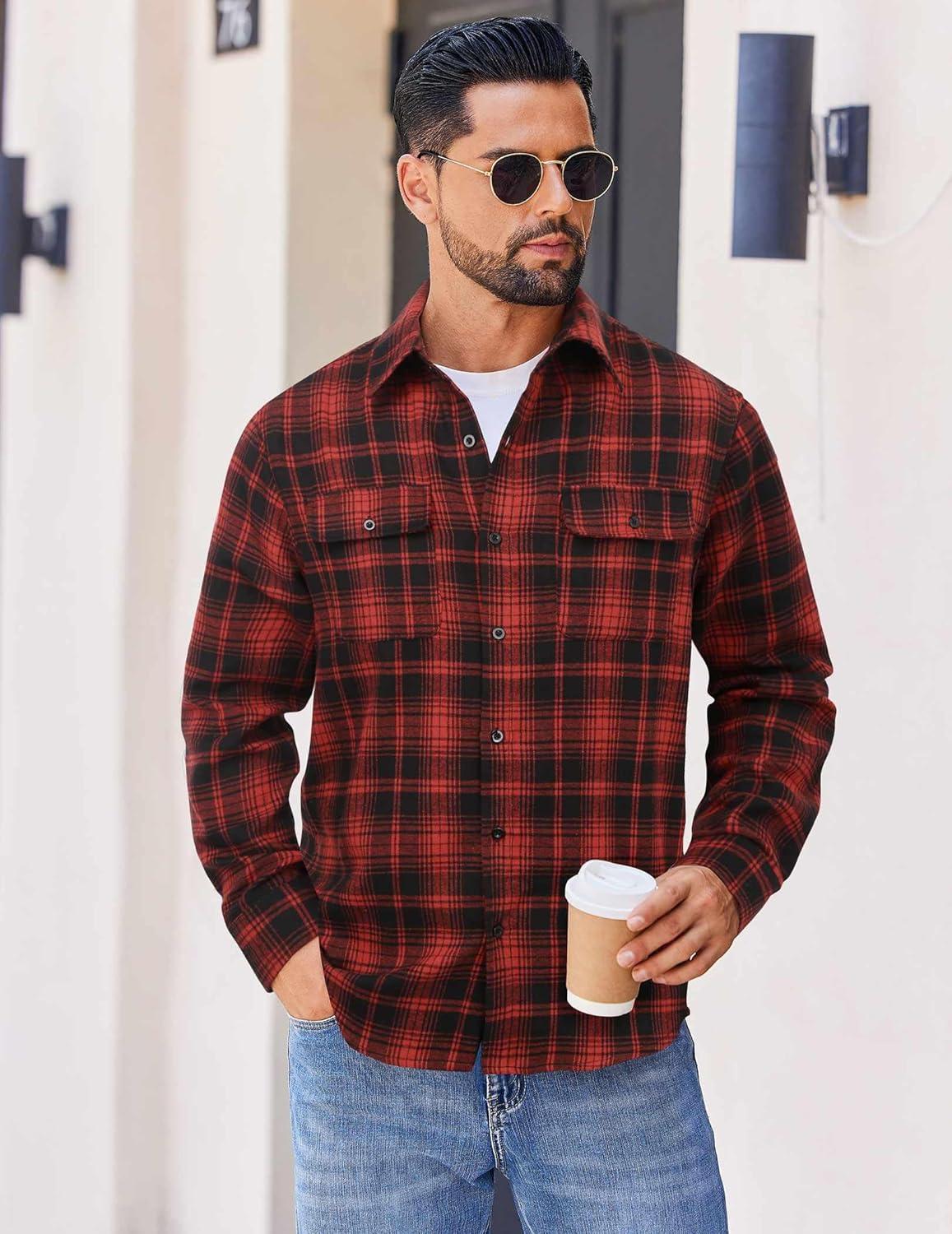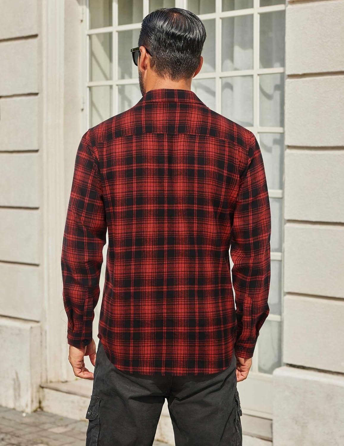 COOFANDY Mens Flannel Shirts Long Sleeve Plaid Button Down Shirt Cotton Casual Work Shirts with Pockets(Red Black)