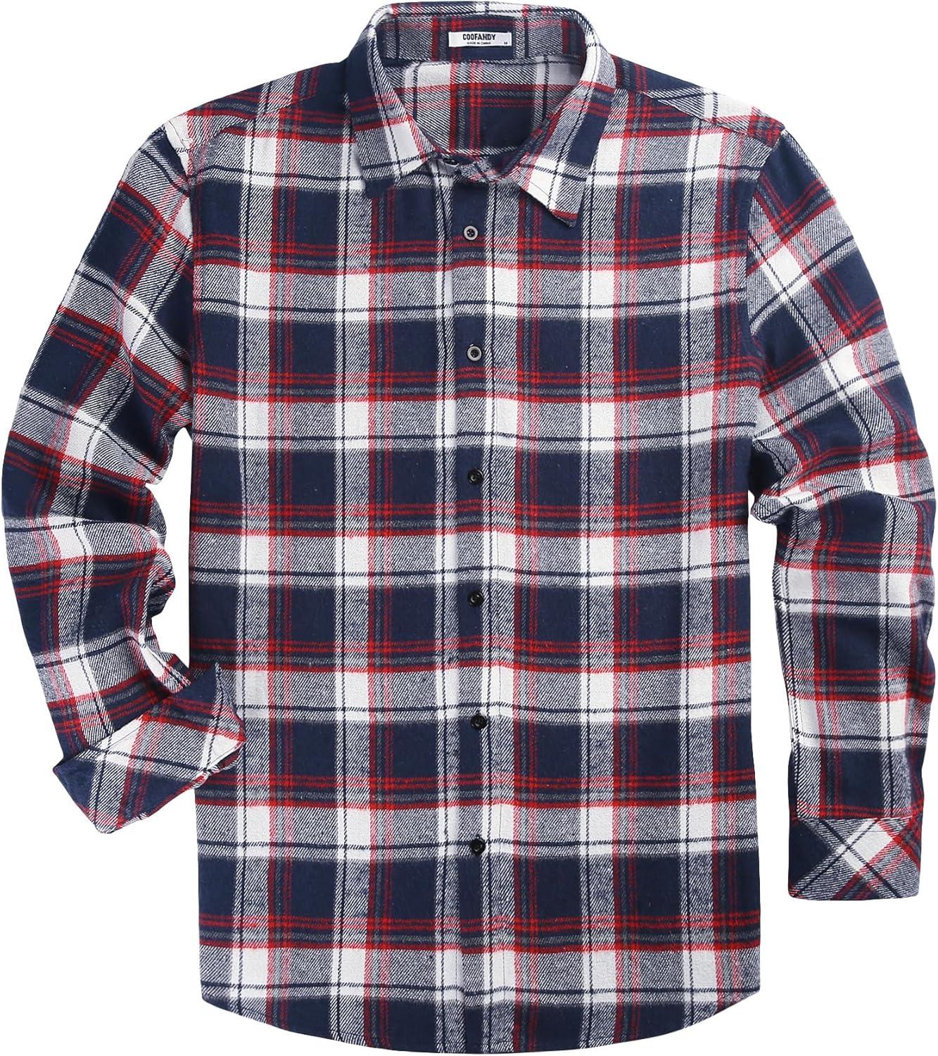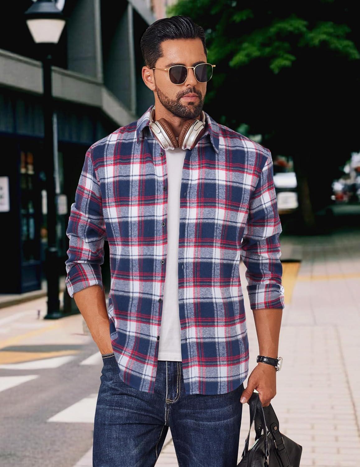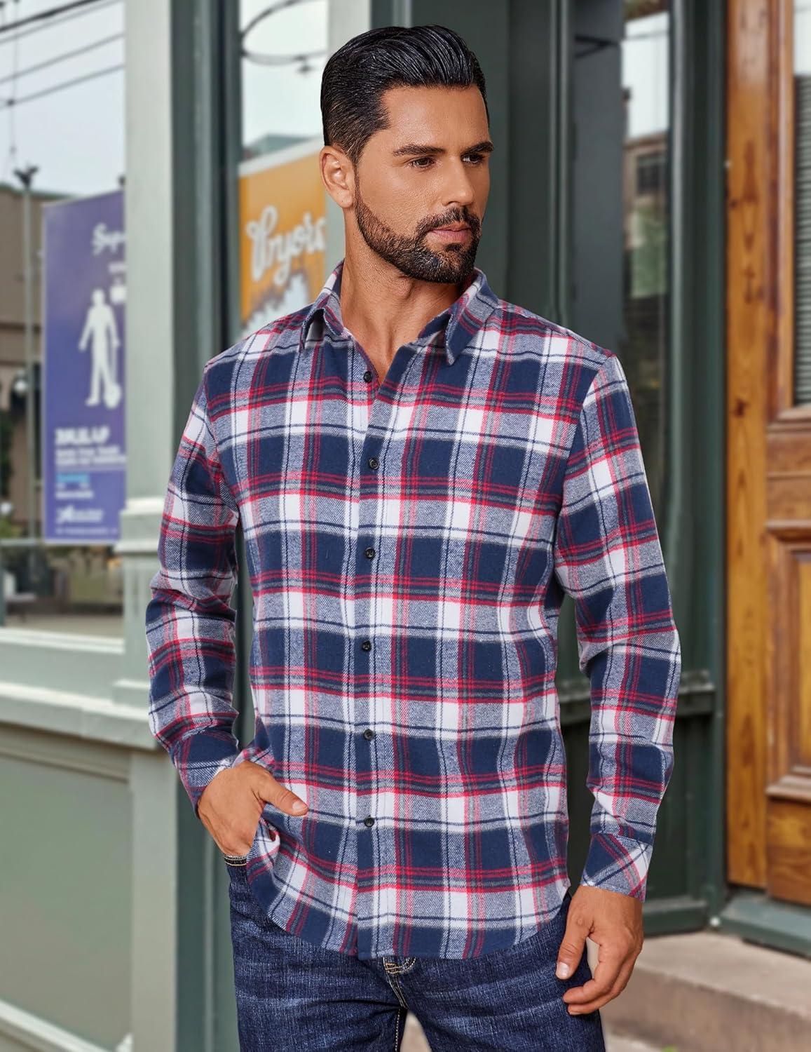 COOFANDY Mens Flannel Shirts Long Sleeve Plaid Button Down Shirts Casual Cotton Shirts(Blue/Red)