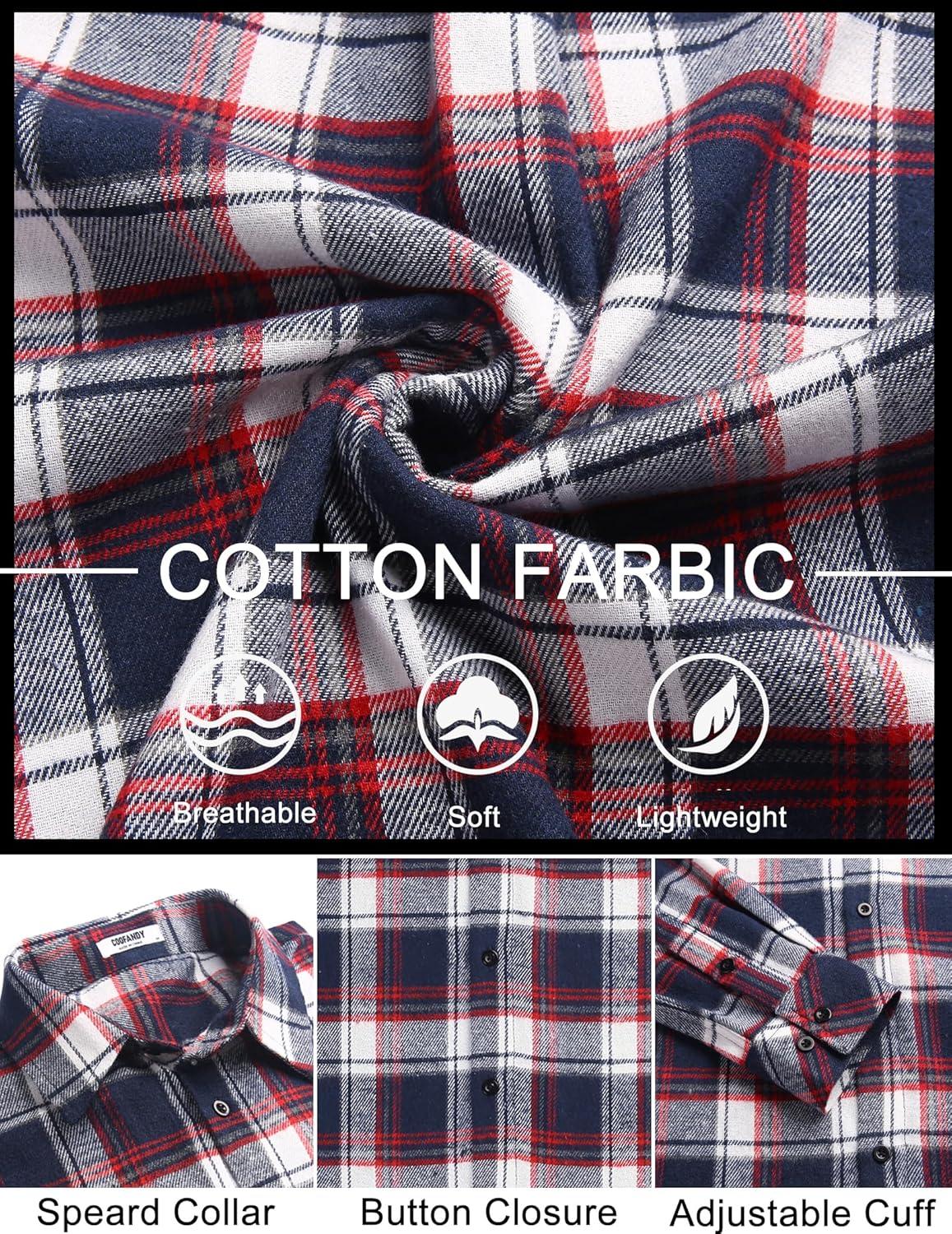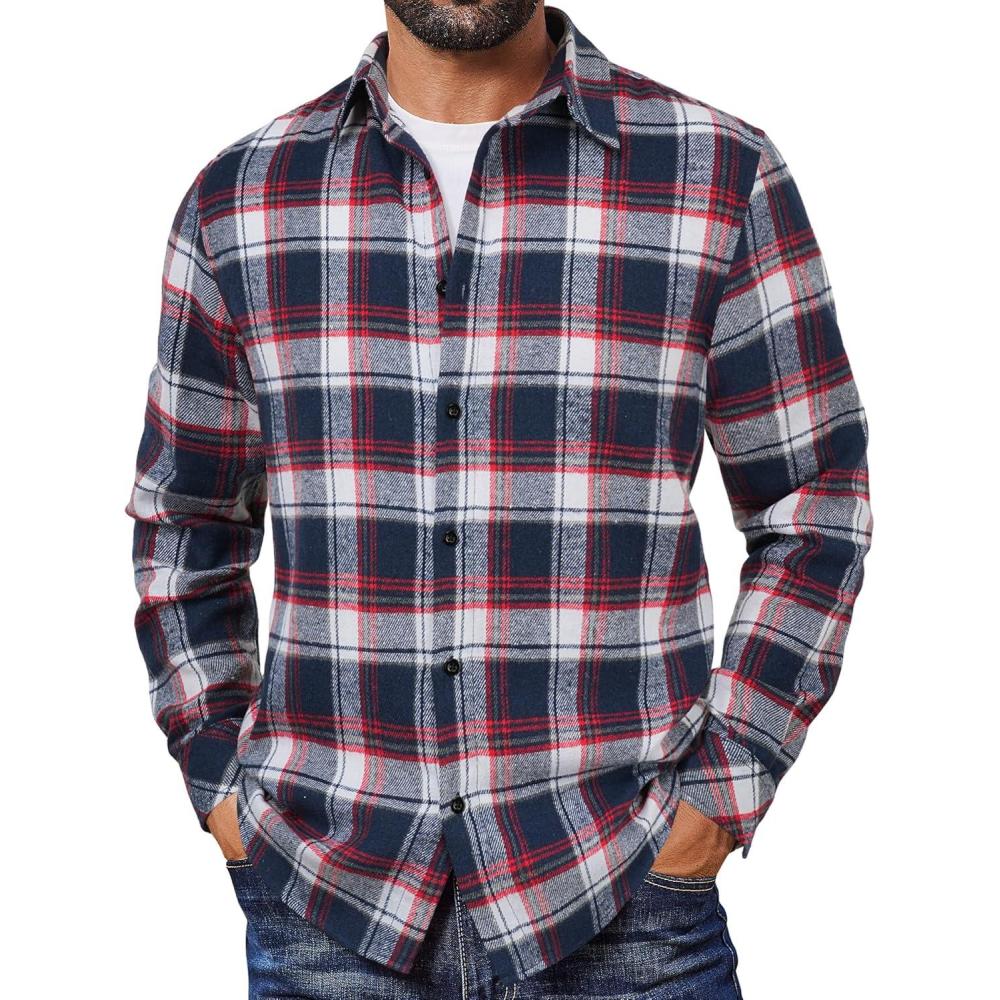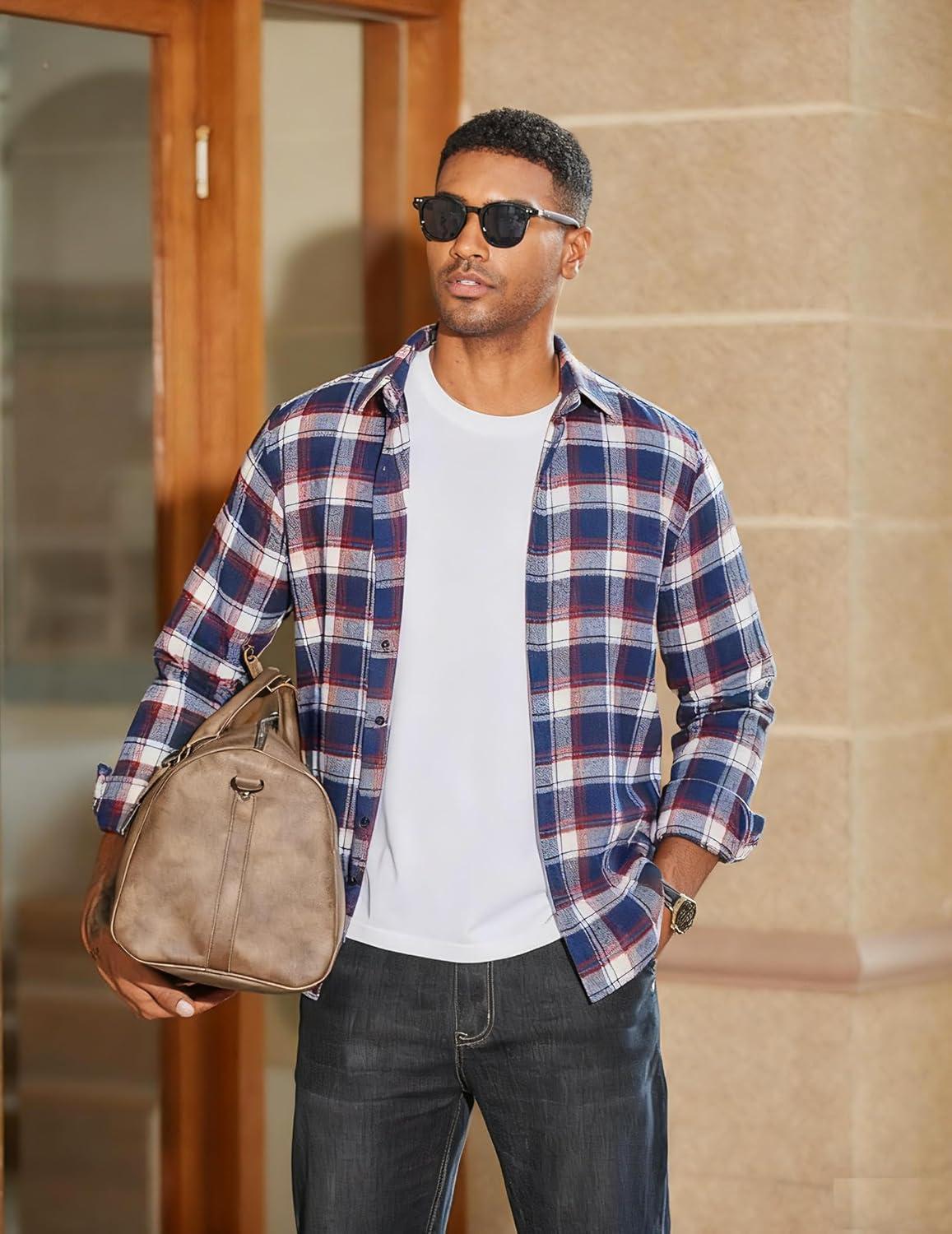 COOFANDY Mens Flannel Shirts Long Sleeve Plaid Button Down Shirts Casual Cotton Shirts(Blue/Red)