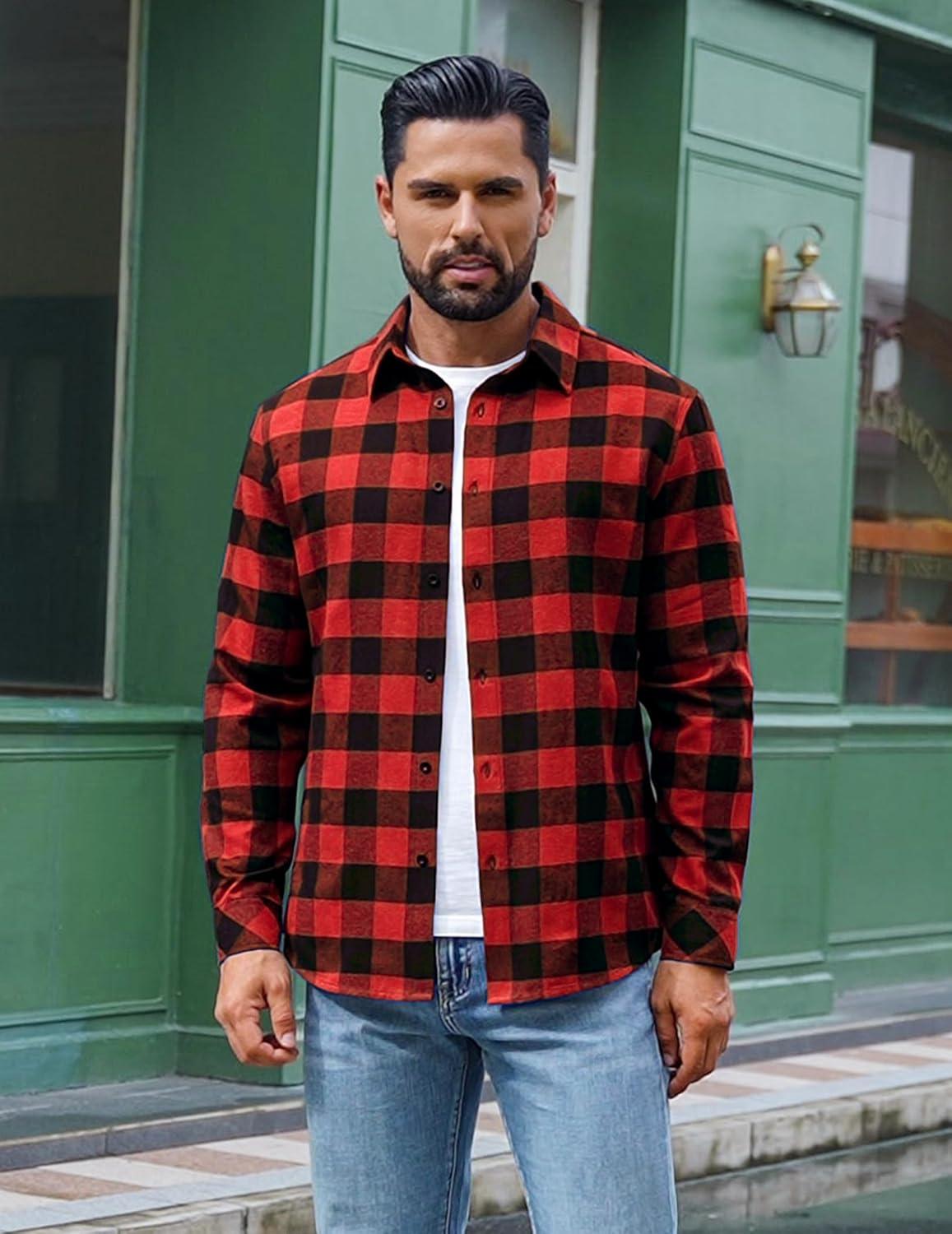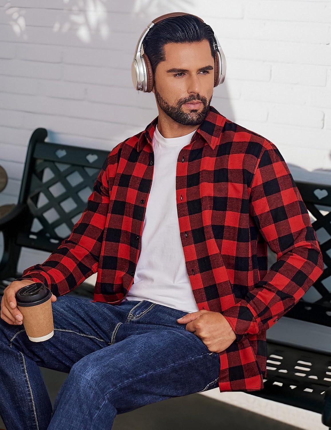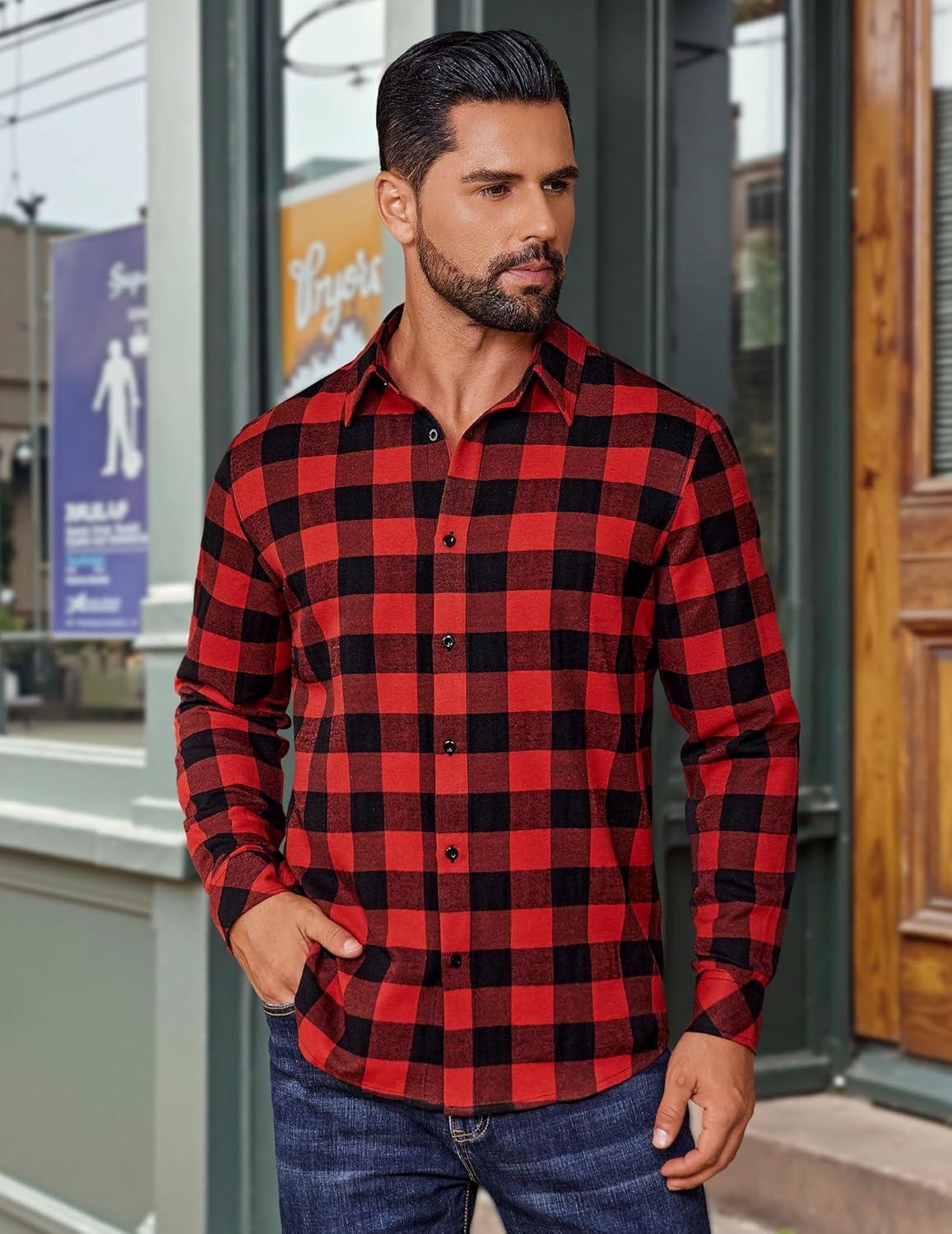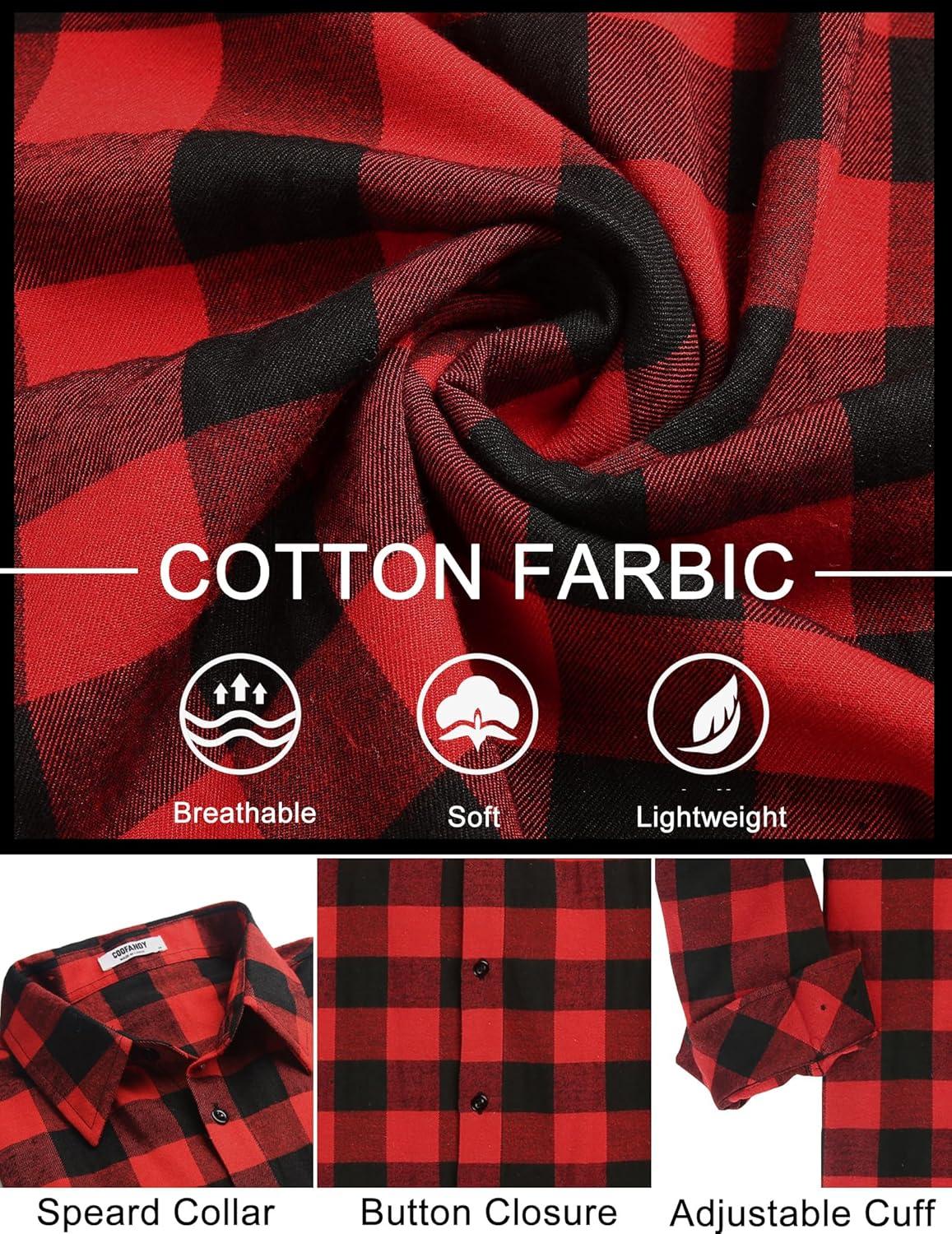 COOFANDY Mens Flannel Shirts Long Sleeve Plaid Button Down Shirts Casual Cotton Shirts(Red Checkered)