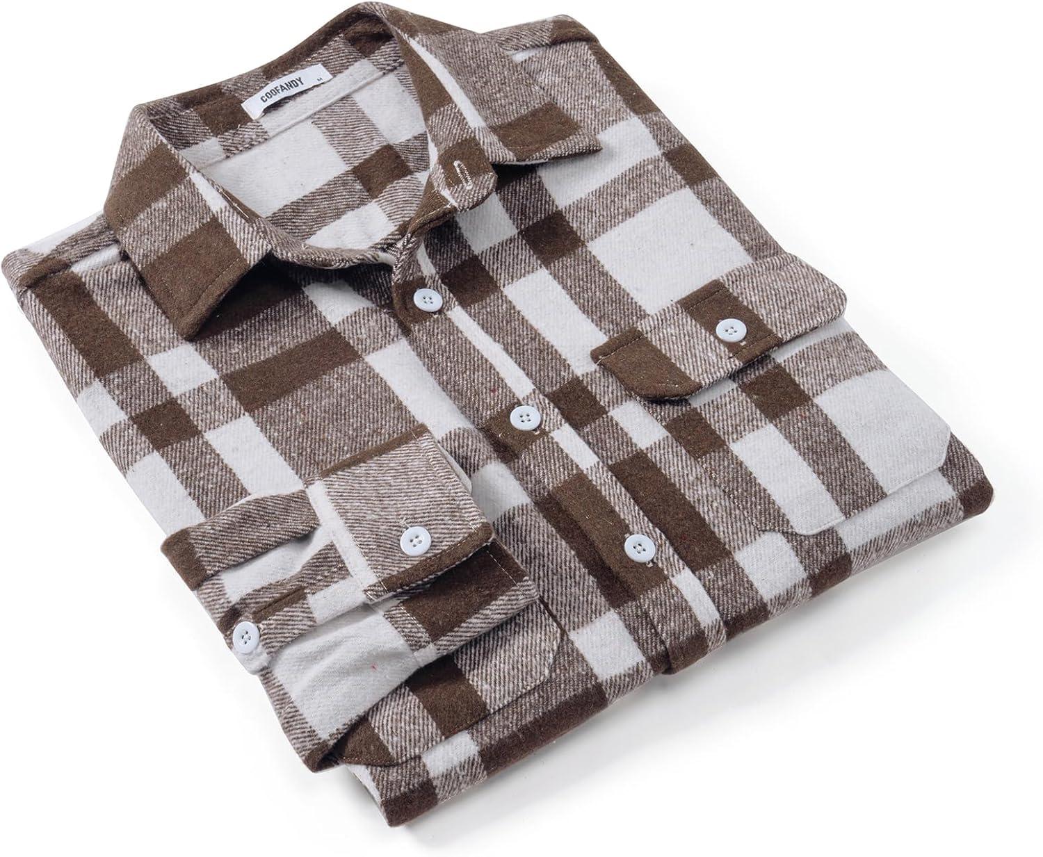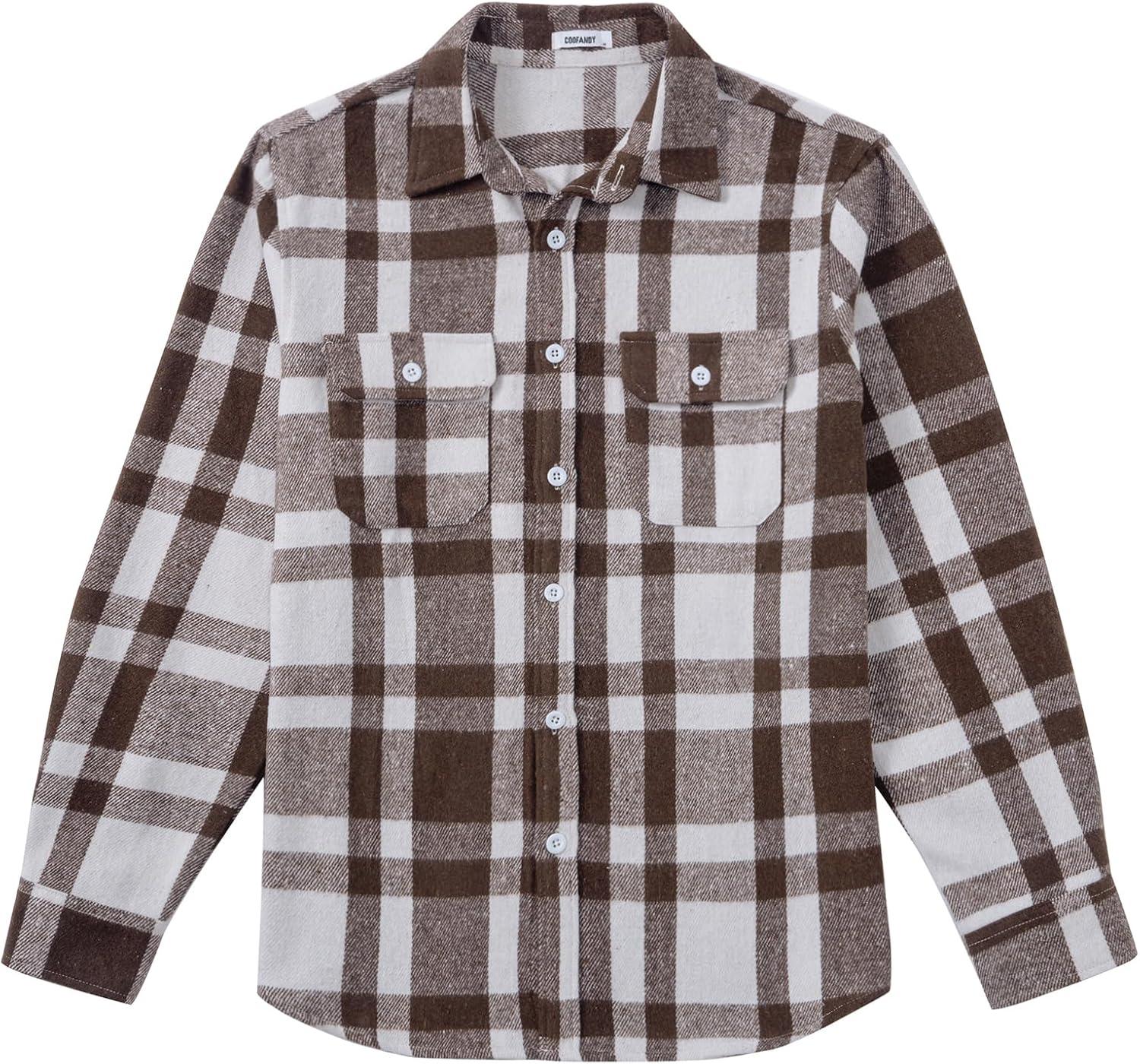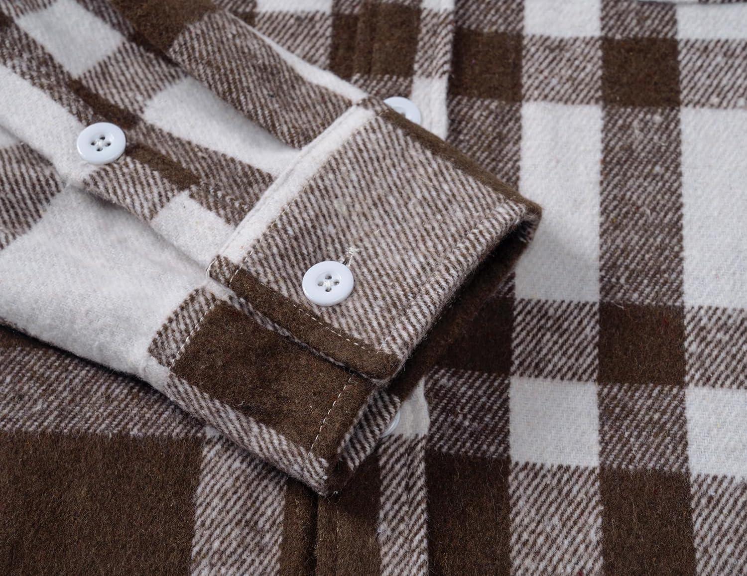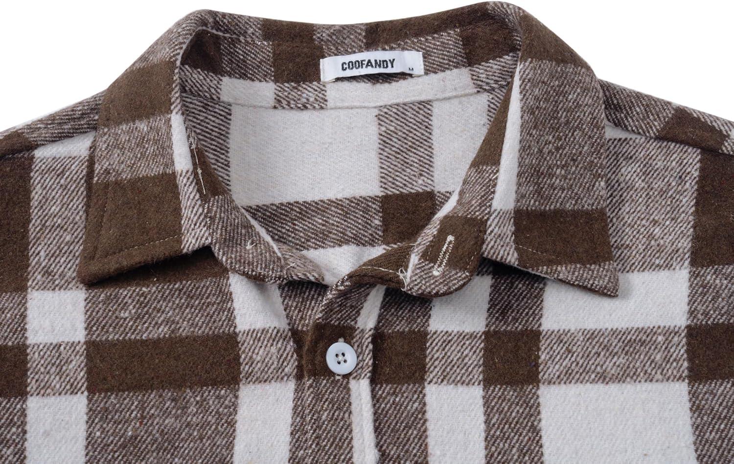 COOFANDY Mens Flannel Shirts Long Sleeve Plaid Shirt Jacket Button Down Shirt with Pockets(Brown & White)