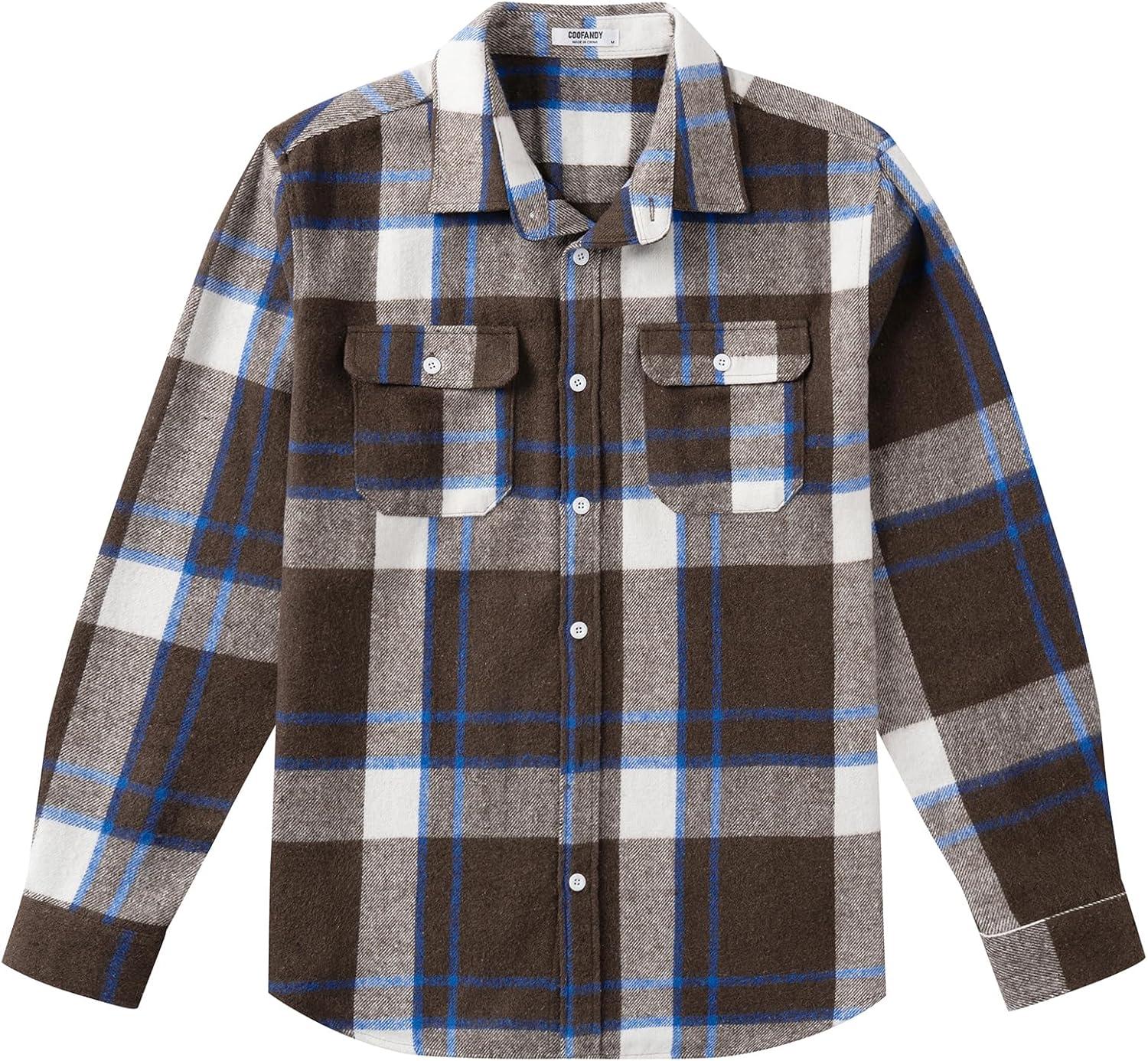 COOFANDY Mens Flannel Shirts Long Sleeve Plaid Shirt Jacket Button Down Shirt with Pockets(Brown)