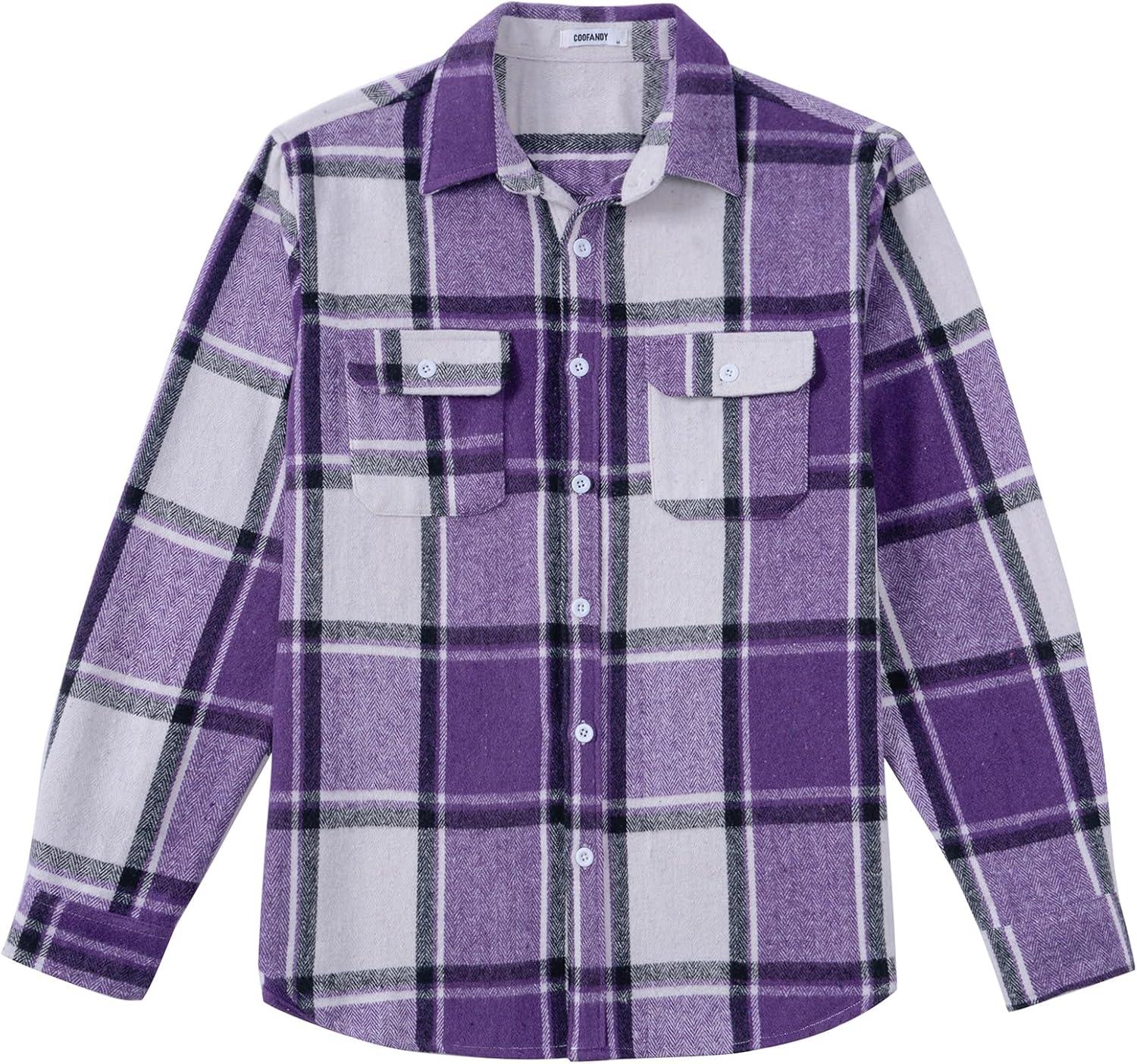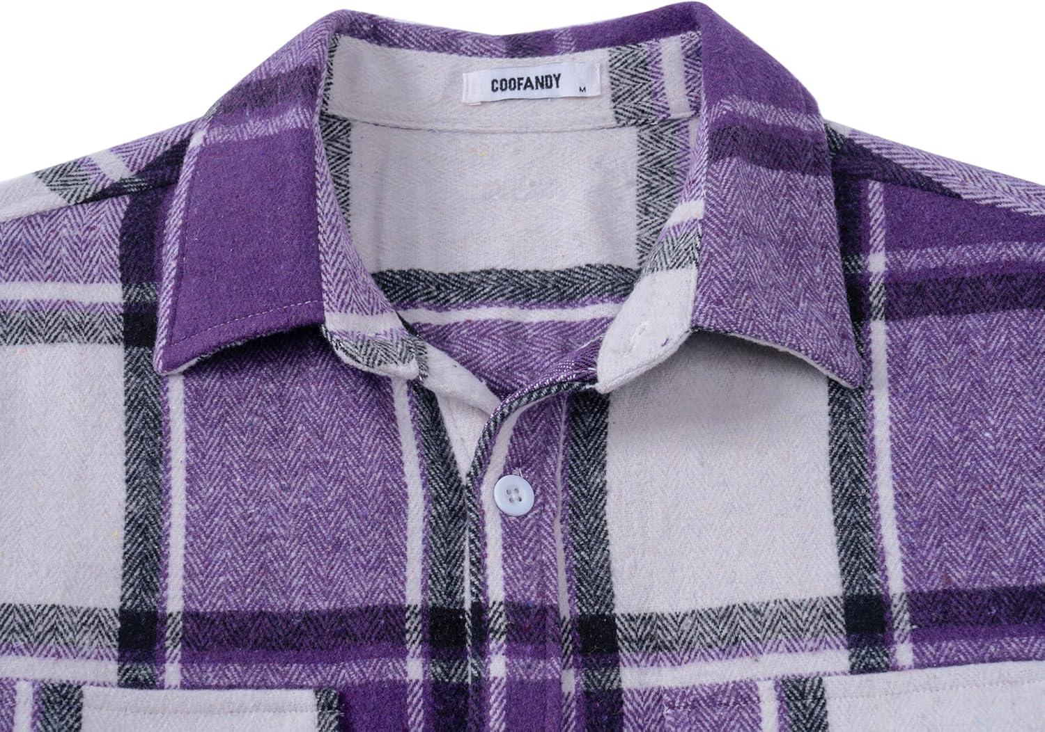 COOFANDY Mens Flannel Shirts Long Sleeve Plaid Shirt Jacket Button Down Shirt with Pockets(Purple)