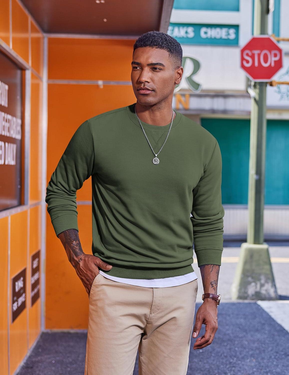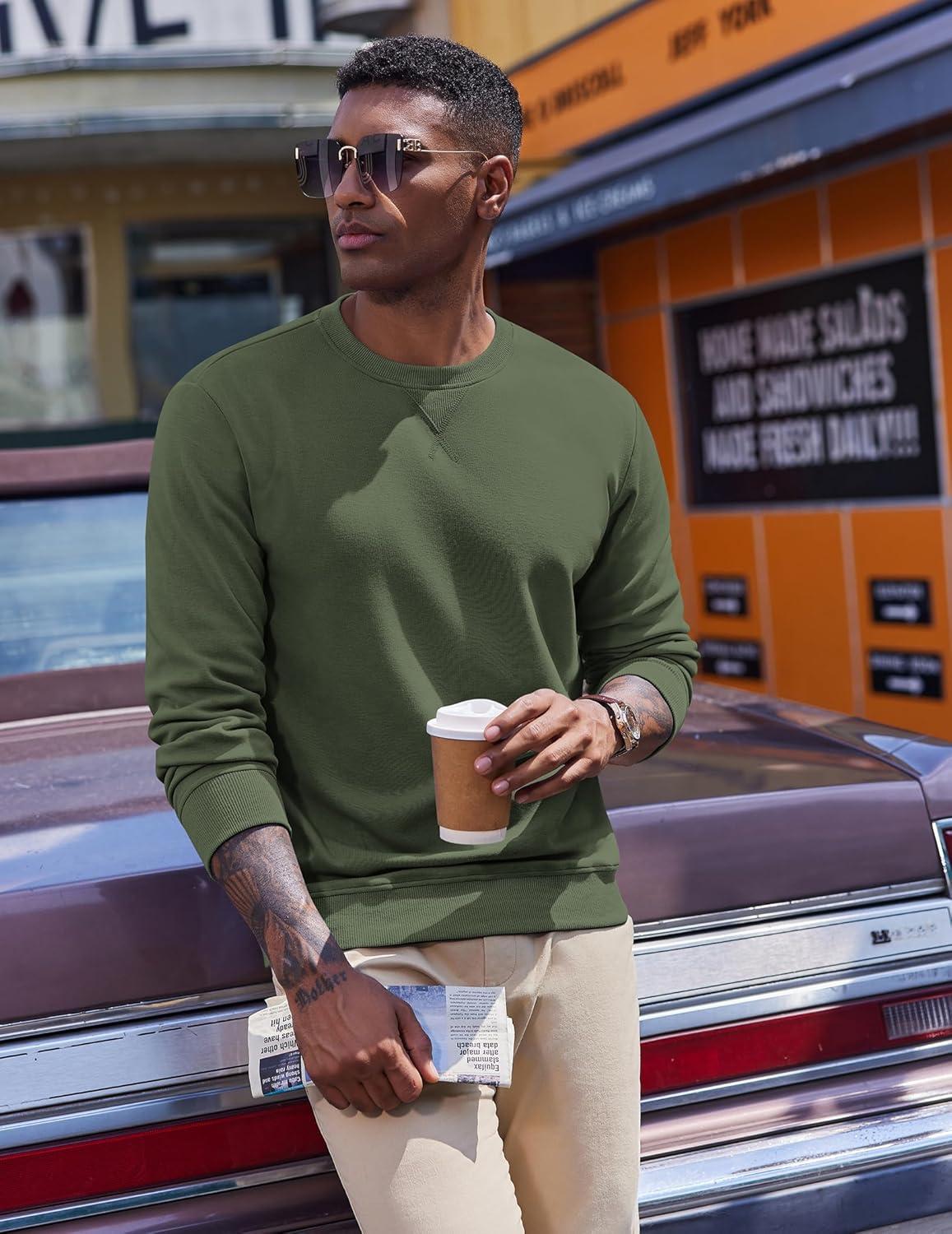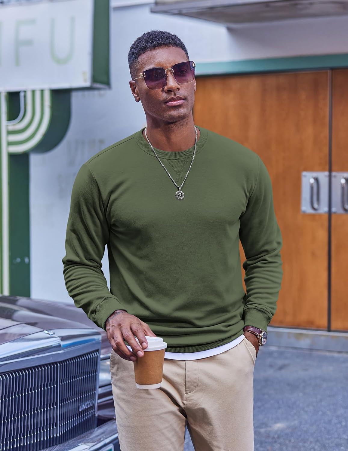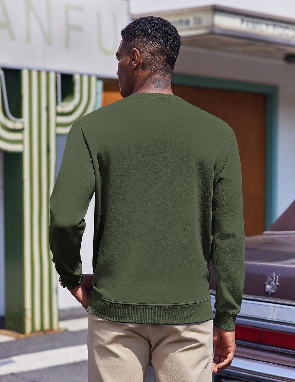 COOFANDY Men’s Fleece Crewneck Sweatshirt Casual Long Sleeve Pullover Fall Winter Warm Sweatshirts Fashion Pullovers(Army Green)