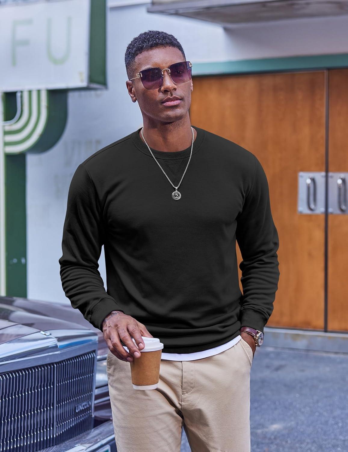 COOFANDY Men’s Fleece Crewneck Sweatshirt Casual Long Sleeve Pullover Fall Winter Warm Sweatshirts Fashion Pullovers(Black)