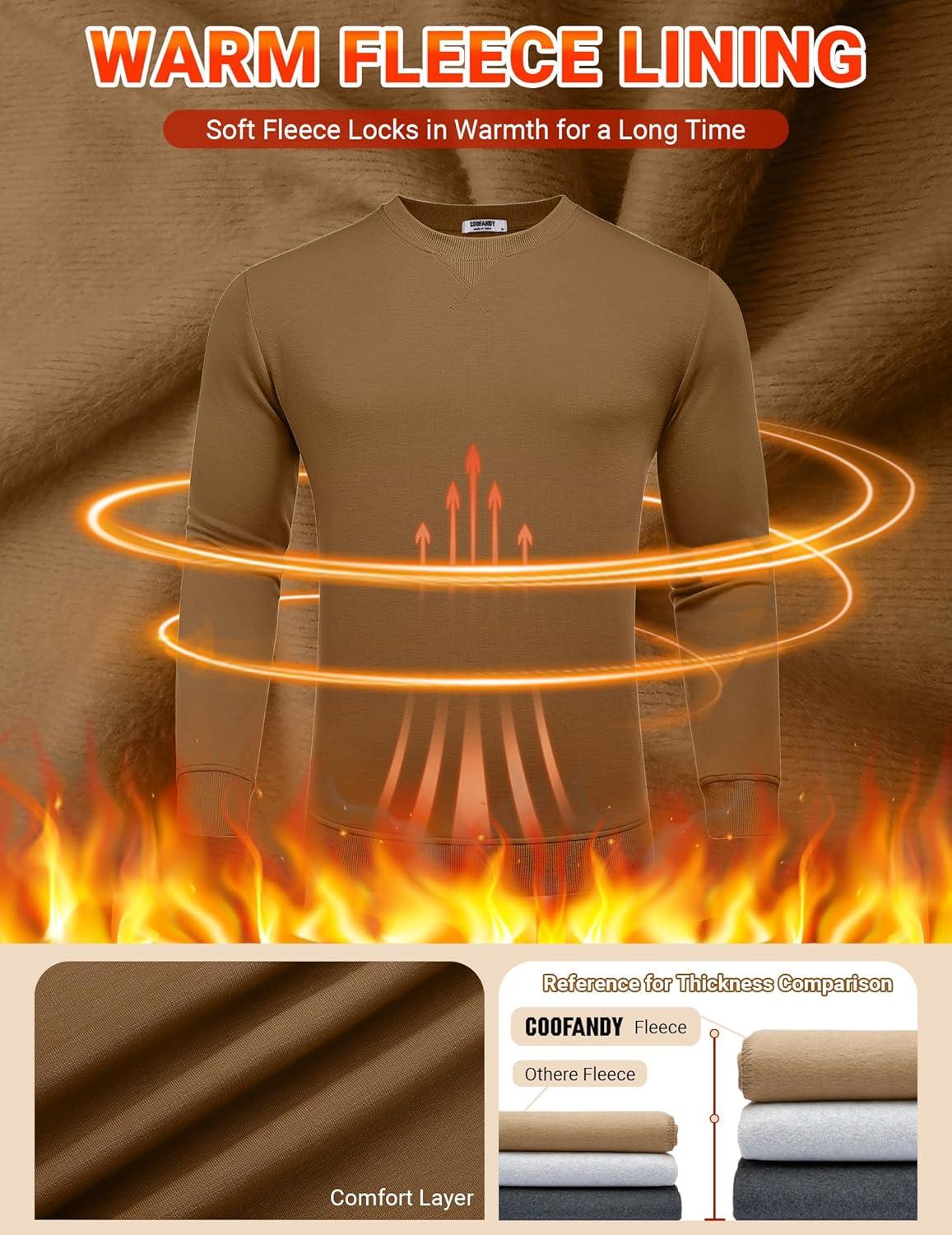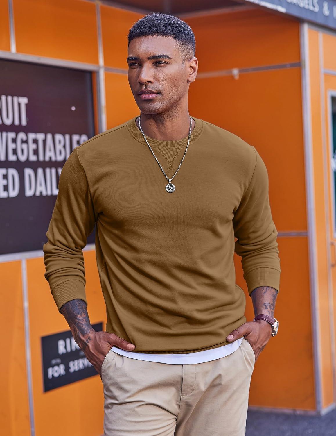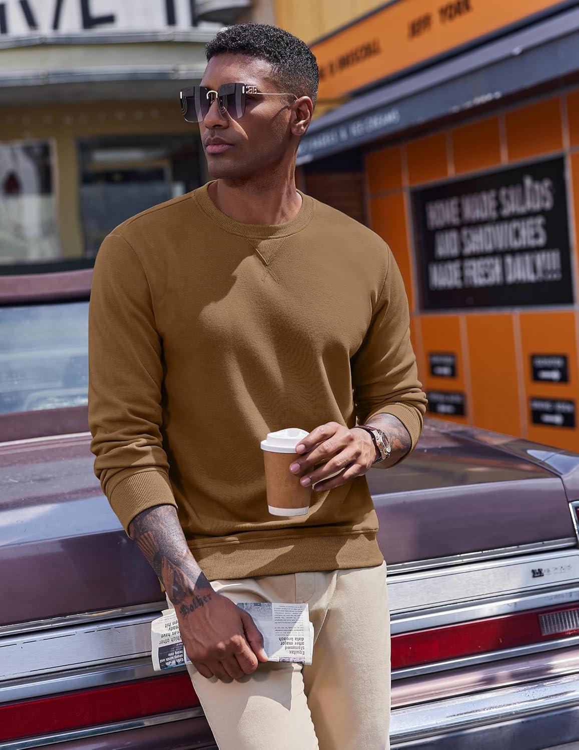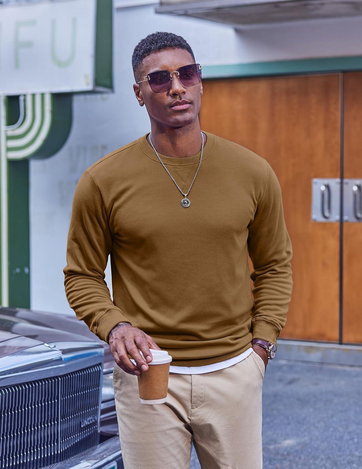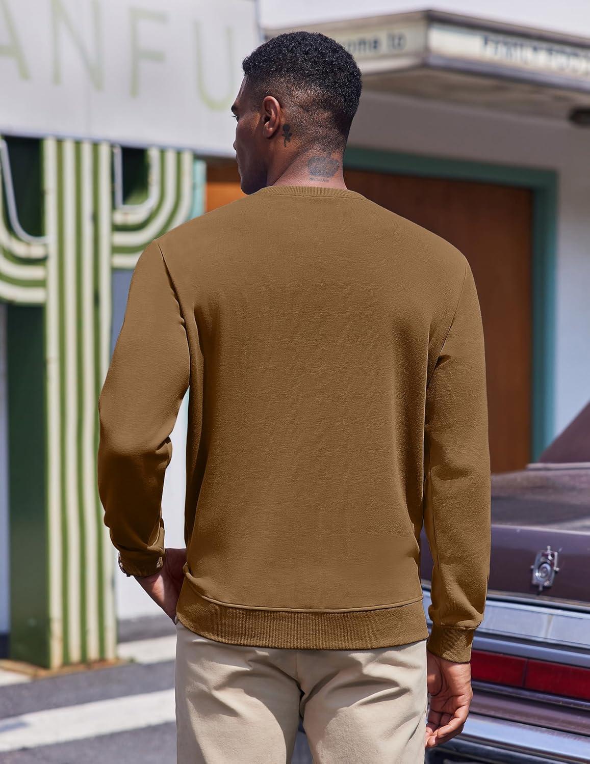 COOFANDY Men’s Fleece Crewneck Sweatshirt Casual Long Sleeve Pullover Fall Winter Warm Sweatshirts Fashion Pullovers(Light Brown)